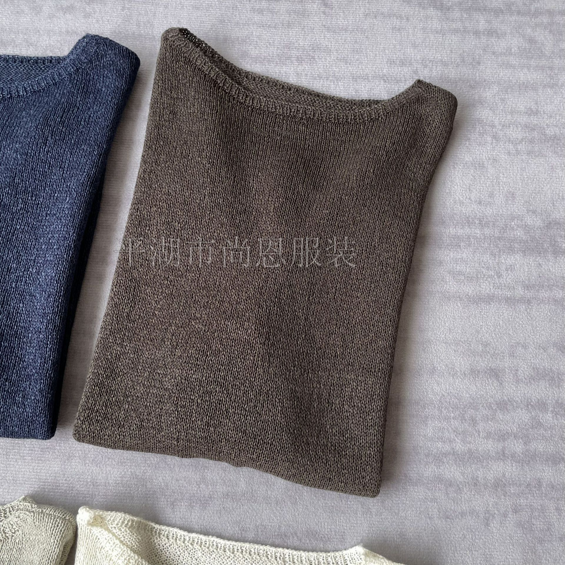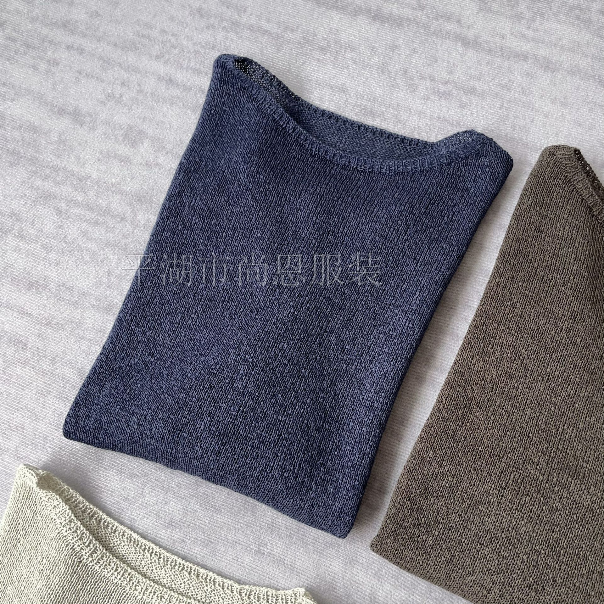 일본 Jinkou와 종이 원사를 호흡하는 직물! 여성용 가볍고 편안한 느슨한 긴팔 스웨터