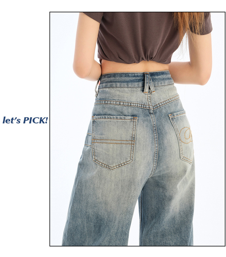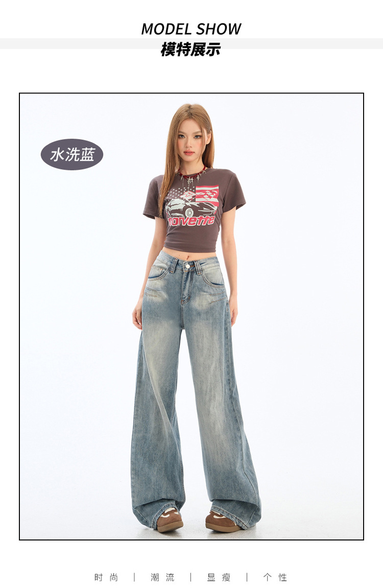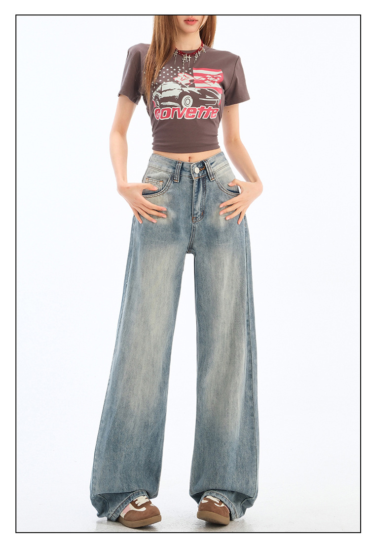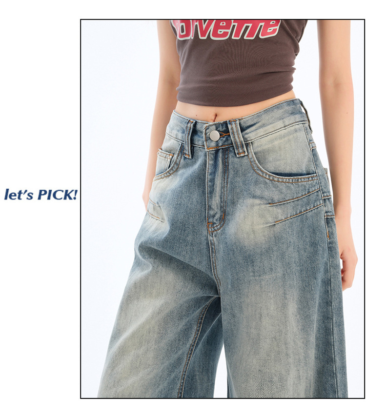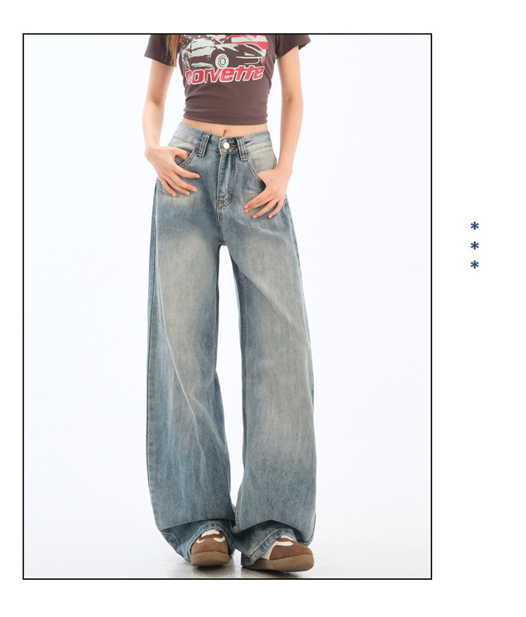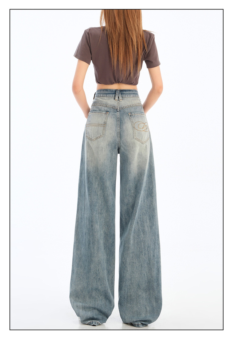 미국 패션 워시 블루 마이크로 데님 여성의 2025 여름 새로운 높은 허리 느슨한 스트레이트 튜브 도핑 바지스토어 가기