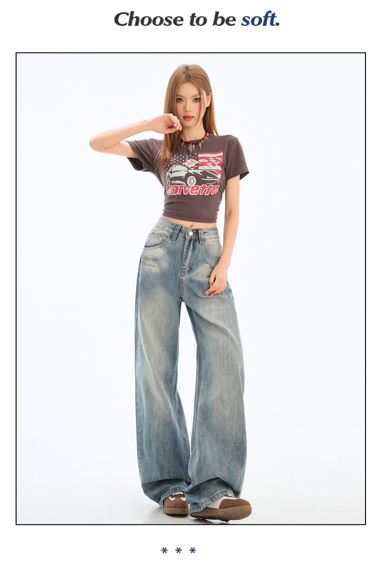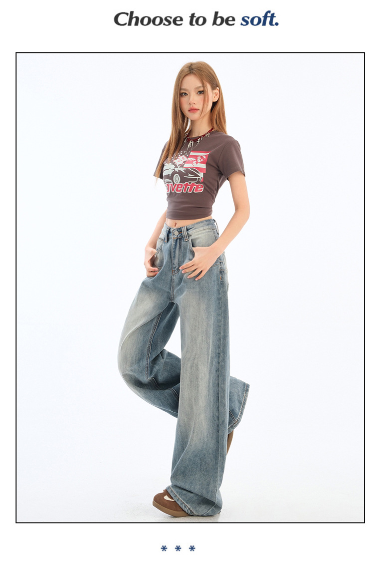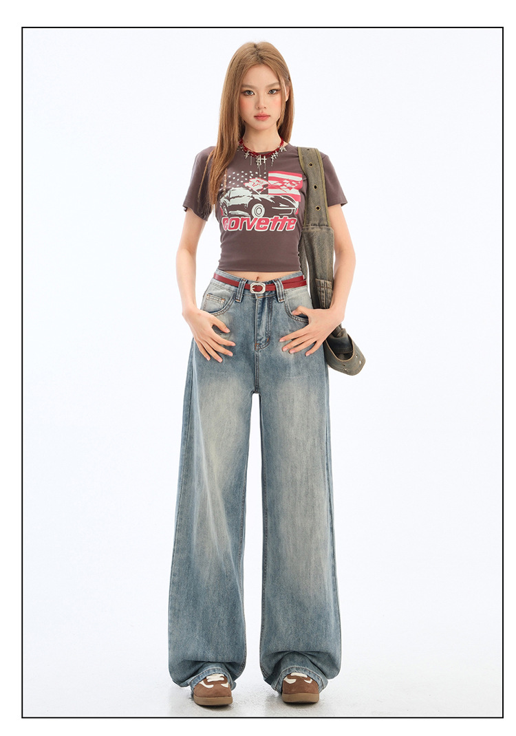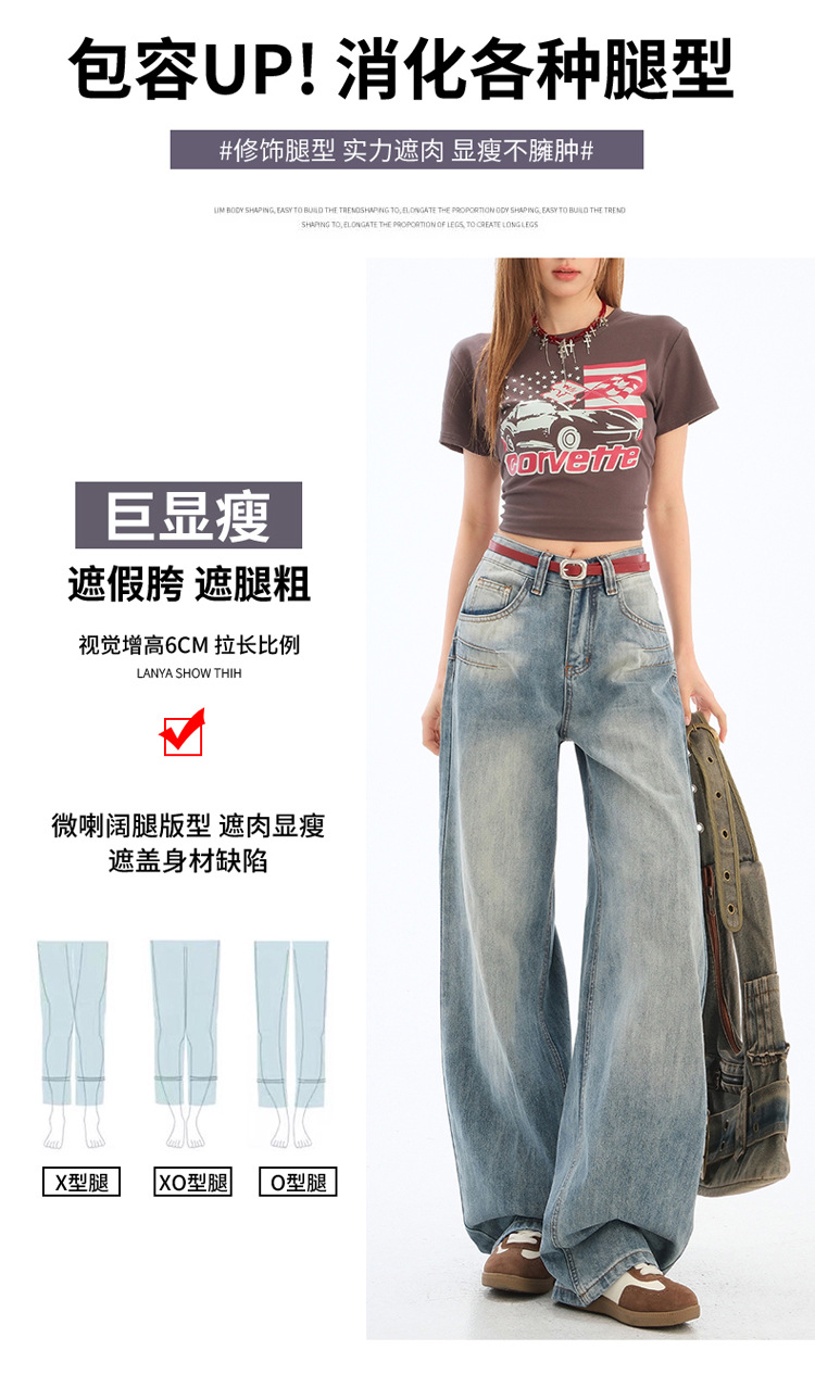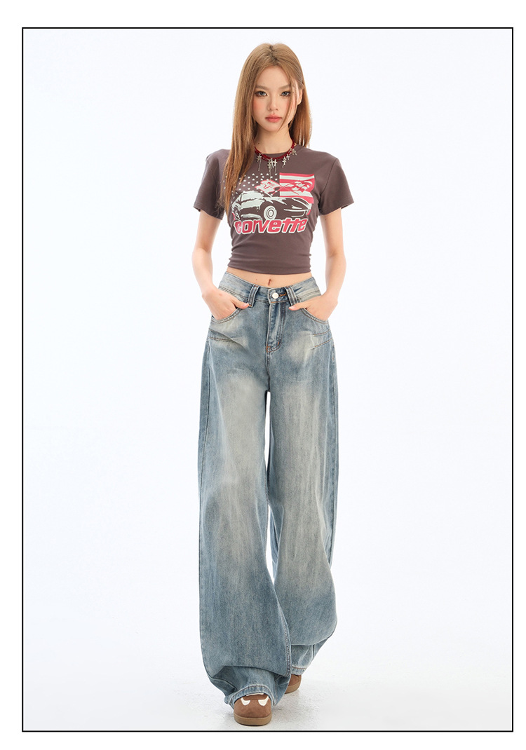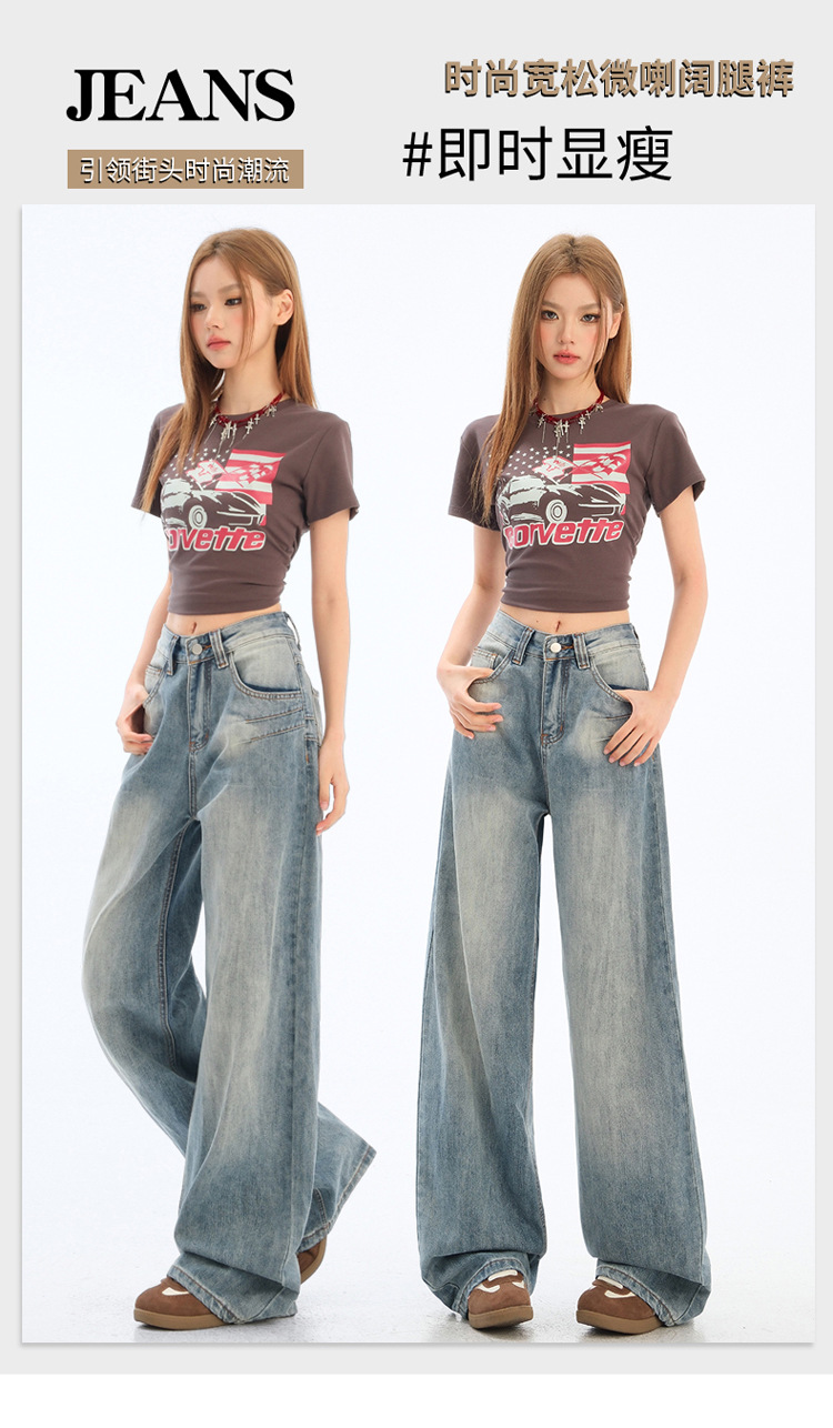 미국 패션 워시 블루 마이크로 데님 여성의 2025 여름 새로운 높은 허리 느슨한 스트레이트 튜브 도핑 바지스토어 가기