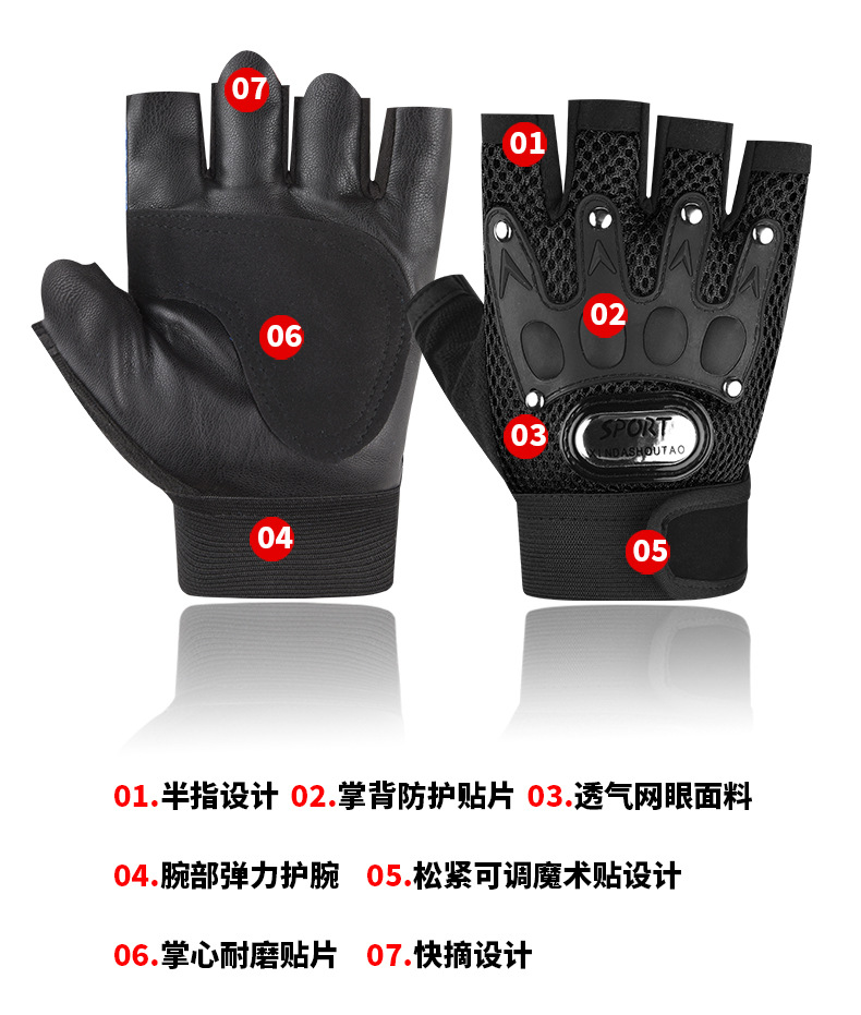 남성용 반 손가락 장갑, 얇고 통기성이 뛰어나며 손바닥이 두껍고 미끄럼 방지 보호 자전거 피트니스 사이클링 오토바이 장갑