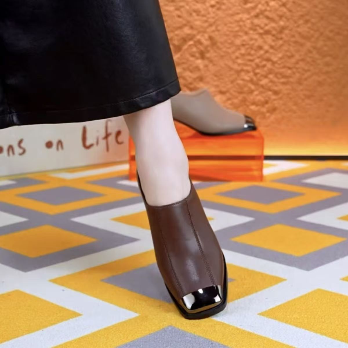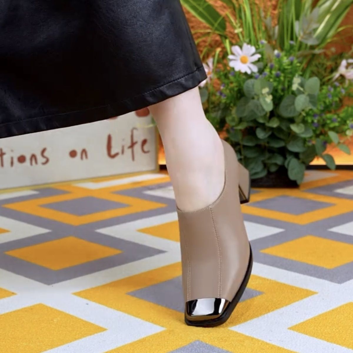 스퀘어 헤드 청키 힐 싱글 신발 여성 2025 봄 가을 새로운 핫 스타일 여성 올매치 하이힐 소프트 가죽 딥 입 가죽 신발스토어 가기