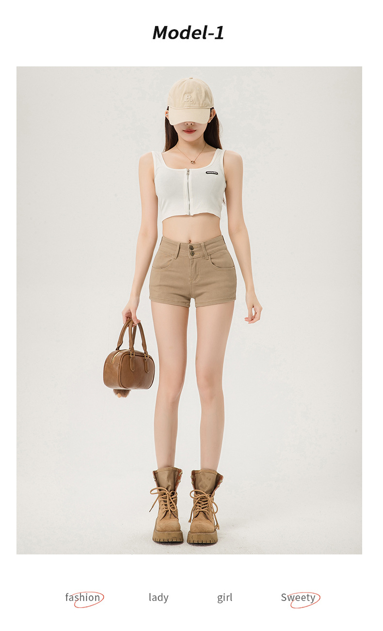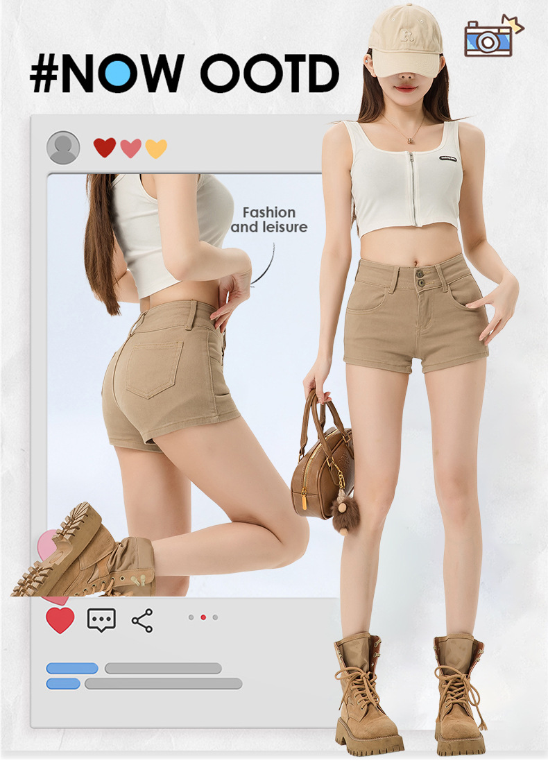 카키색 아메리칸 스타일 데님 반바지 여성 여름 신상 하이웨이스트 더블 버튼 슬림핏 신축성 있는 외출용 힙업 핫팬츠스토어 가기