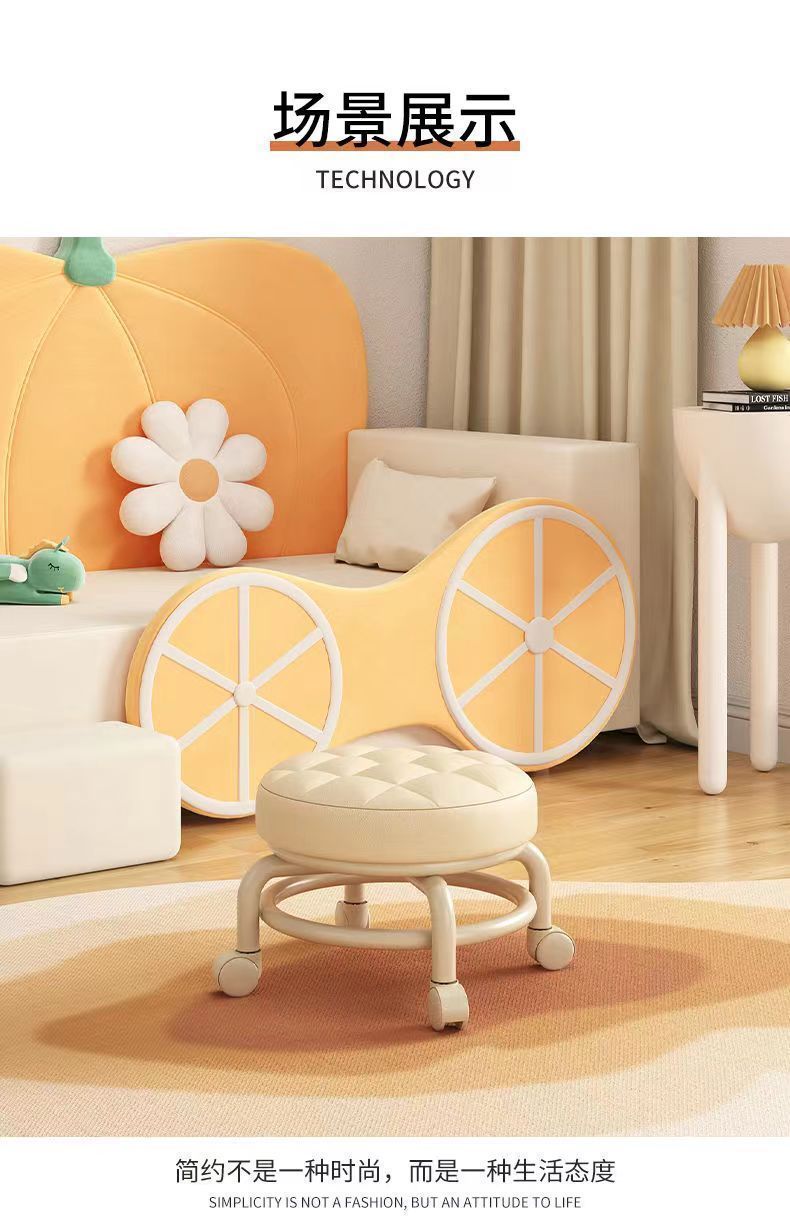 유니버설 휠 작은 의자 조용한 모바일 등받이 가구 슬라이딩 의자 거실 커피 테이블 낮은 의자 아기의 학습 의자 가죽 의자