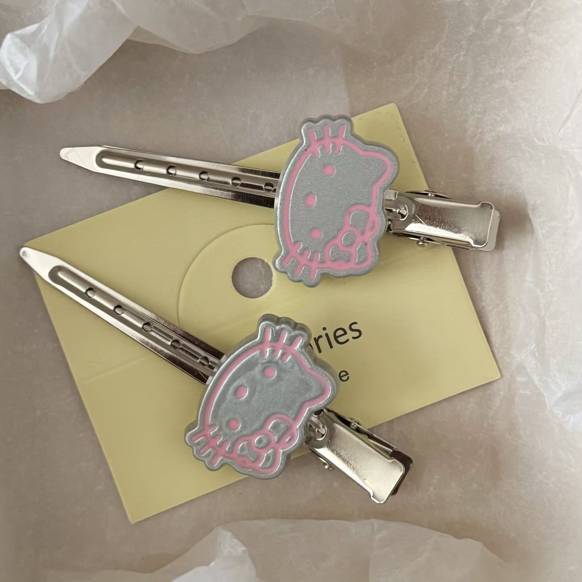 달콤한 멋진 스타일 실버 고양이 긴 머리핀 일본 간단한 고감 소녀 앞머리 머리핀 헤어 액세서리 도매 클립