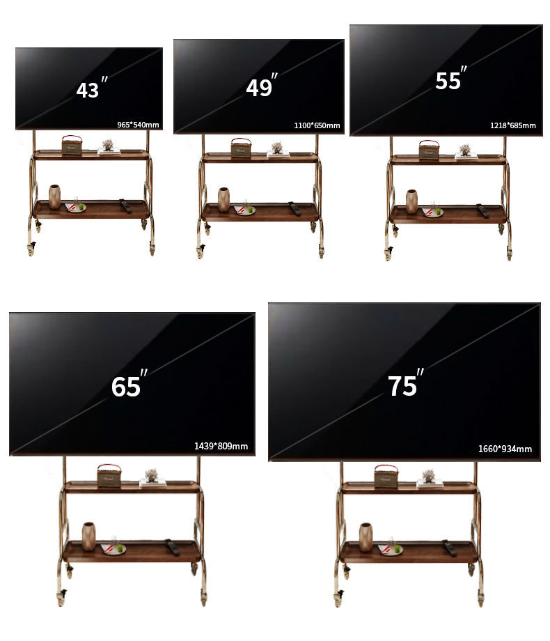 모바일 TV 스탠드 바닥 스탠딩 아트 스탠드 수직 현대식 바퀴 달린 카트 범용 TV 펀치 프리 행거스토어 가기