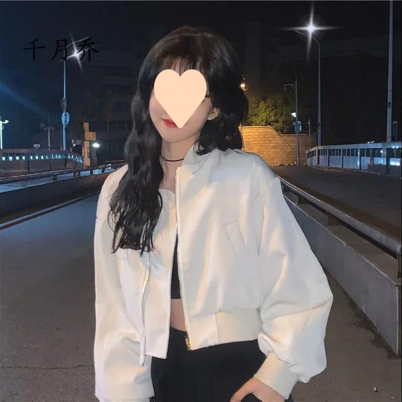 봄탑, 쁘띠숏자켓, 여성용 야구자켓, 한국식 루즈하고 활용도 높은 스트리트 캐주얼 솔리드 컬러 자켓