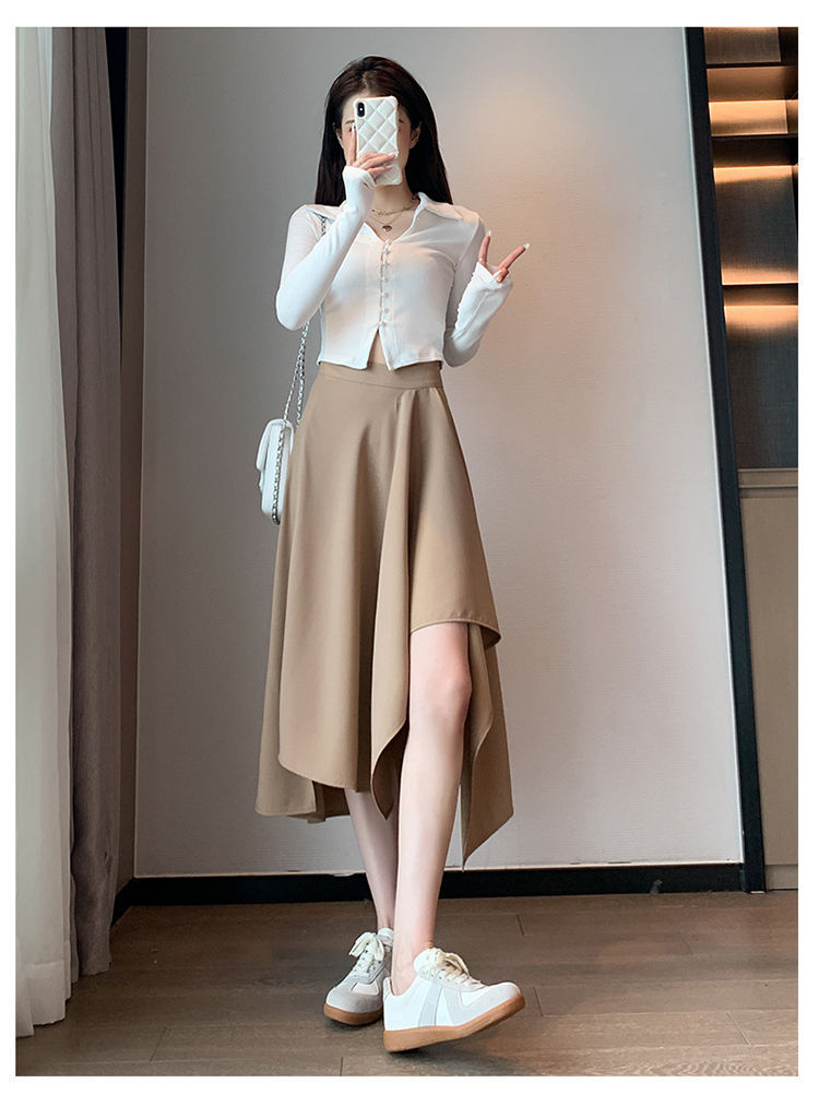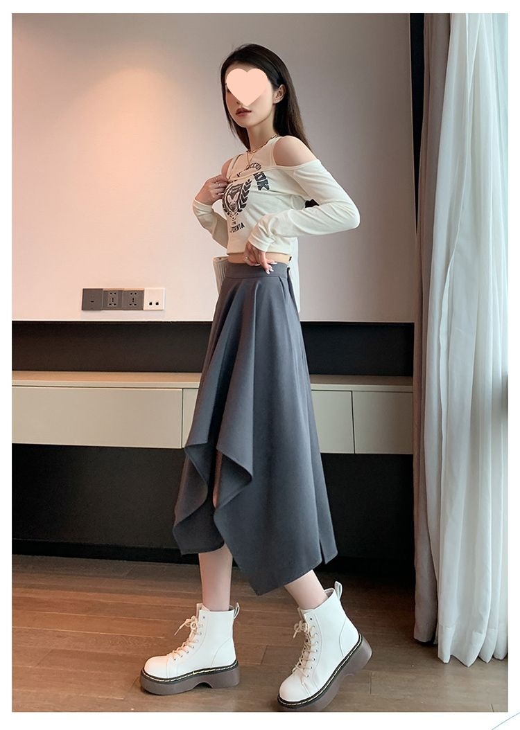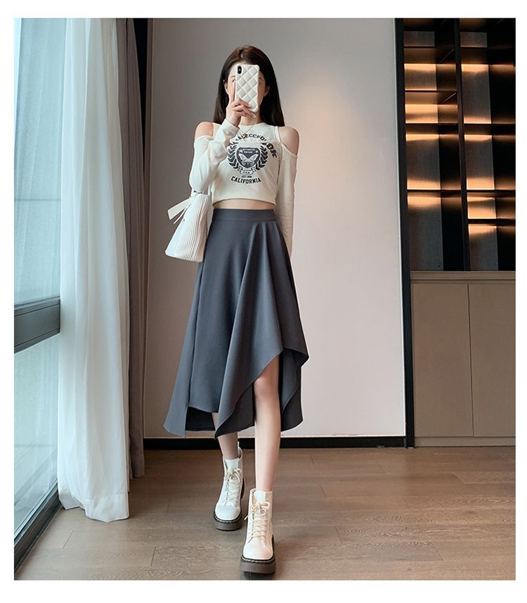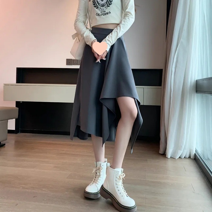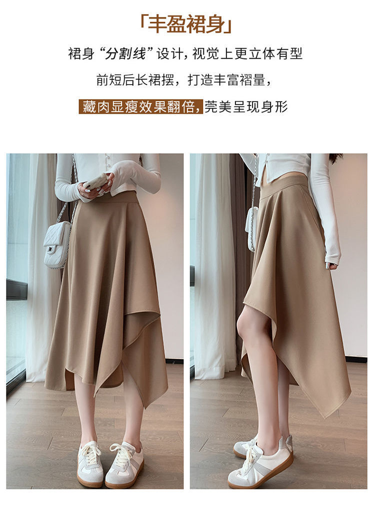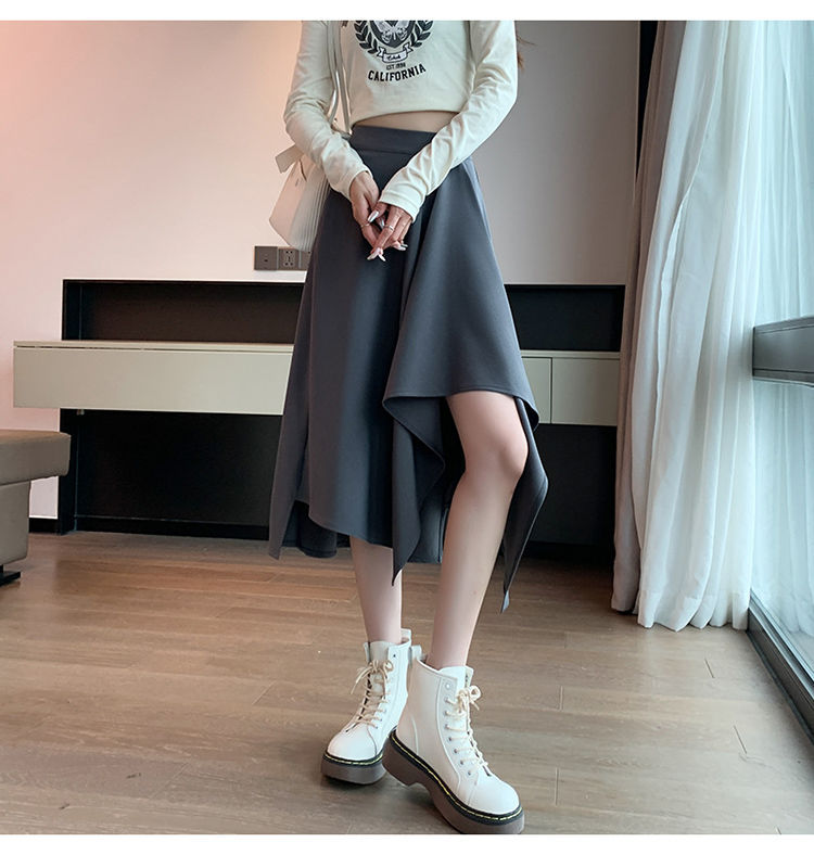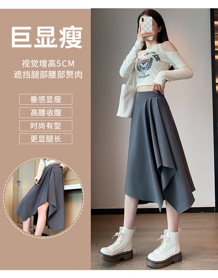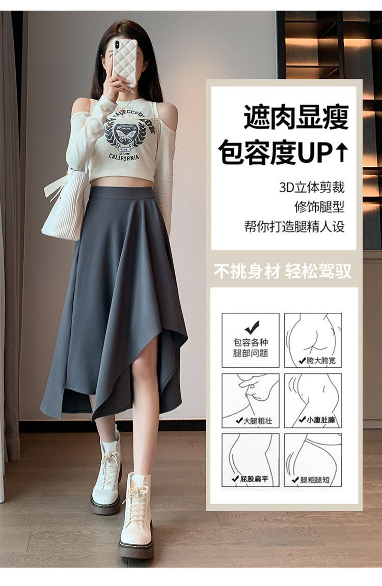 봄여름 불규칙 스커트, 빅사이즈 배와 다리 커버, 여름 하이웨이스트 블랙 미디 스커트, 뚱녀 핫걸 슬리밍 에이라인 스커트스토어 가기