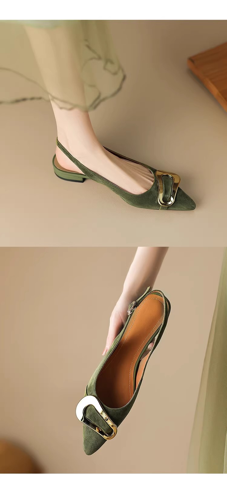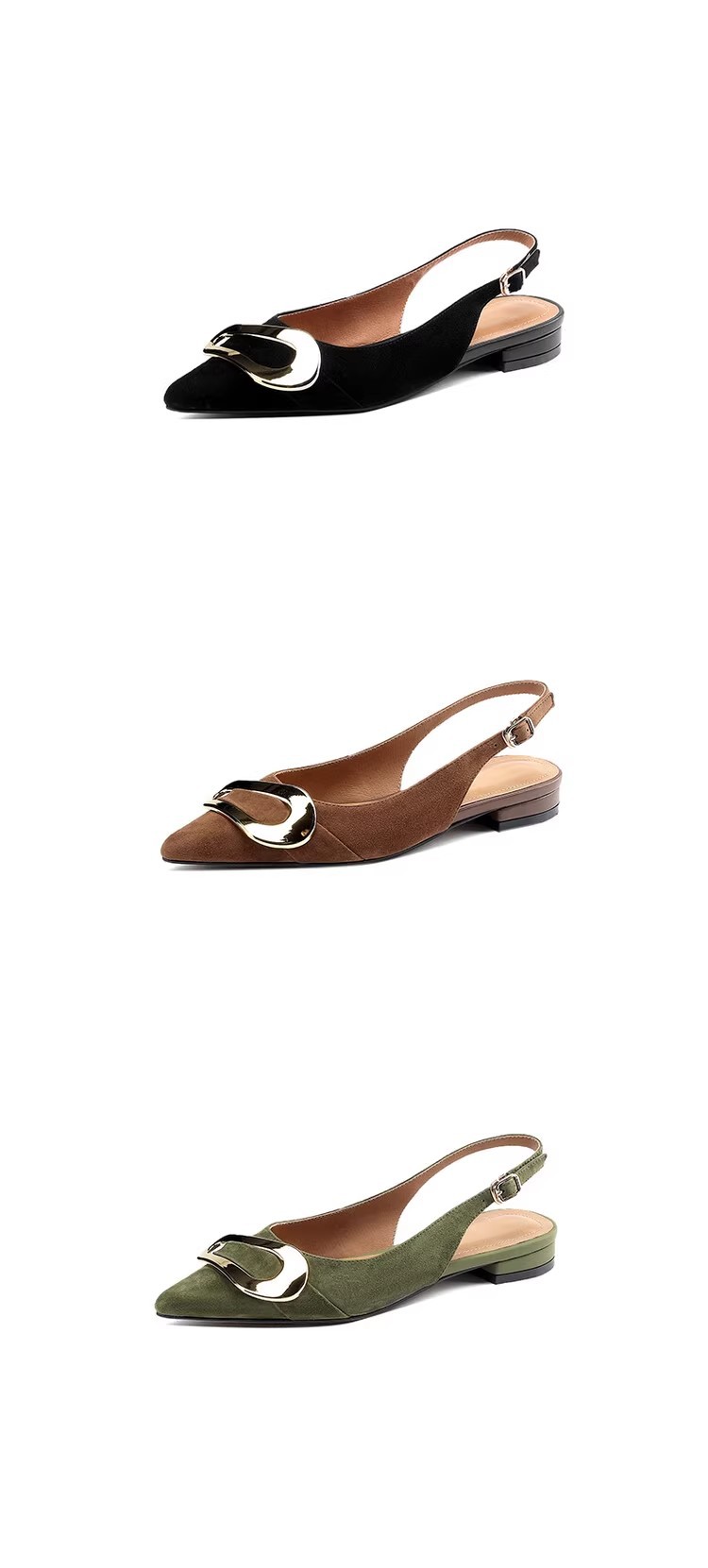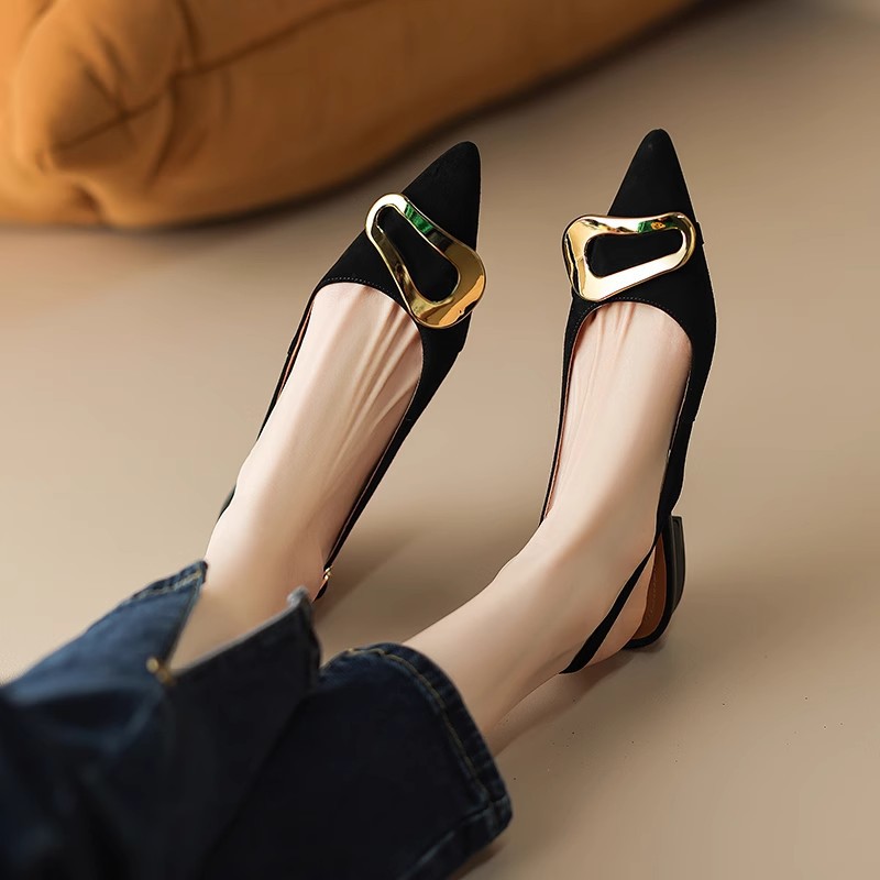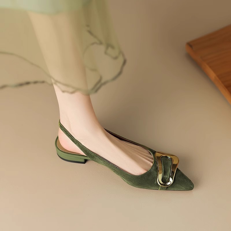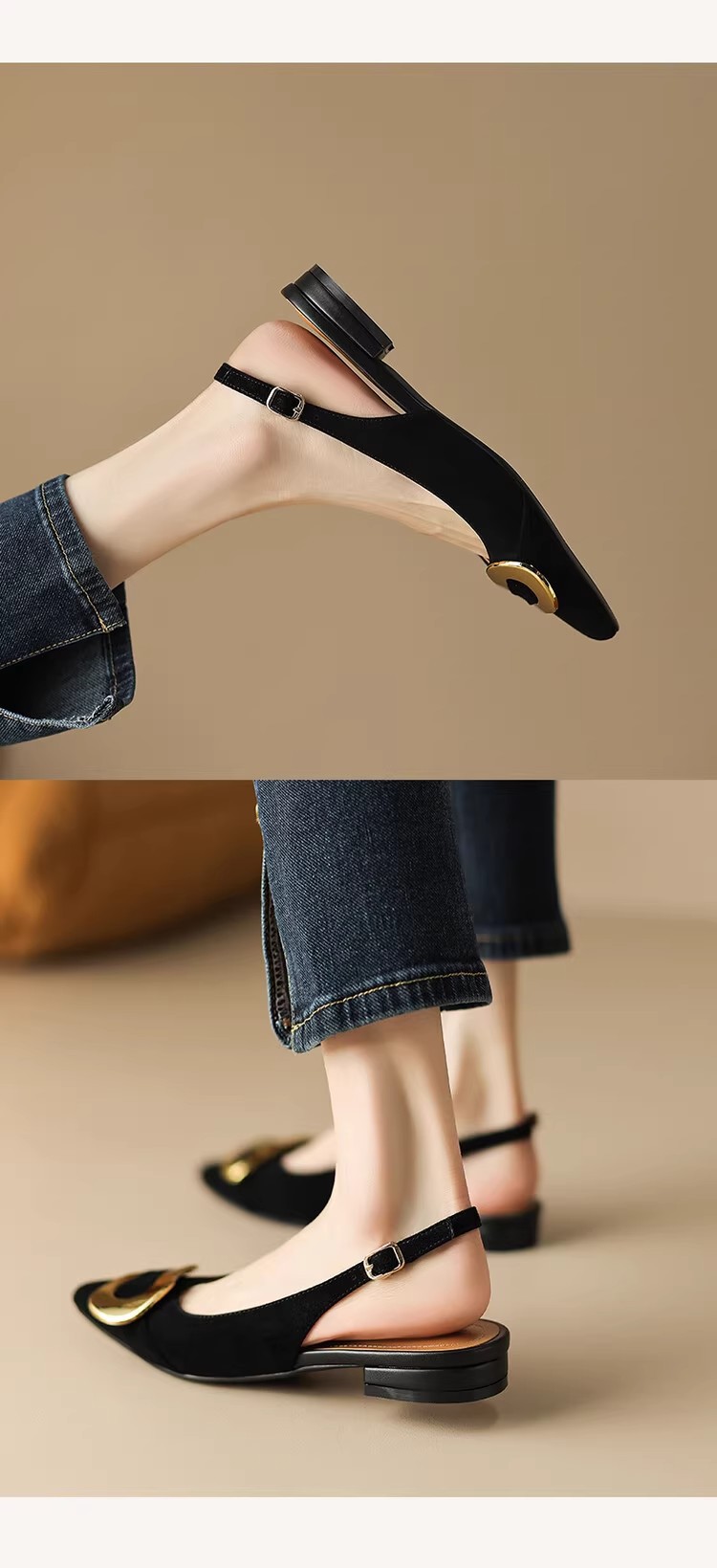 여성을위한 프랑스 복고풍 금속 버클 플랫 슈즈 2025 봄, 여름 Baotou 샌들 뾰족한 발가락 기질 펌프스