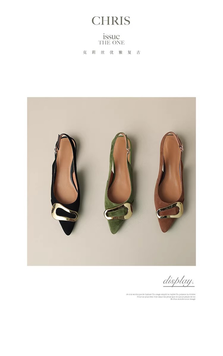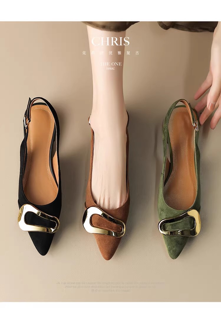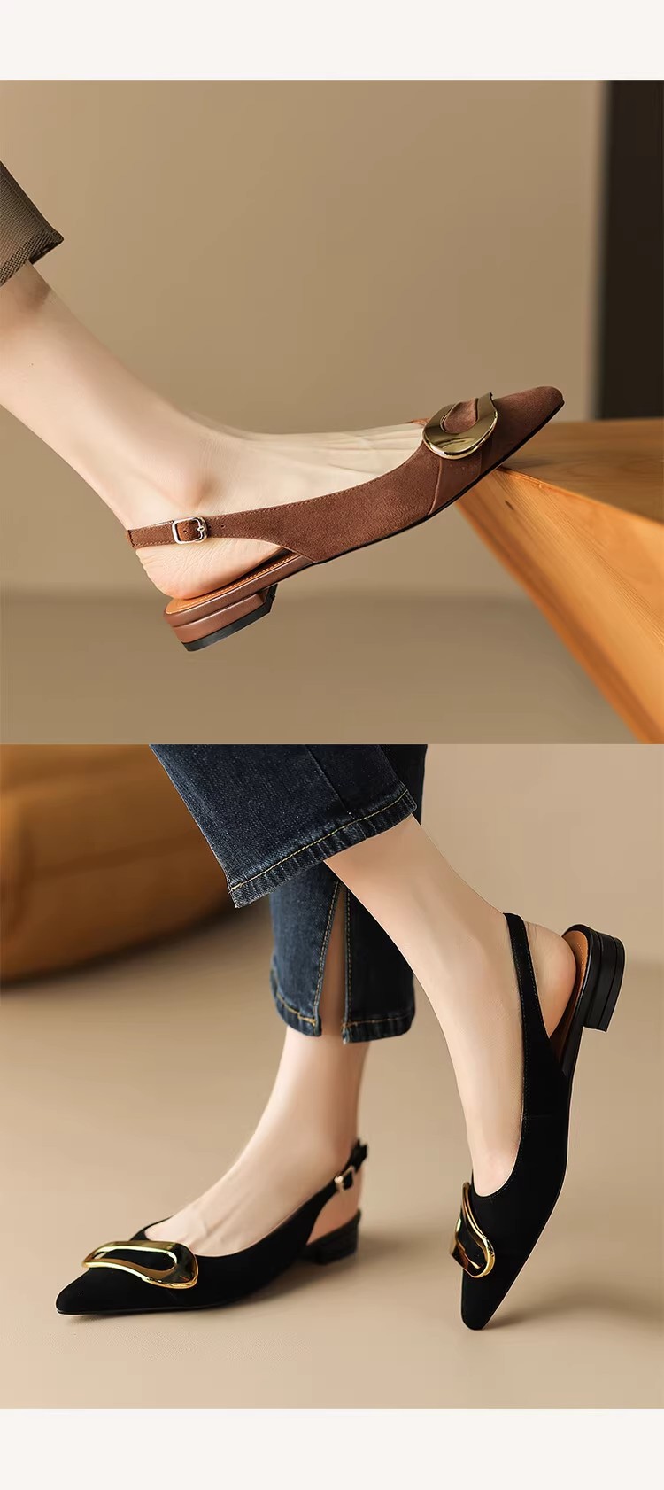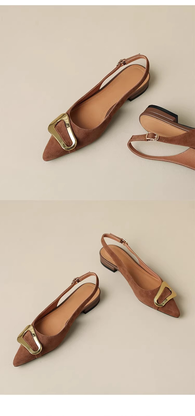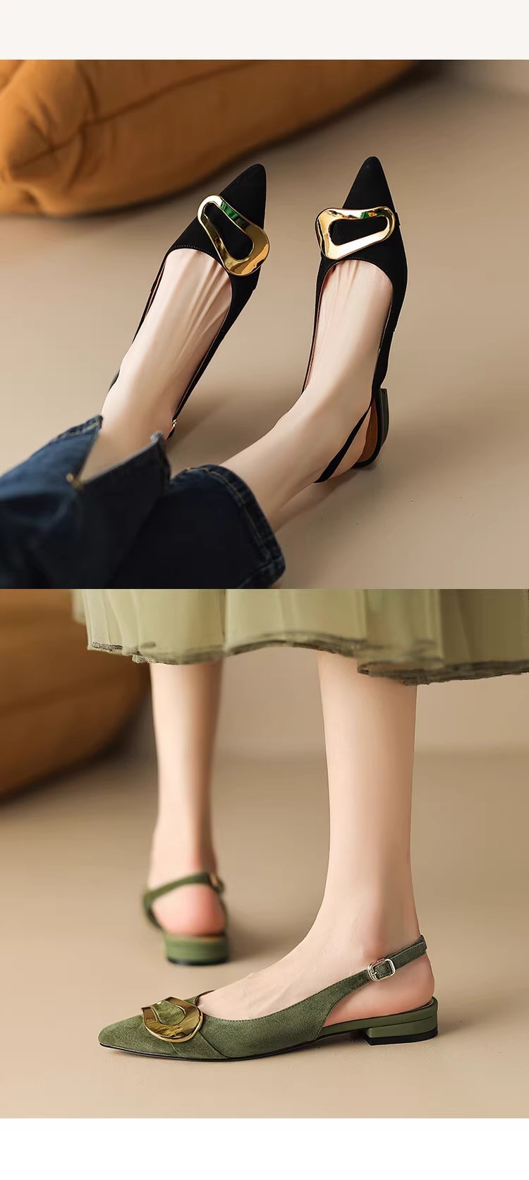 여성을위한 프랑스 복고풍 금속 버클 플랫 슈즈 2025 봄, 여름 Baotou 샌들 뾰족한 발가락 기질 펌프스