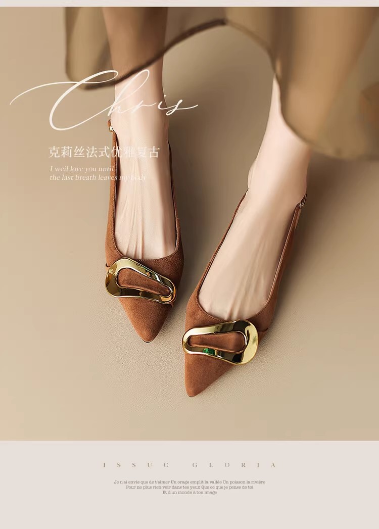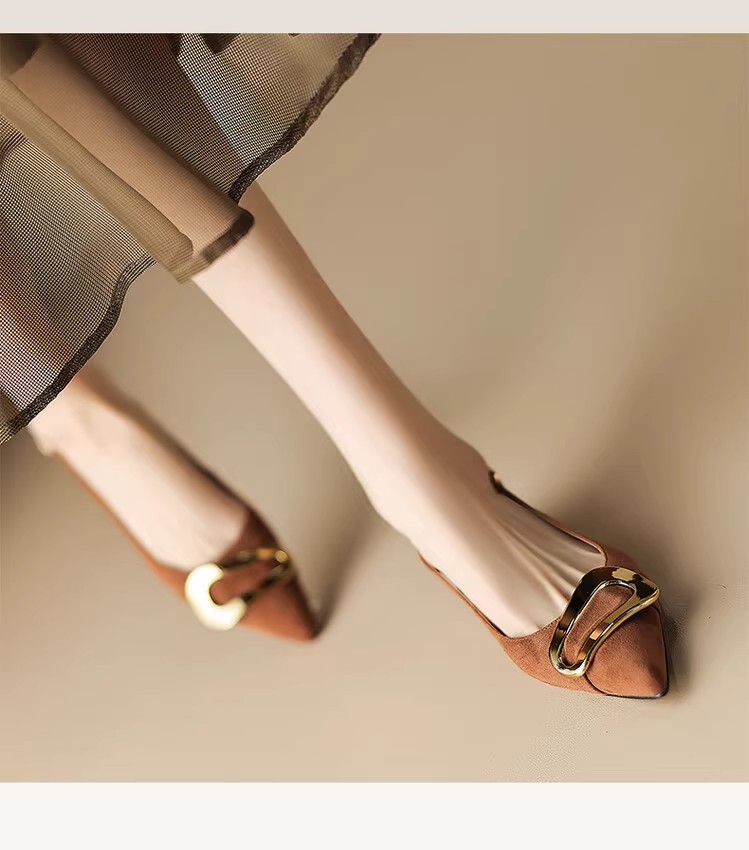 여성을위한 프랑스 복고풍 금속 버클 플랫 슈즈 2025 봄, 여름 Baotou 샌들 뾰족한 발가락 기질 펌프스스토어 가기