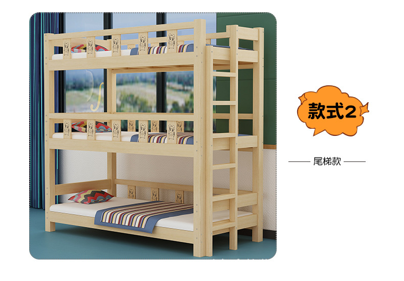 实木床架子床,上下铺高低床,双层床,纯实木,床板也是实木,订好的整板,不响也不晃,外表做了水性清漆,可以长期使用,可以用湿毛巾打理,,做了漆的好出是,表面光滑,没有毛刺,不容易有裂纹,不容易变形,实木床,只做好质量的,懂货的来,尾梯,侧梯