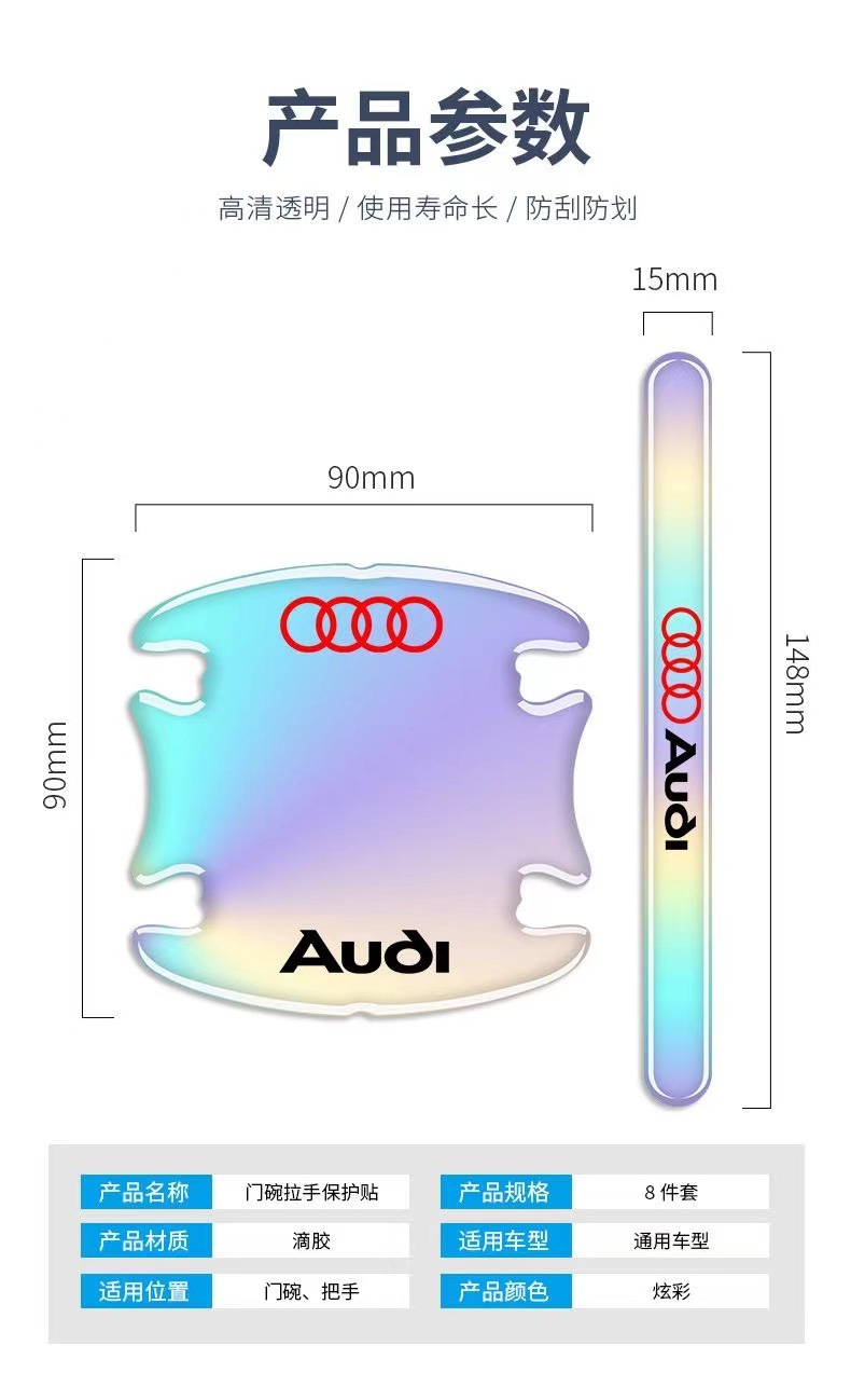 자동차 발광 다채로운 도어 손잡이 충돌 방지 스트립 도어 핸들 긁힘 방지 보호 스티커 다채로운 레이저 장식 스티커