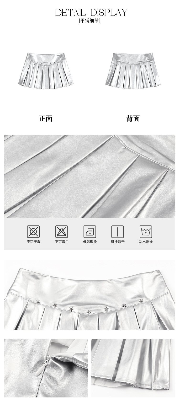 여름 여성을 위한 아메리칸 핫걸 플리츠 스커트, 섹시한 노출 방지 미니 스커트, 실버 로우 웨이스트 PU 가죽 A라인 스커트스토어 가기