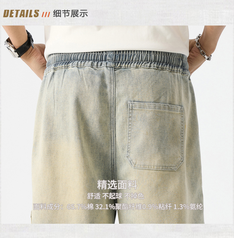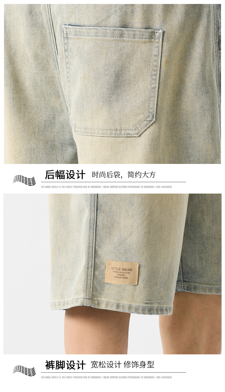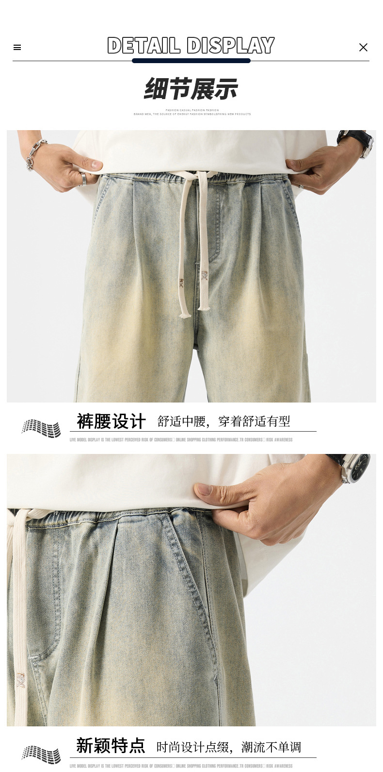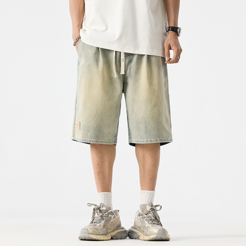 플러스 사이즈 남성 여름 신작 일본 복고풍 워싱 데님 반바지 남성 루즈 스트레이트 얇은 5부 바지스토어 가기