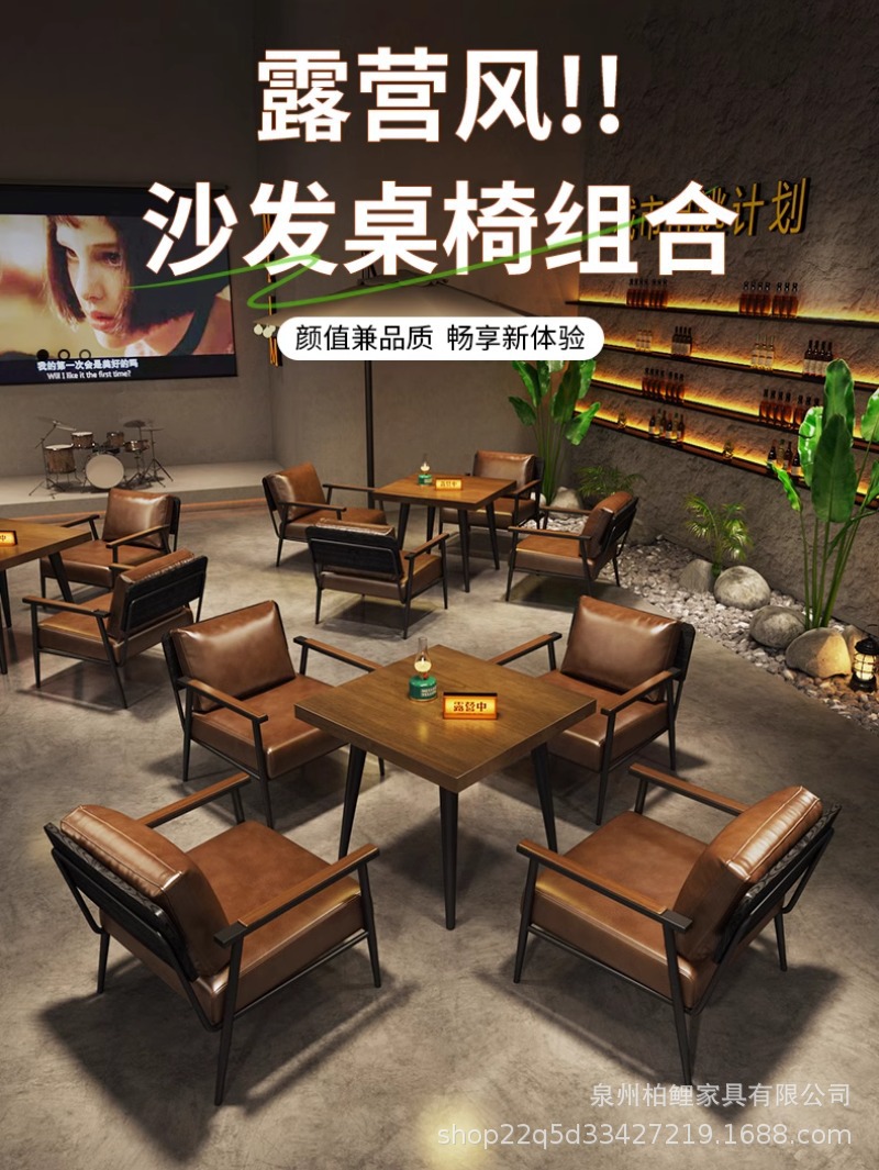 인터넷 연예인 캠핑 스타일 바 좌석 소파 바베큐 레스토랑 커피 숍 테마 레스토랑 다이닝 바 비스트로 클리어 바 테이블과 의자스토어 가기