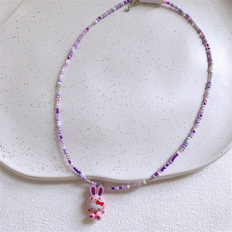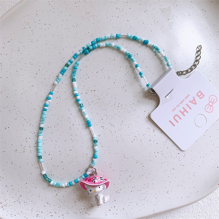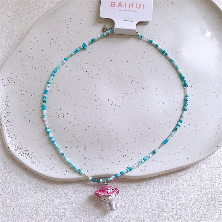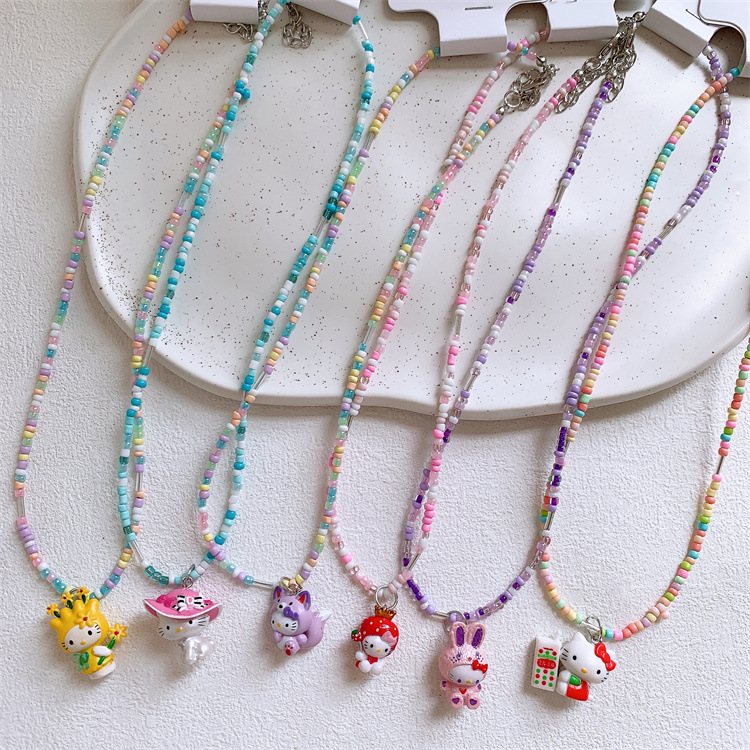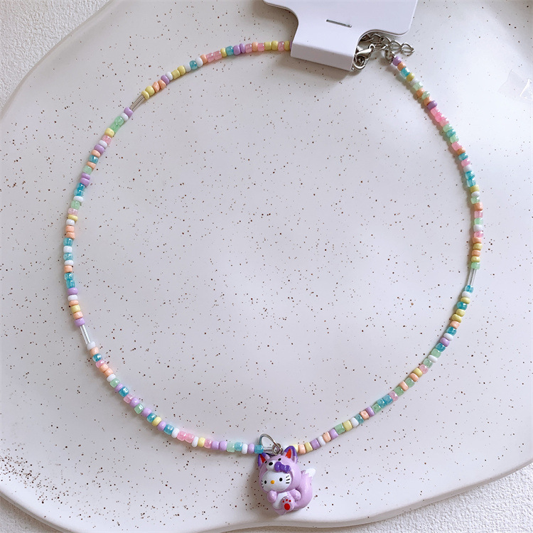 달콤한 아이들 귀여운 만화 키티 컬러 비즈 목걸이 소녀 공주 펜던트 목걸이 목구멍 체인 액세서리스토어 가기
