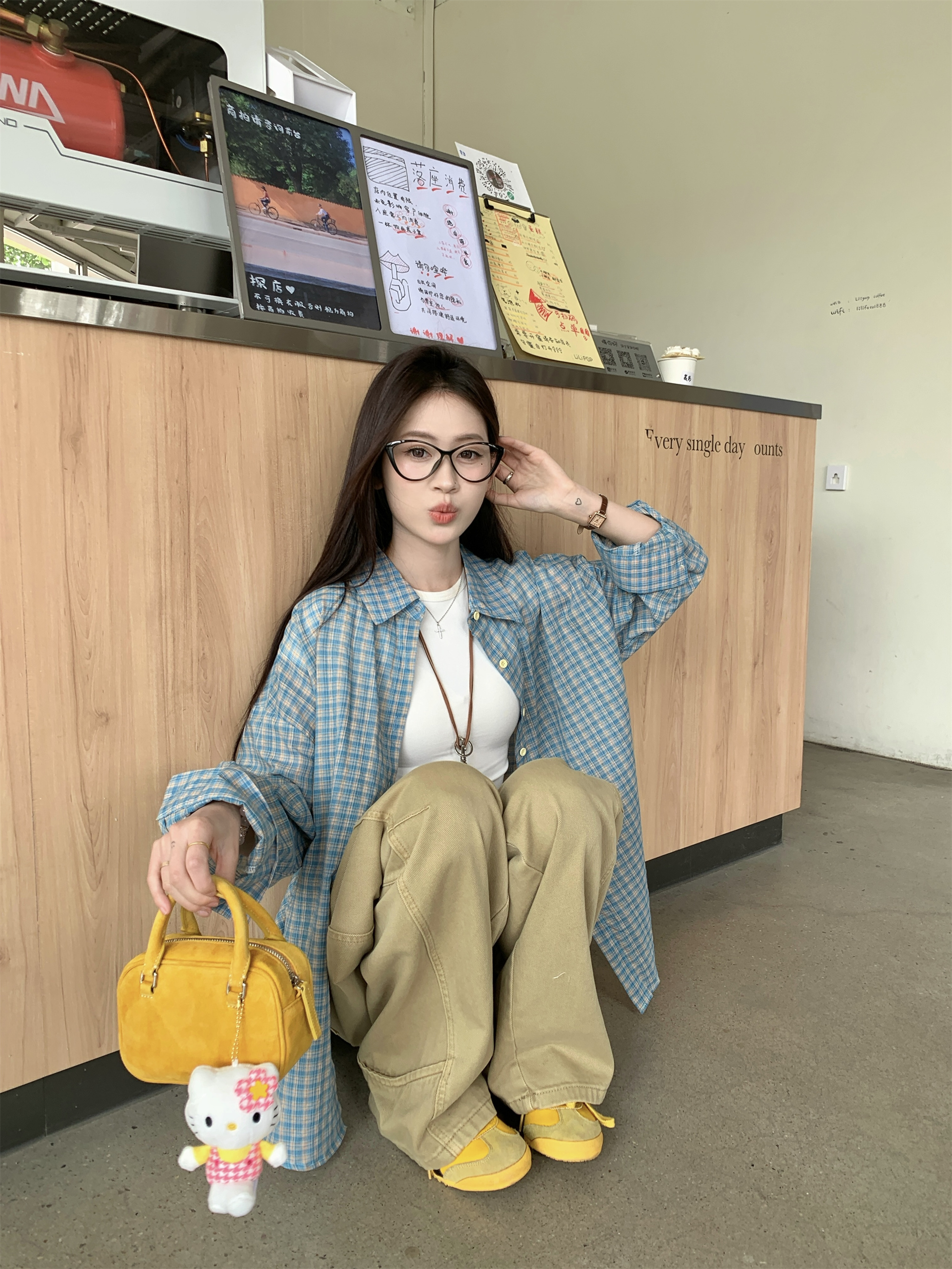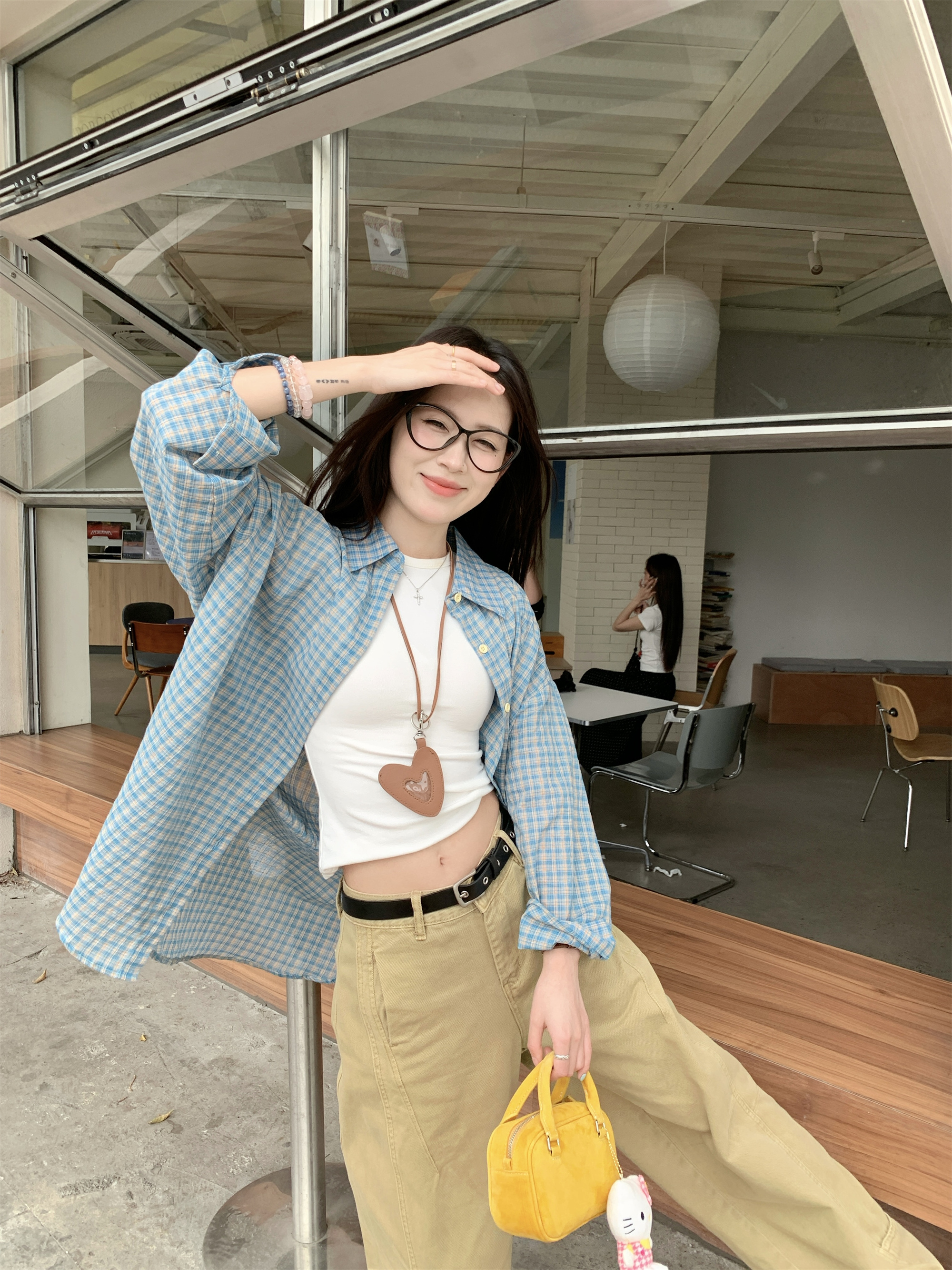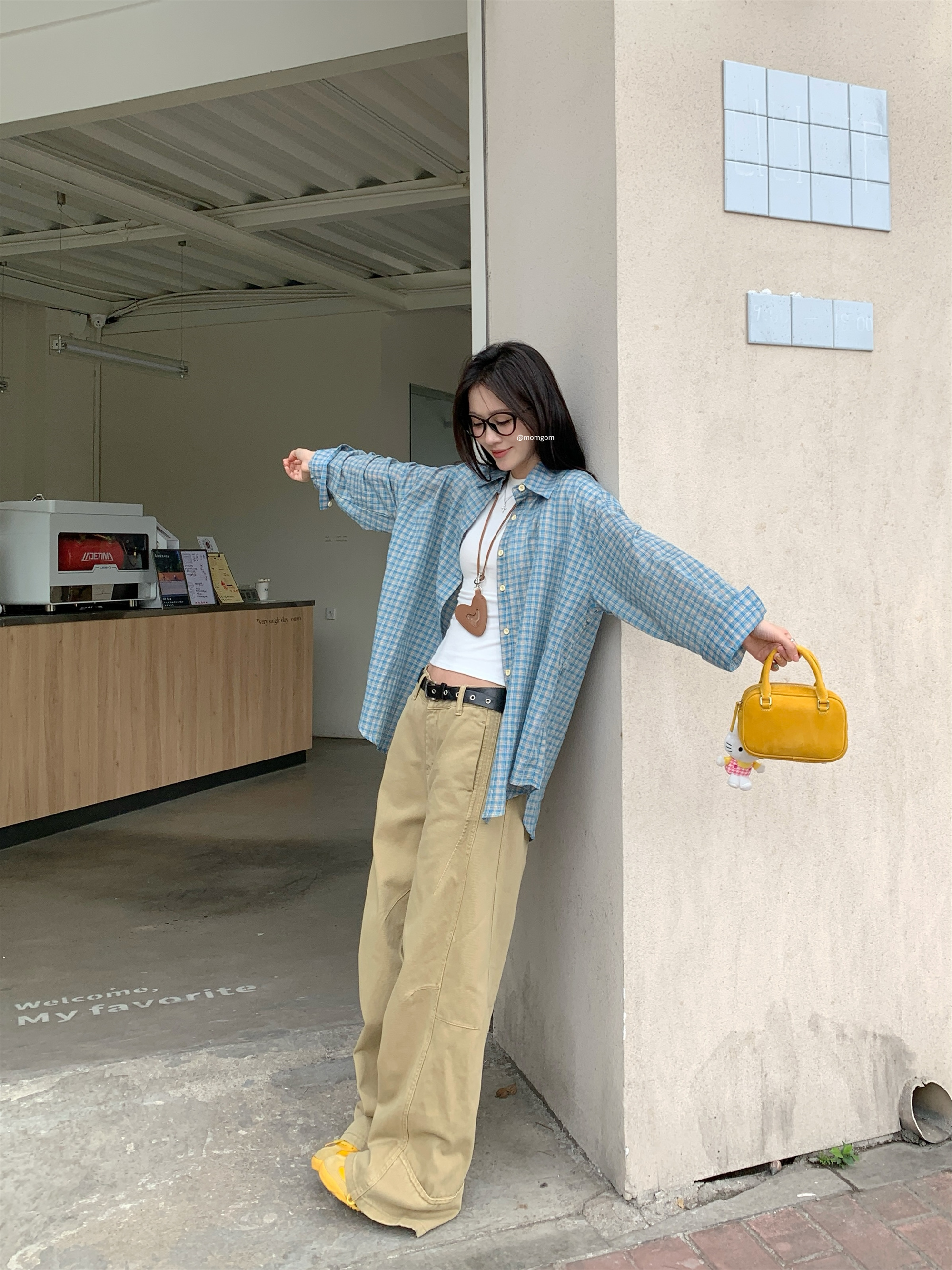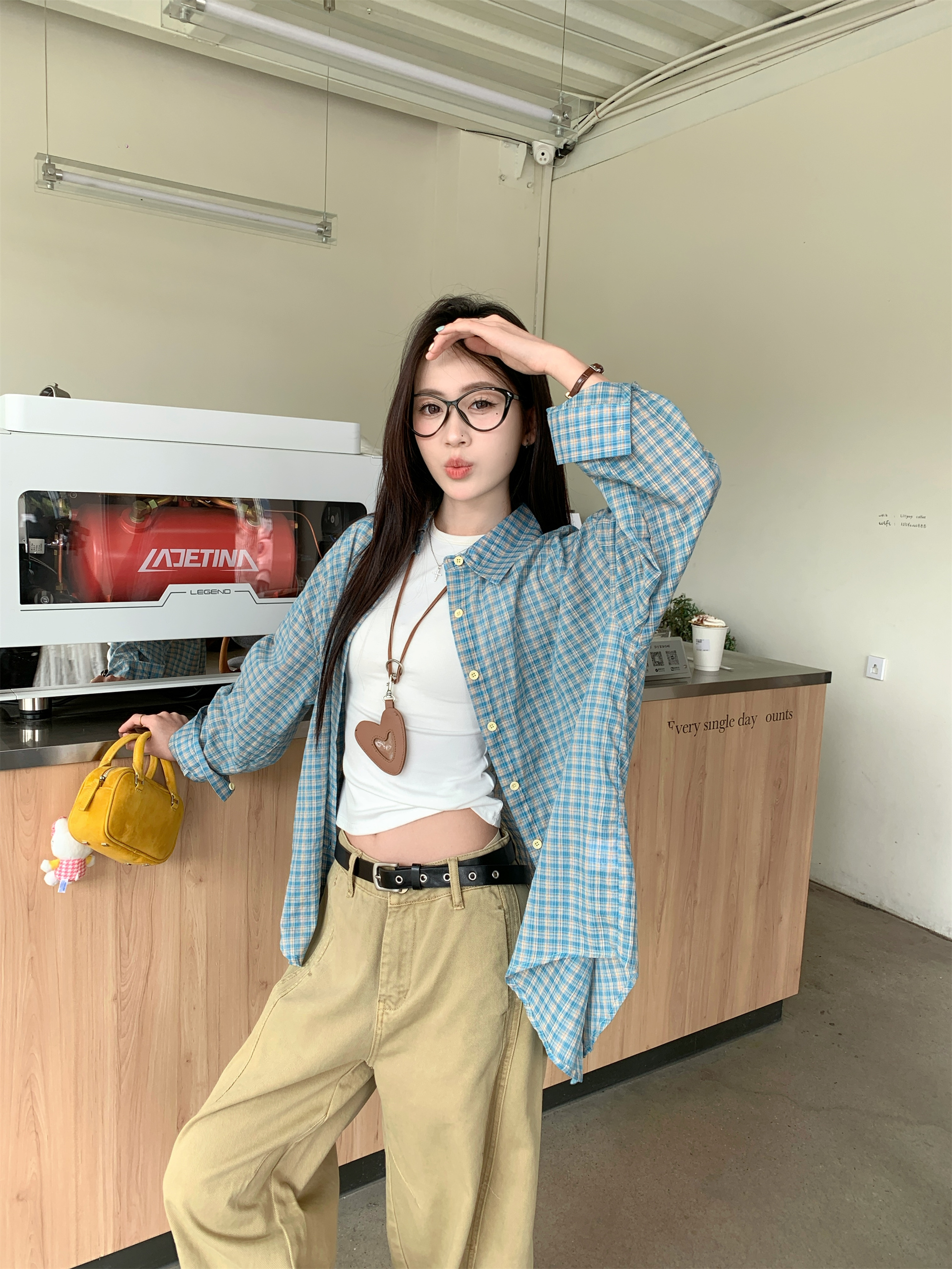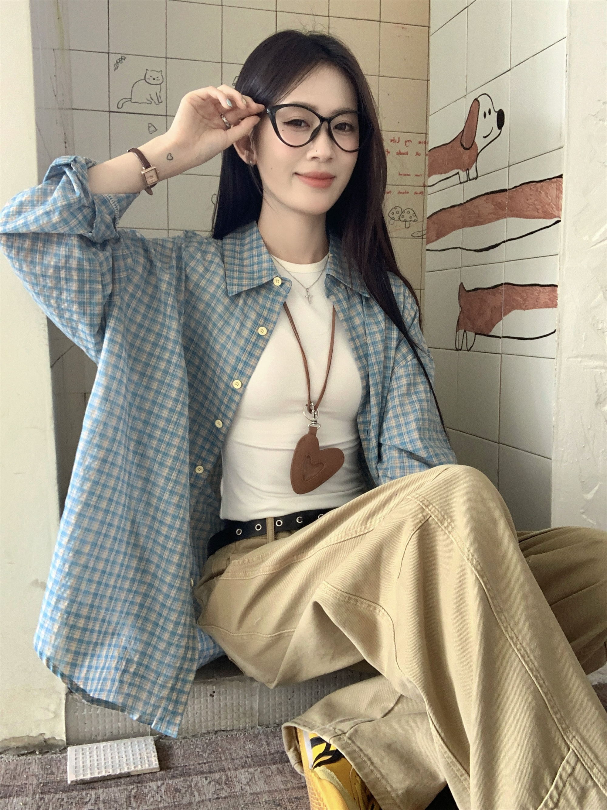 • 파란색 격자 무늬 셔츠