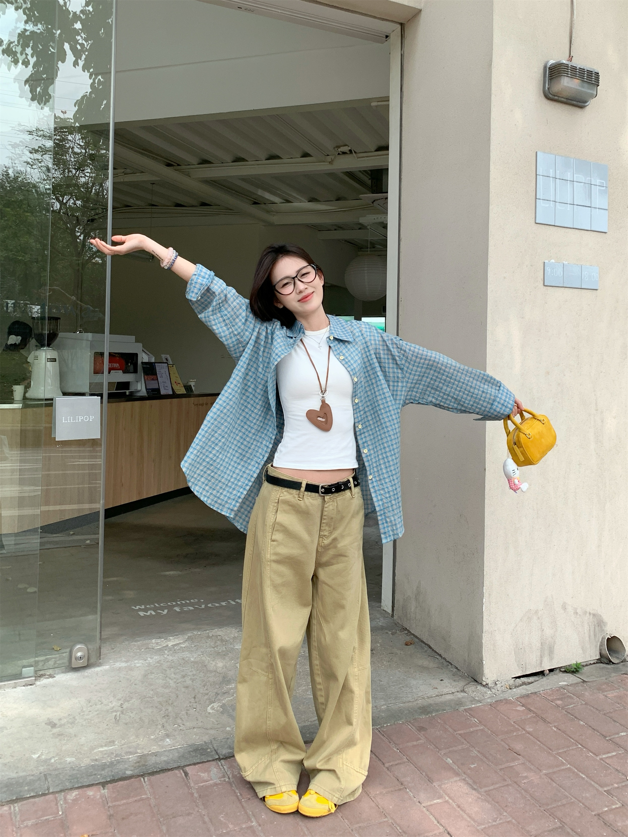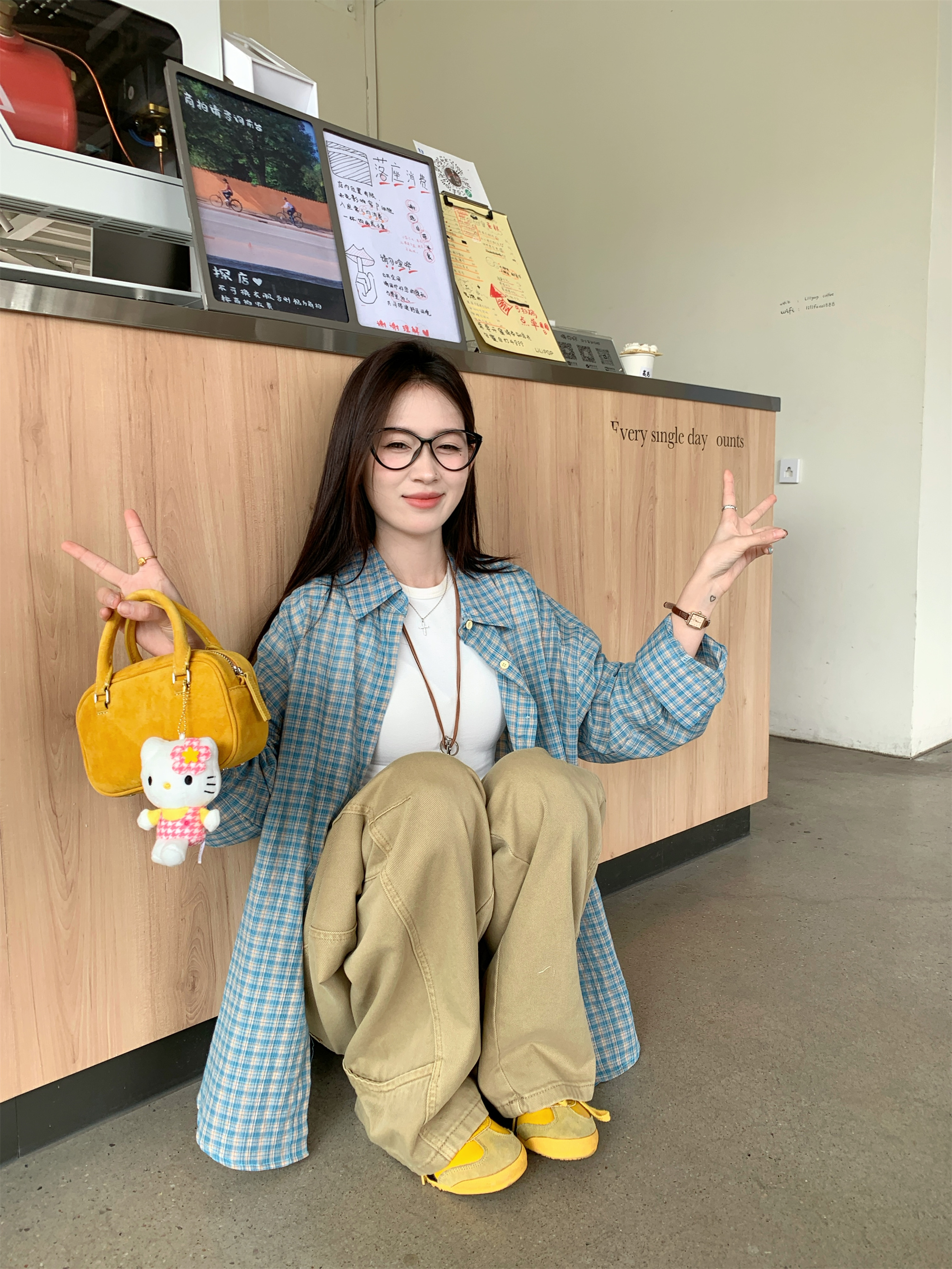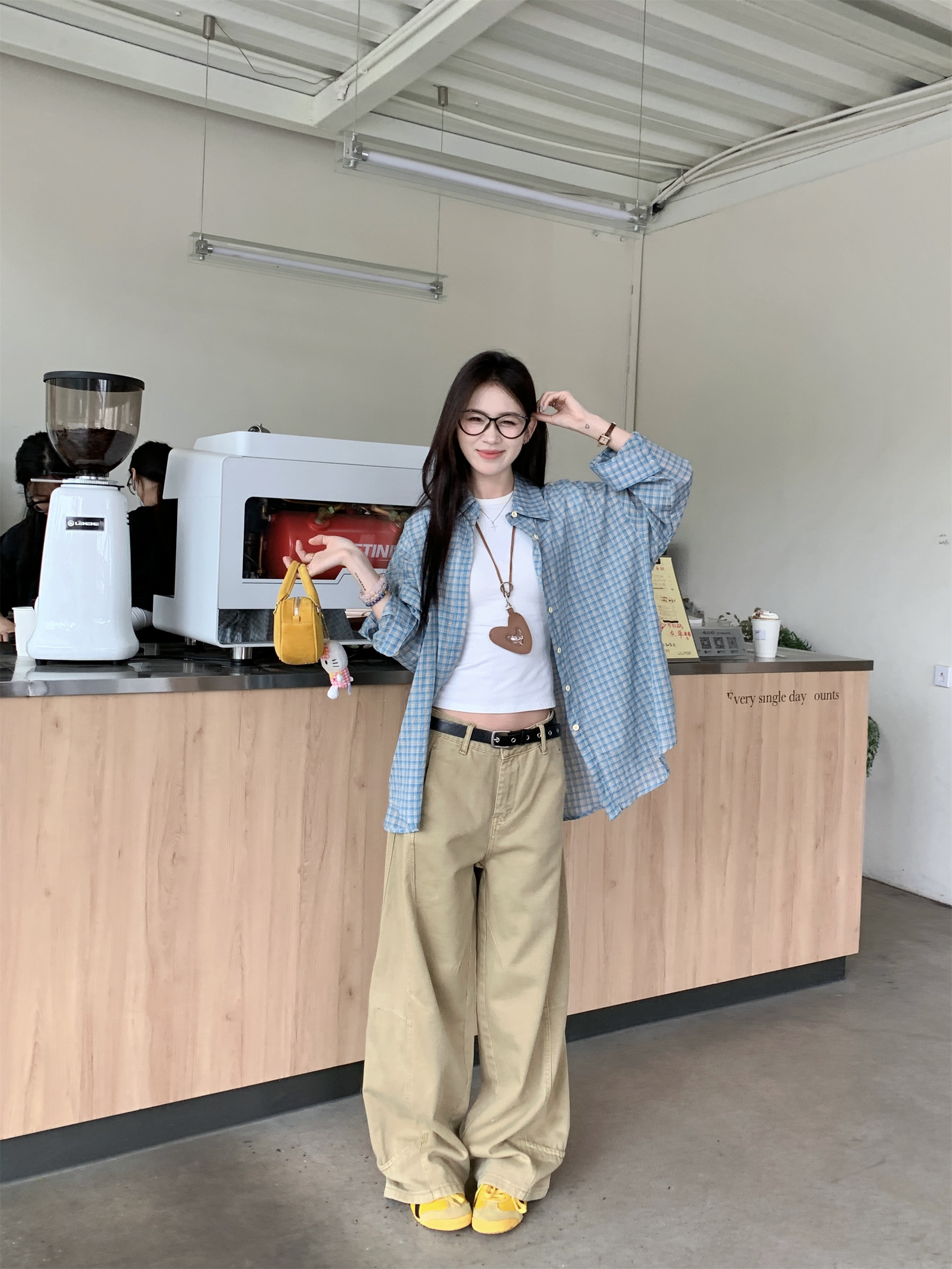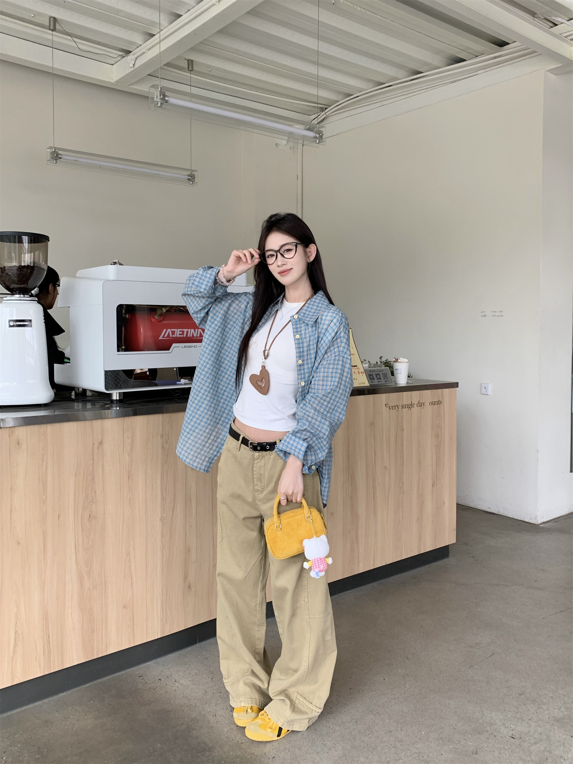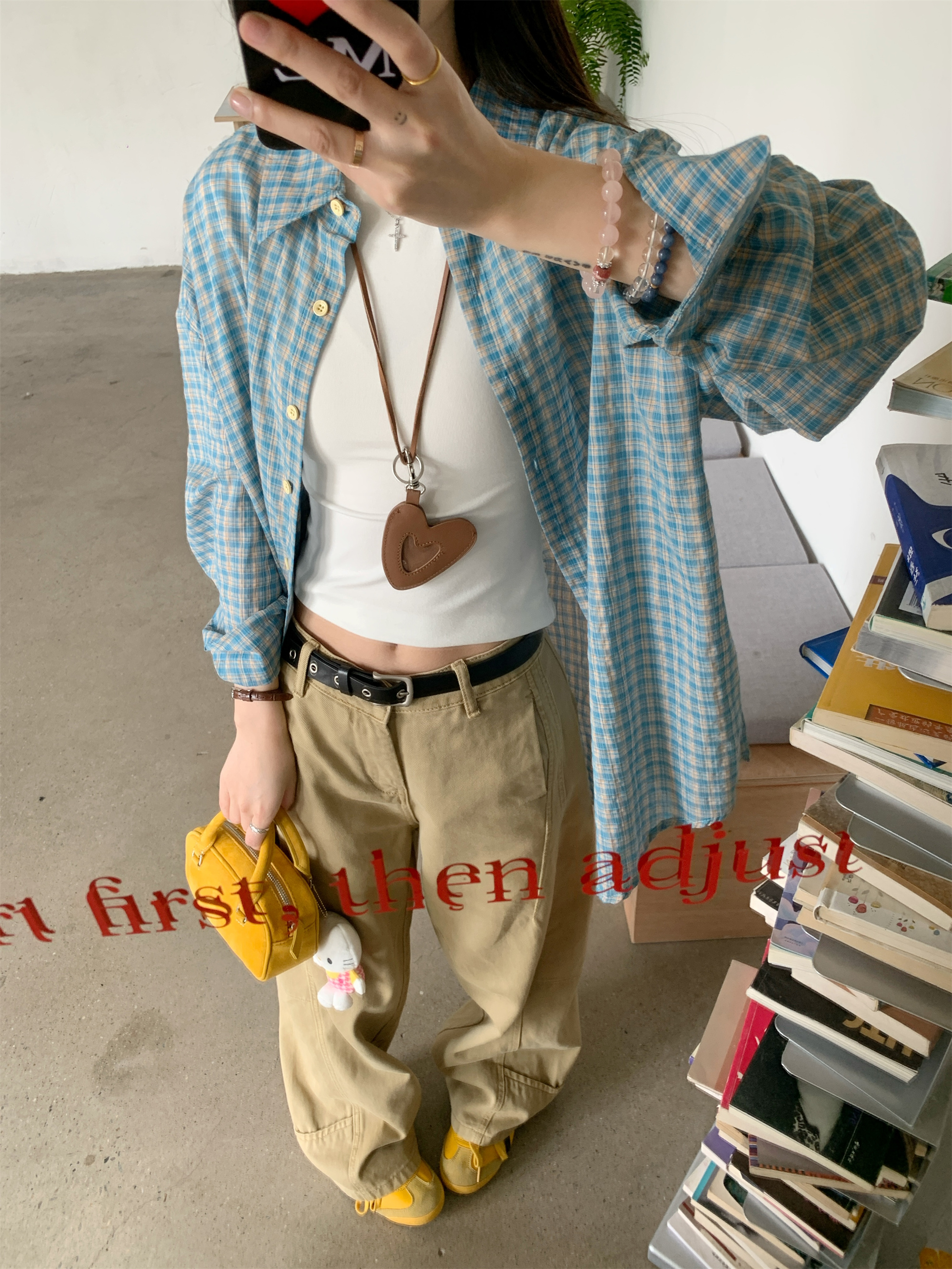 • 파란색 격자 무늬 셔츠