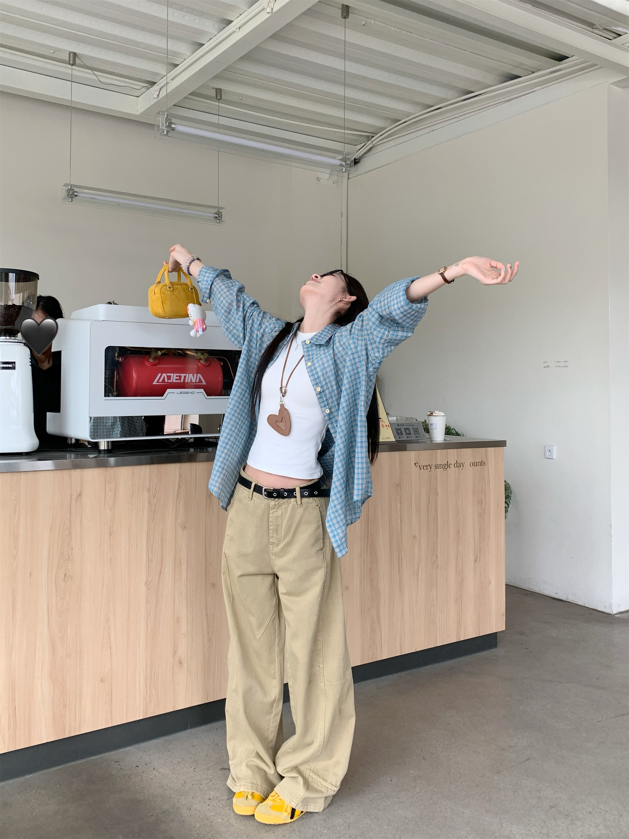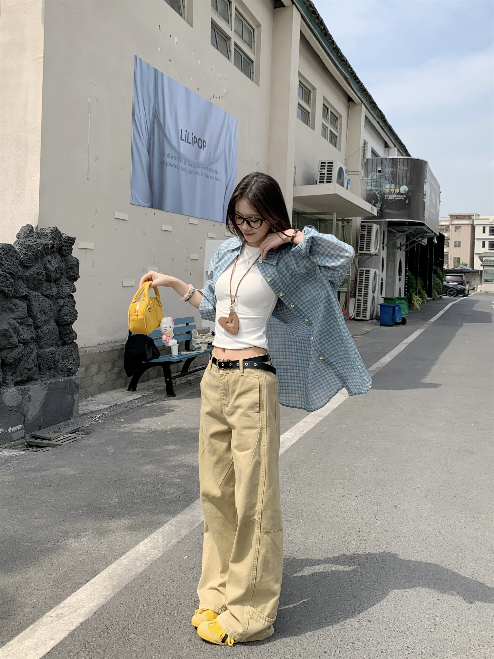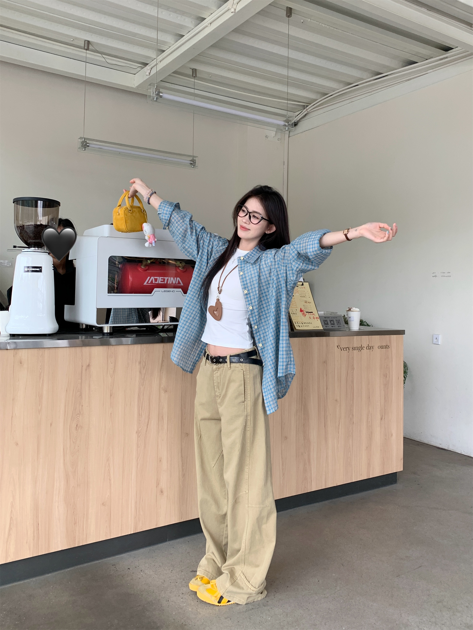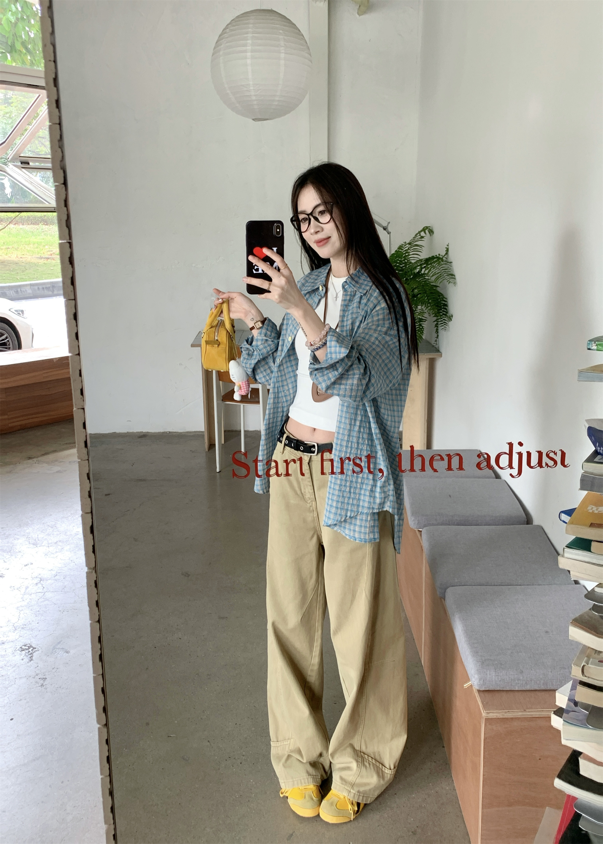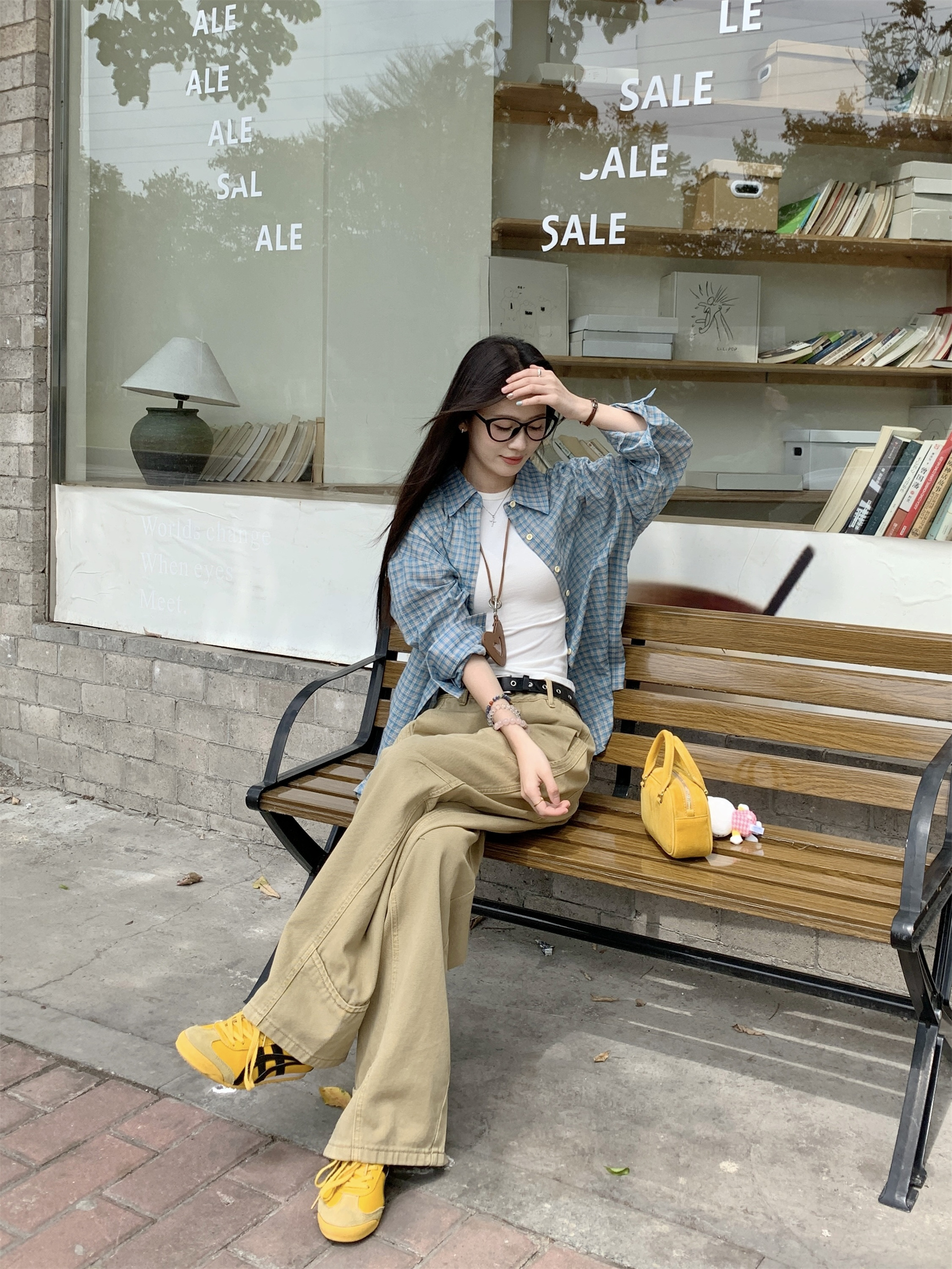 • 파란색 격자 무늬 셔츠