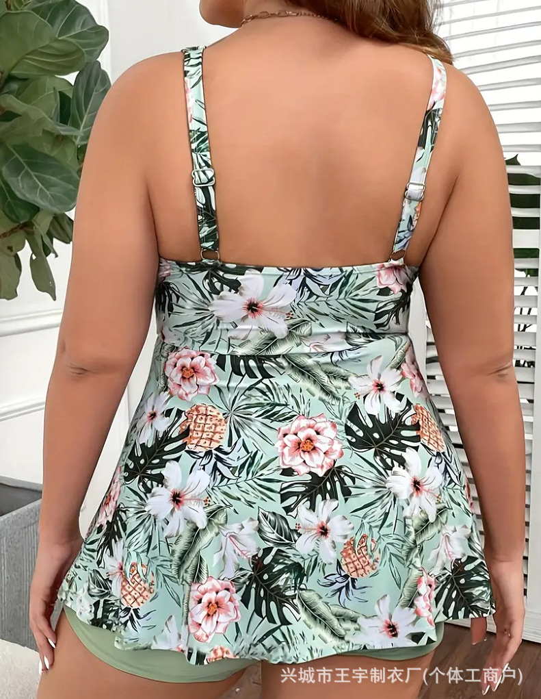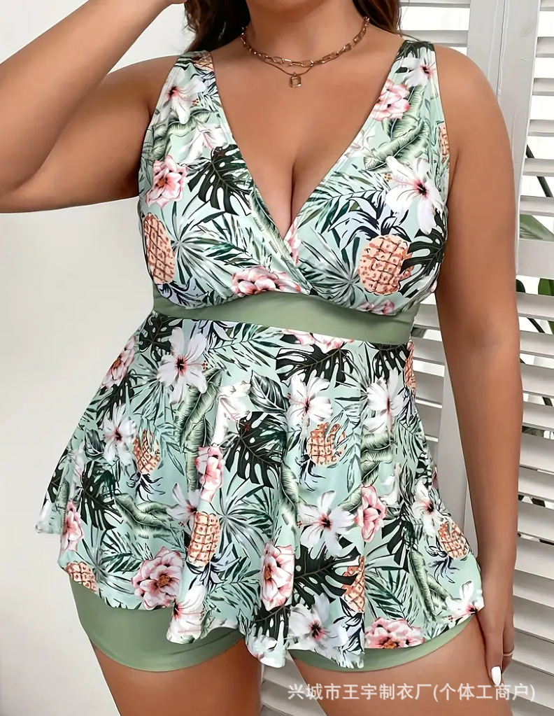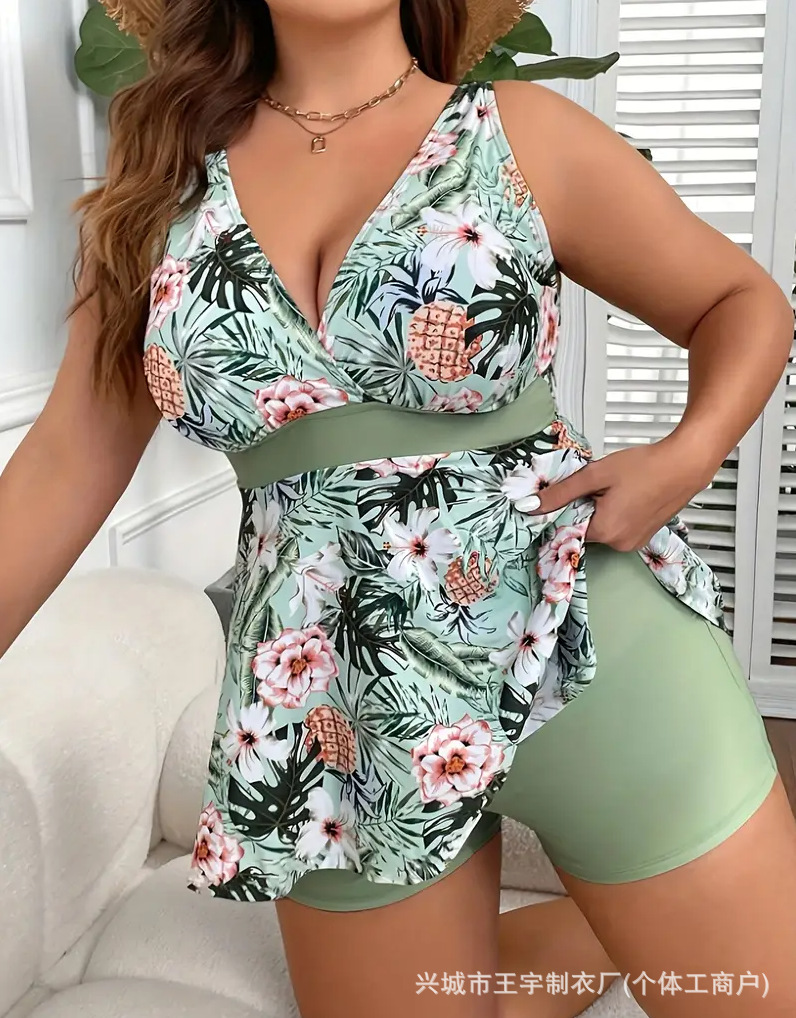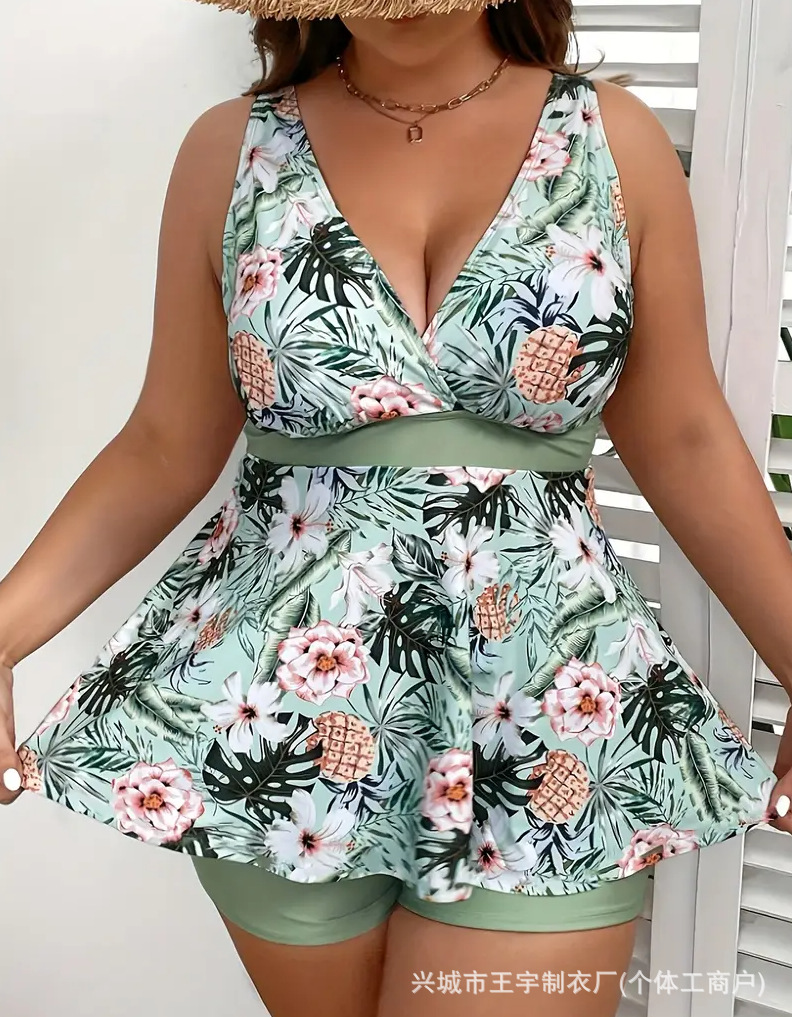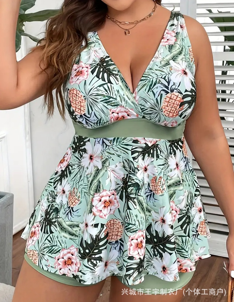 2025 새로운 유럽과 미국의 프린트 스커트 스타일 대형 복서 스플릿 수영복 여성 섹시한 하이 웨이스트 서스펜더 비키니 수영복