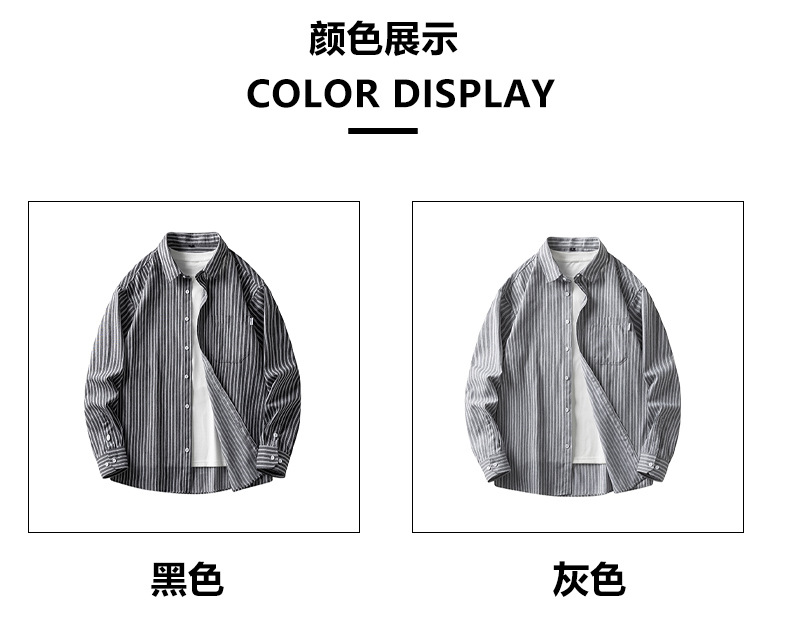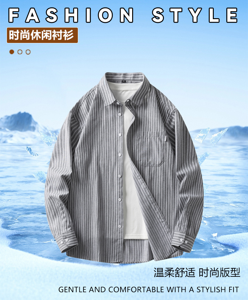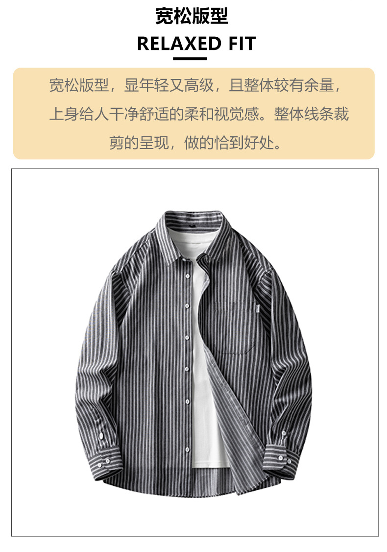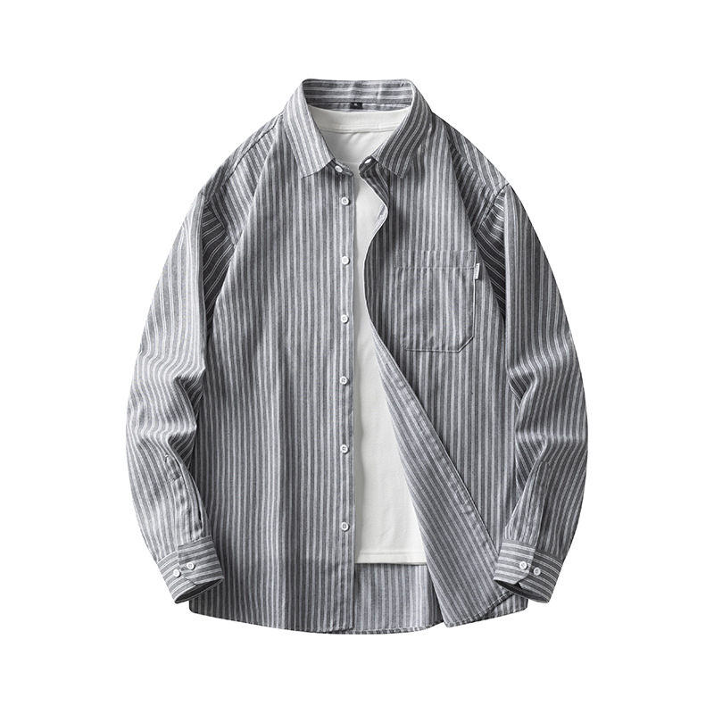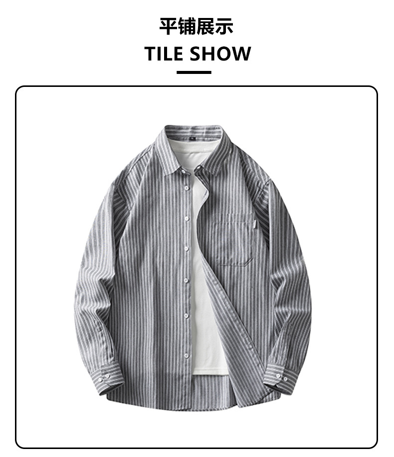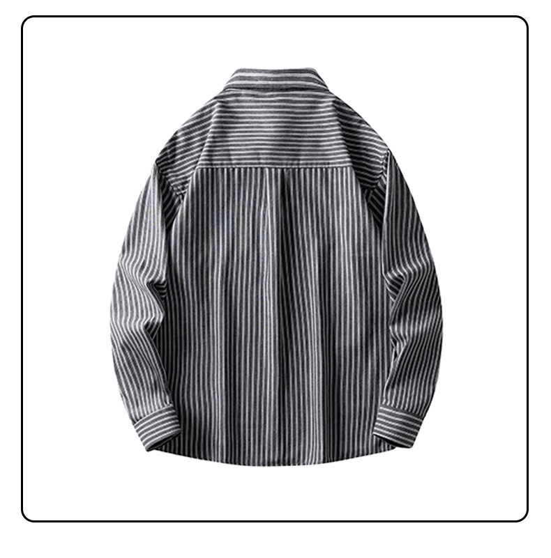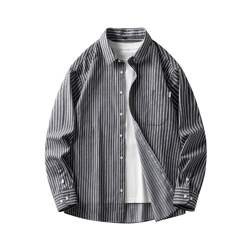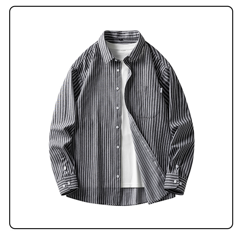무료 배송 2024 트렌디 신작 가을 스타일(국경 간 공급) 트렌디 루즈핏 스트라이프 셔츠 남성 캐주얼 롱스토어 가기