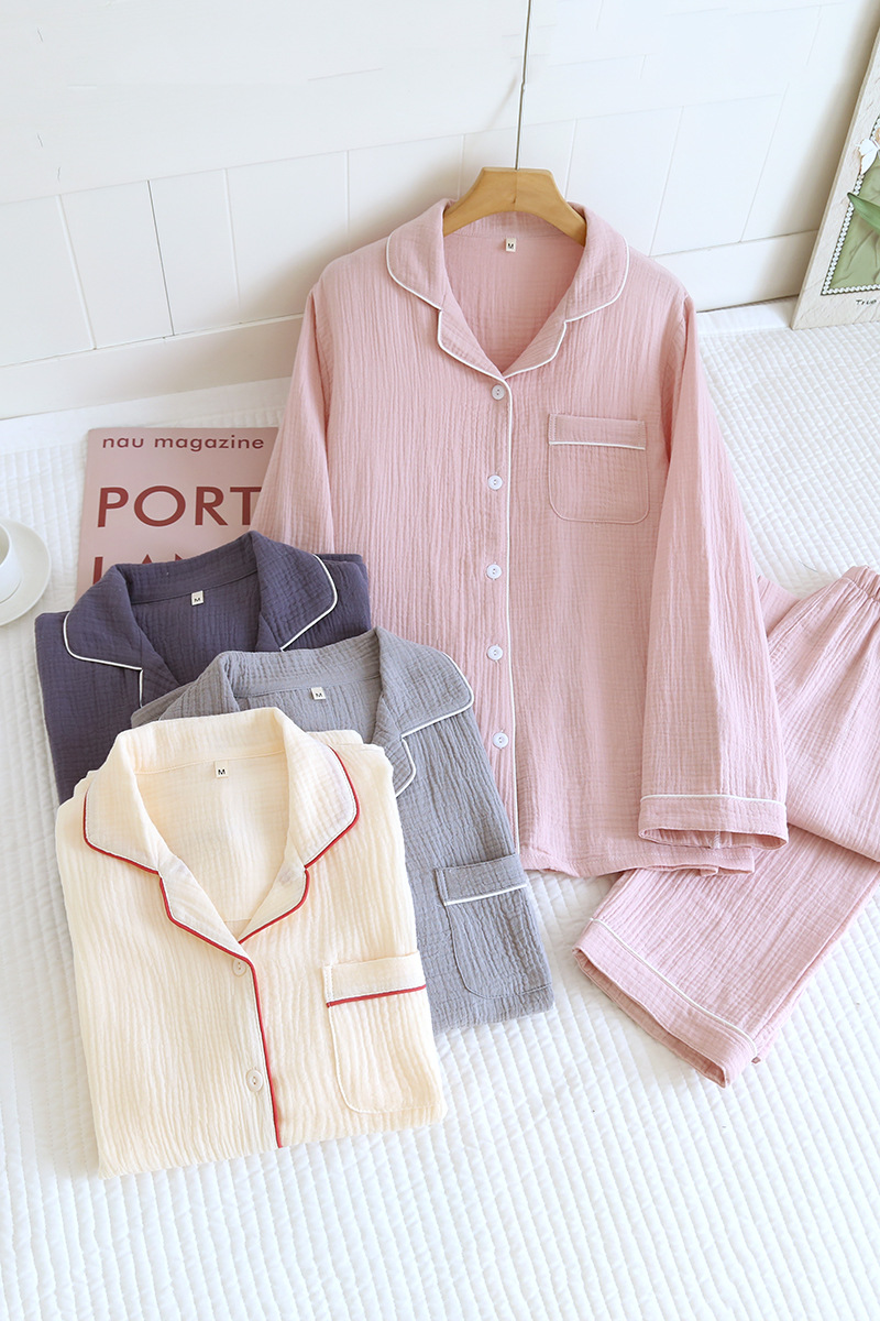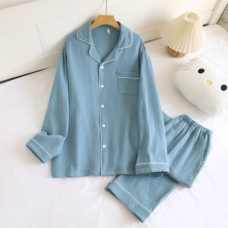 커플 잠옷 세트 봄 가을 여성 순수 코튼 거즈 긴 소매 남성 홈웨어 여름 얇은 코튼스토어 가기