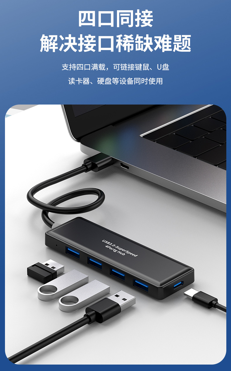 USB3.0HUB4포트 분배기 3.0 허브 3.0HUBUSB 컴퓨터 확장 도크 허브 다중 인터페이스스토어 가기