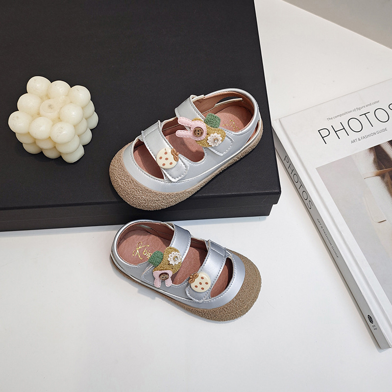 2025 새로운 여름 어린이 신발 어린 소녀 달콤한 만화 공주 신발 한국 스타일 유행 다목적 소녀 하프 샌들