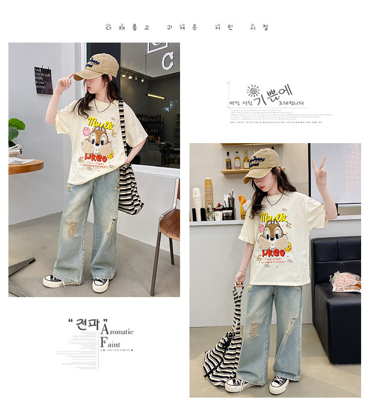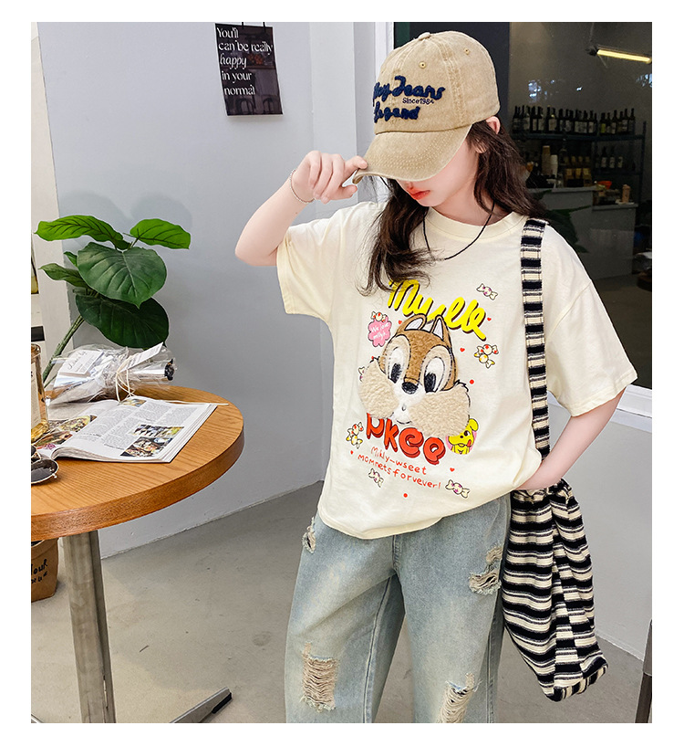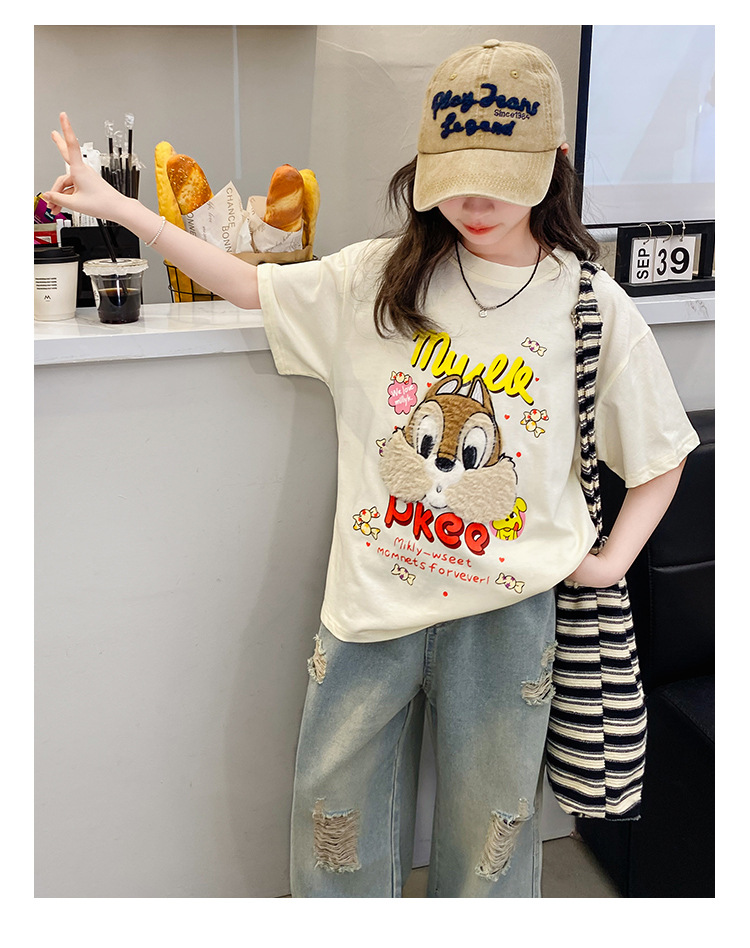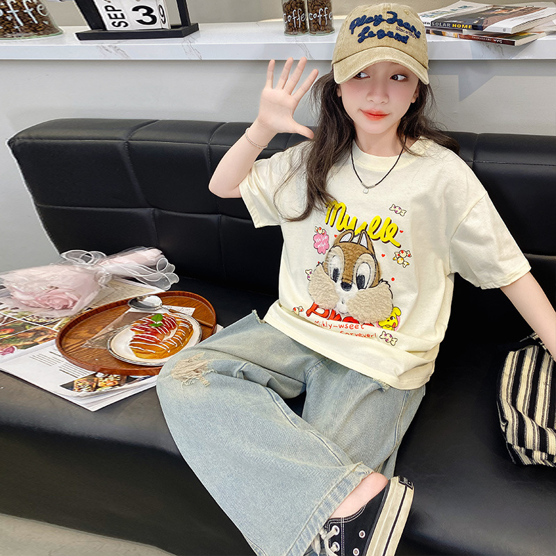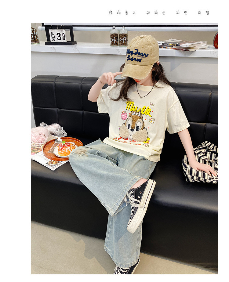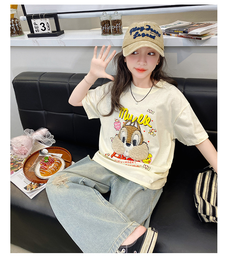 여아 여름 반팔 티셔츠 2026년 신상 중대형 아동 여름 캐주얼 달콤하고 예쁜 만화 캐릭터 상의