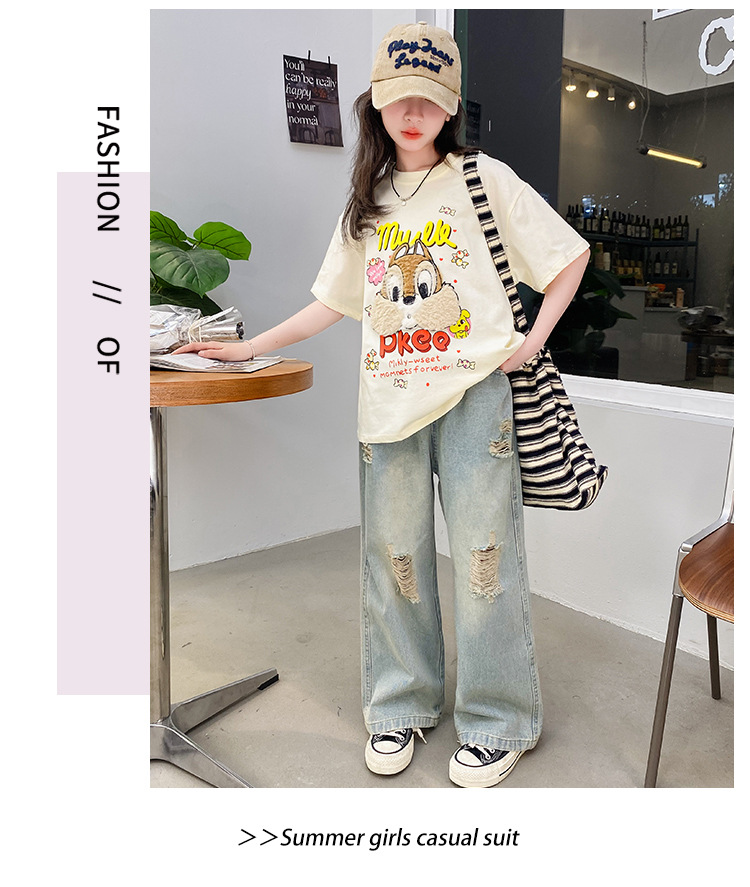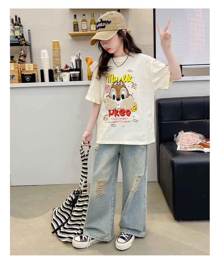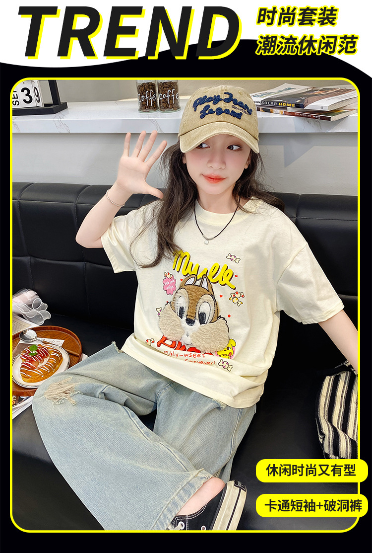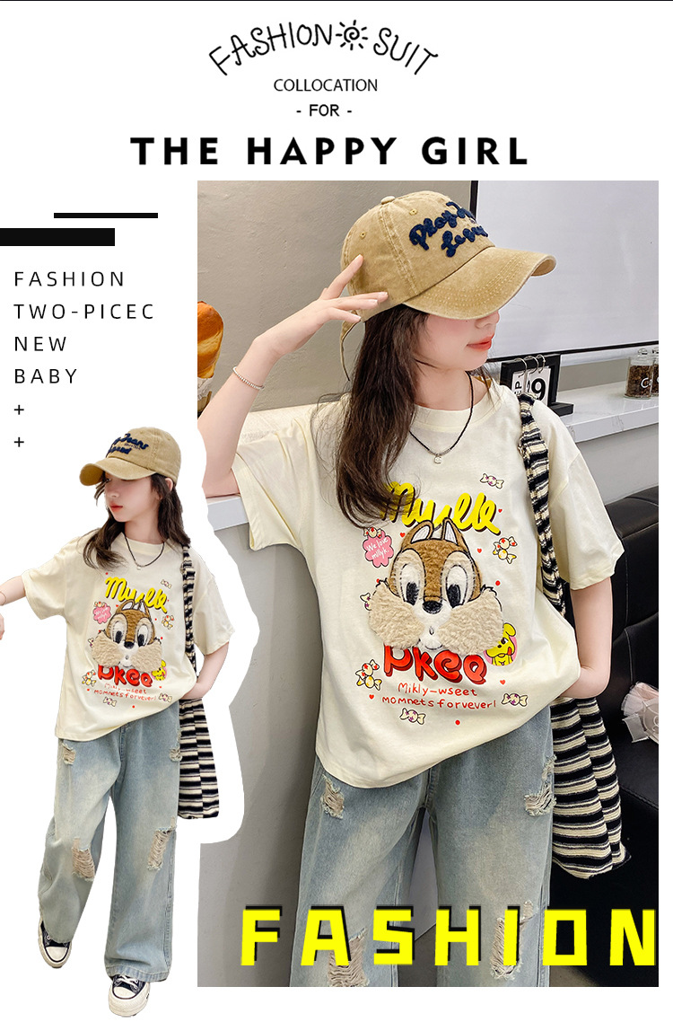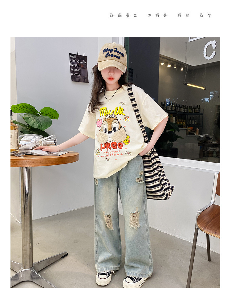 여아 여름 반팔 티셔츠 2026년 신상 중대형 아동 여름 캐주얼 달콤하고 예쁜 만화 캐릭터 상의