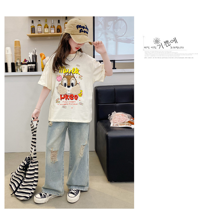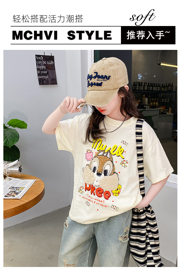 여아 여름 반팔 티셔츠 2026년 신상 중대형 아동 여름 캐주얼 달콤하고 예쁜 만화 캐릭터 상의스토어 가기