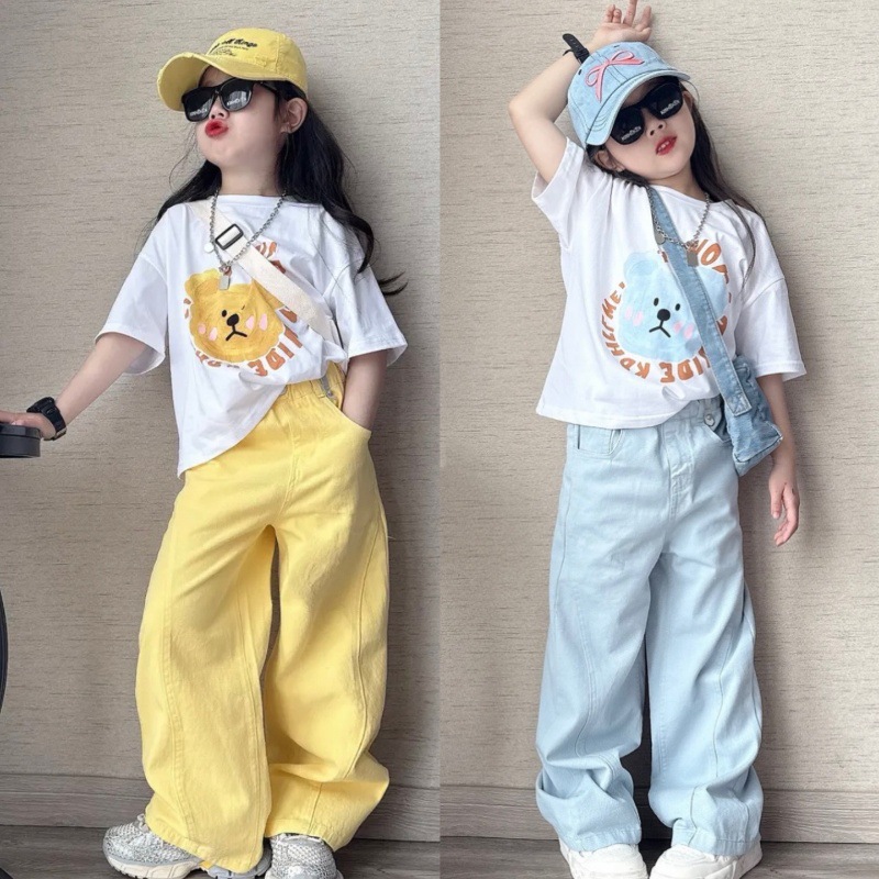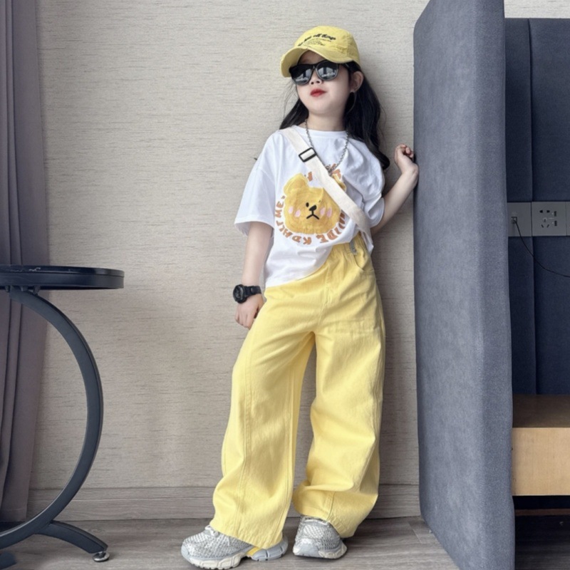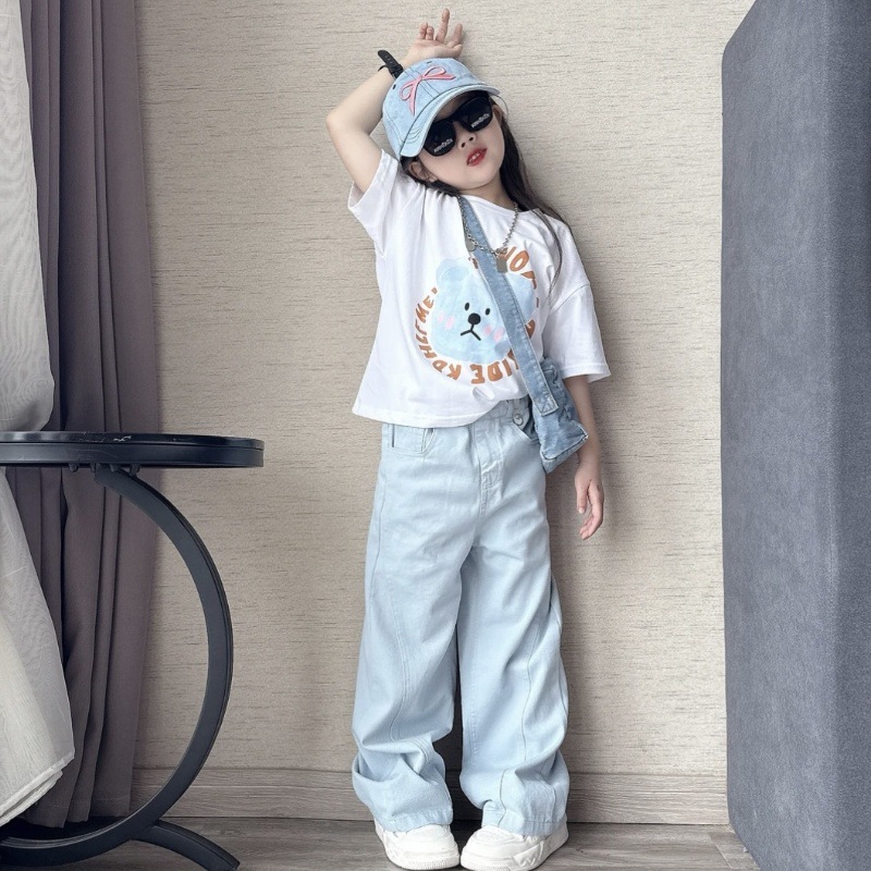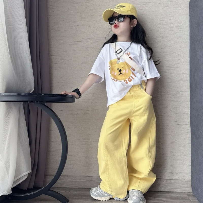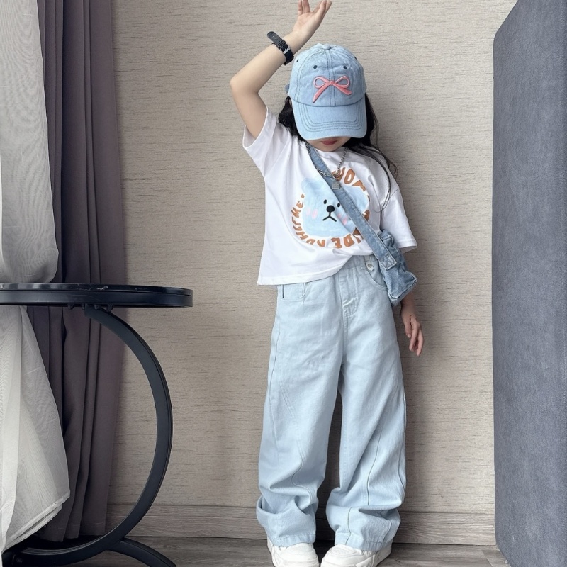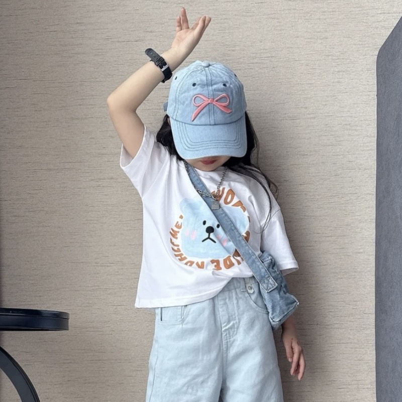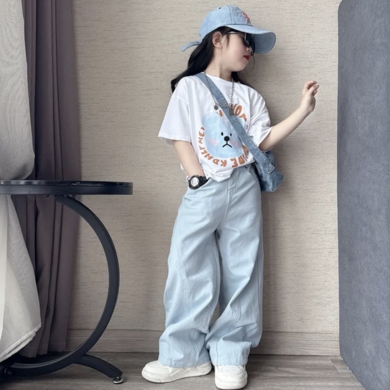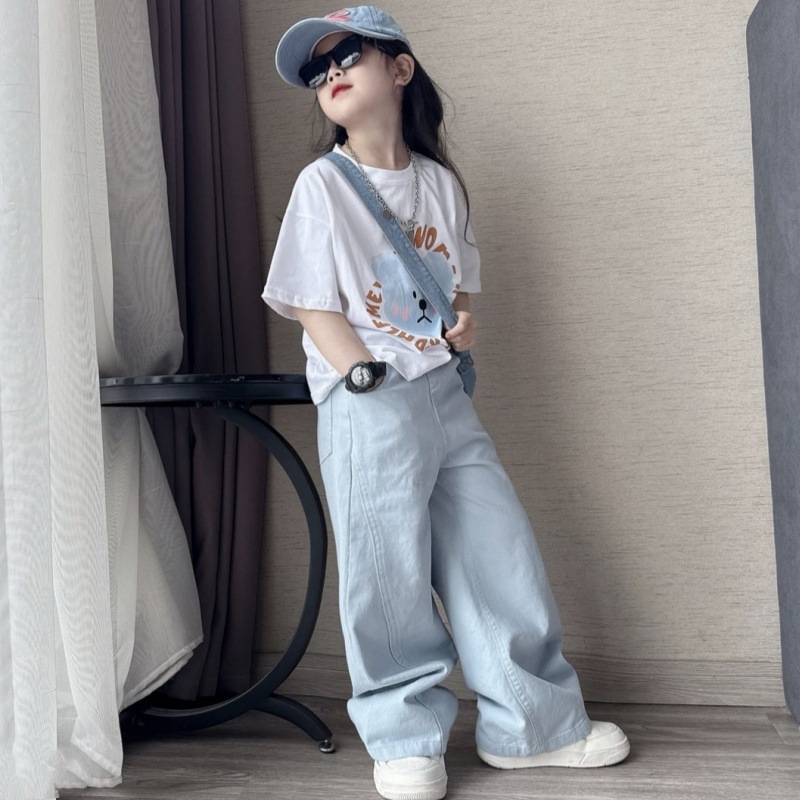 여름 소녀 도파민 착용 2025 새로운 한국식 곰 반팔 티셔츠 캐주얼 느슨한 마체테 바지 세트스토어 가기