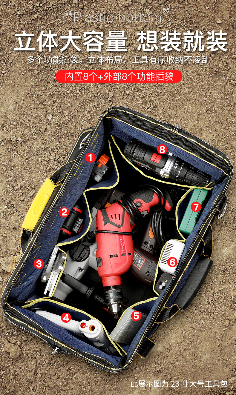 • 17inch 강화된 이중 목적 플라스틱 바닥 [입체적인 대용량/총 16개의 포켓]