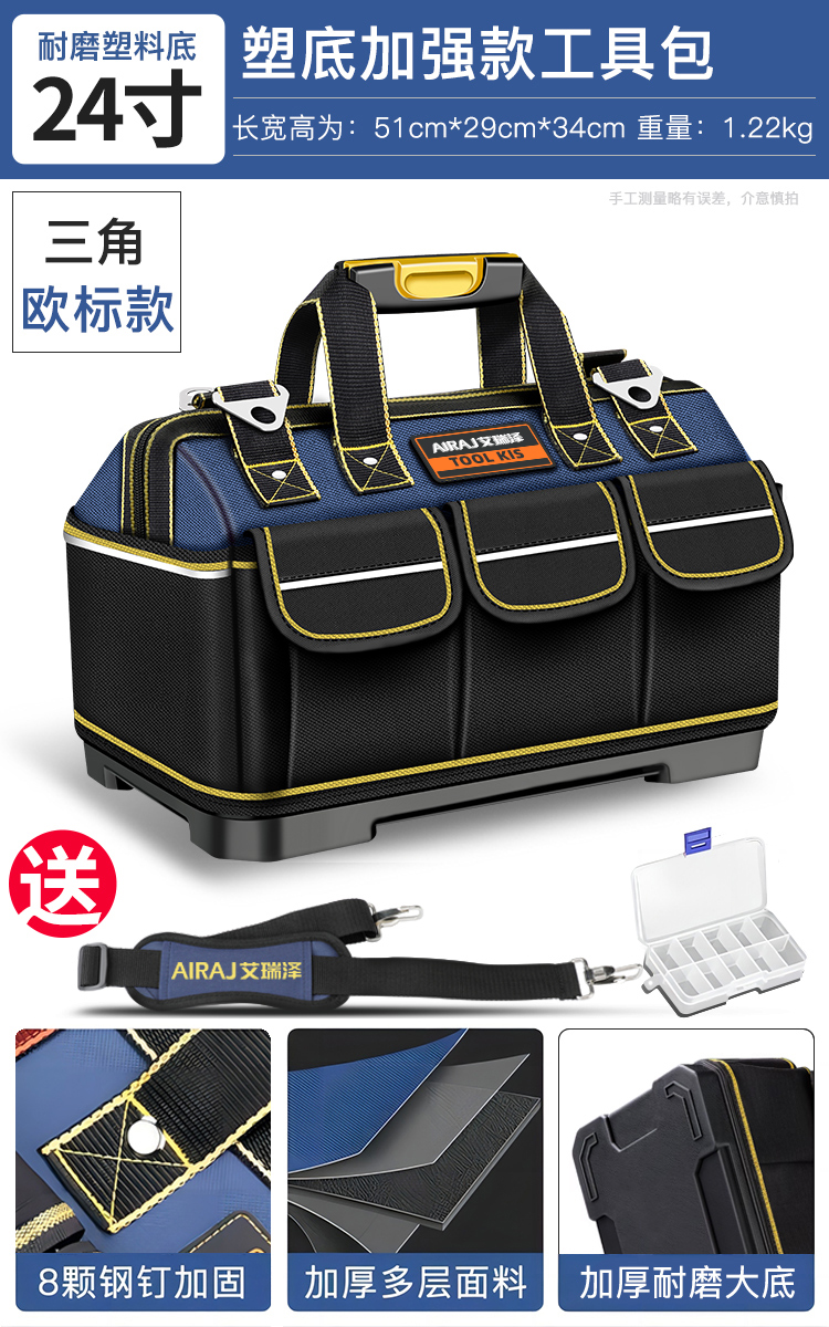 • 16inch 5겹 두꺼운 옥스포드 천[미끄럼 방지 발 못 4개] + 어깨끈/부품 상자.
