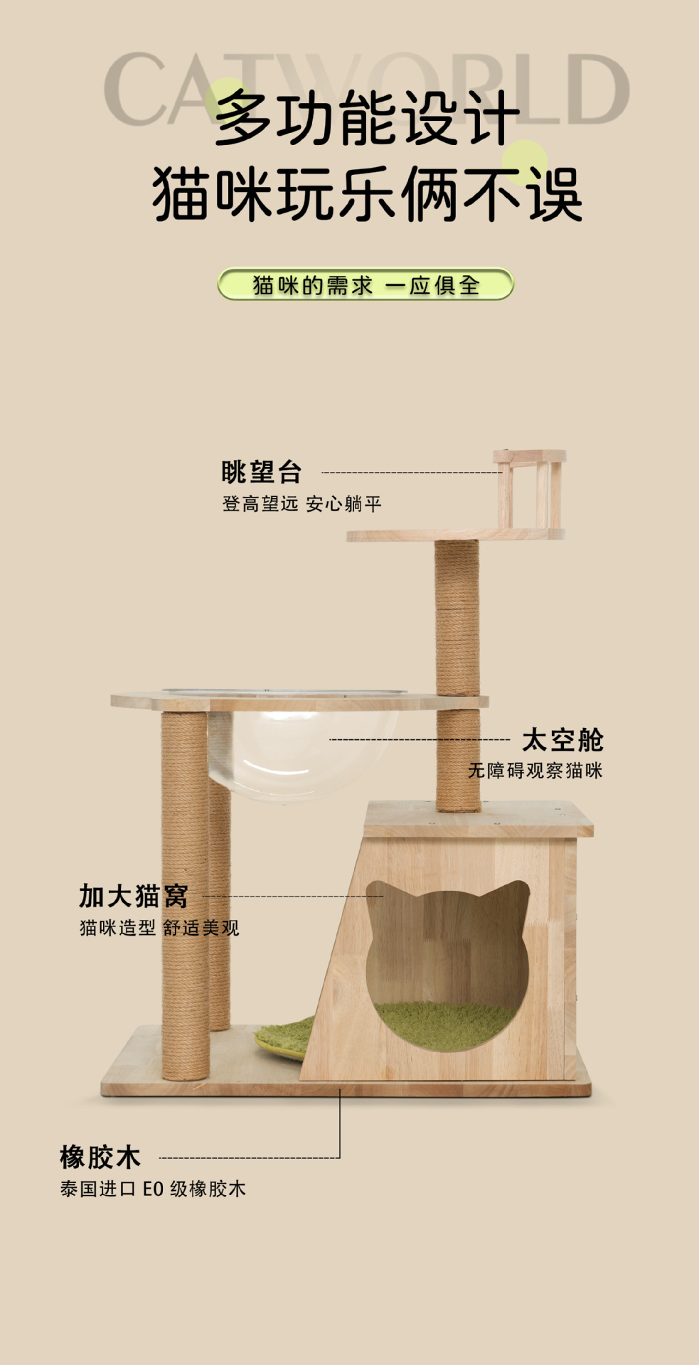 고양이 등반 랙 고양이 둥지 고양이 나무 통합 단단한 나무 공간 캡슐 가정용 작은 아파트 점유 선반 고양이 장난감스토어 가기