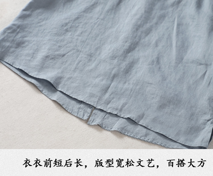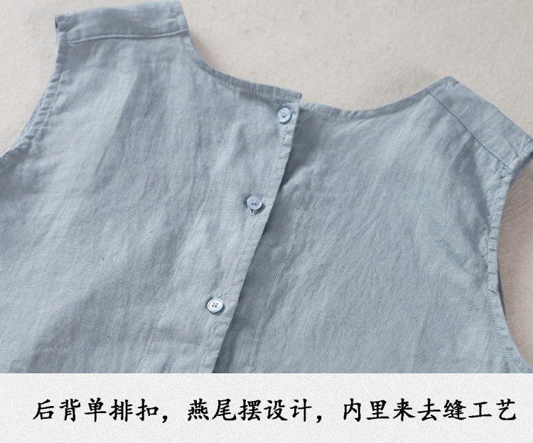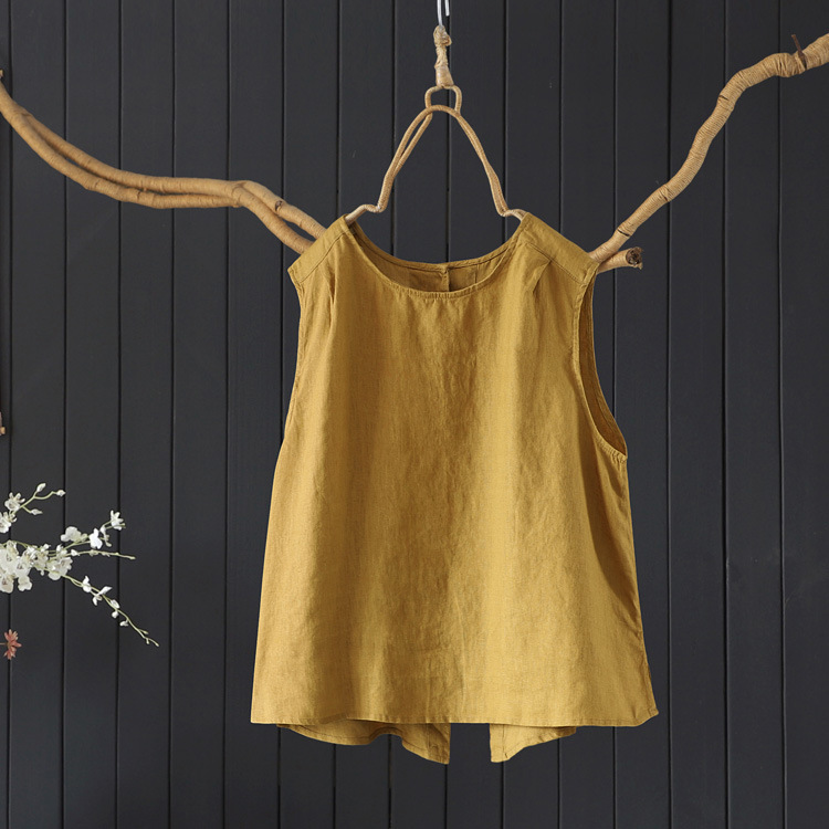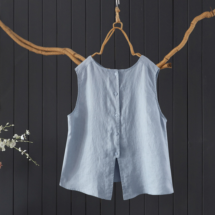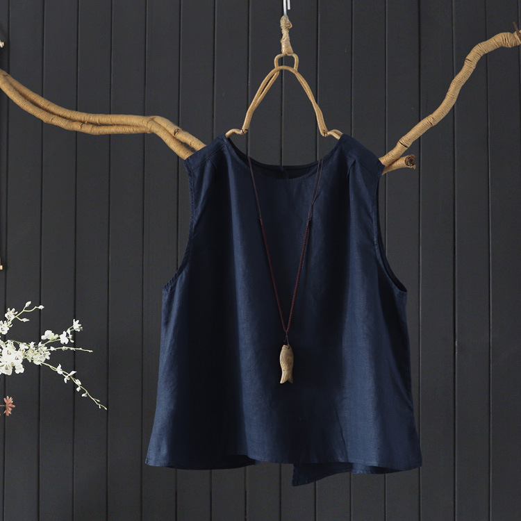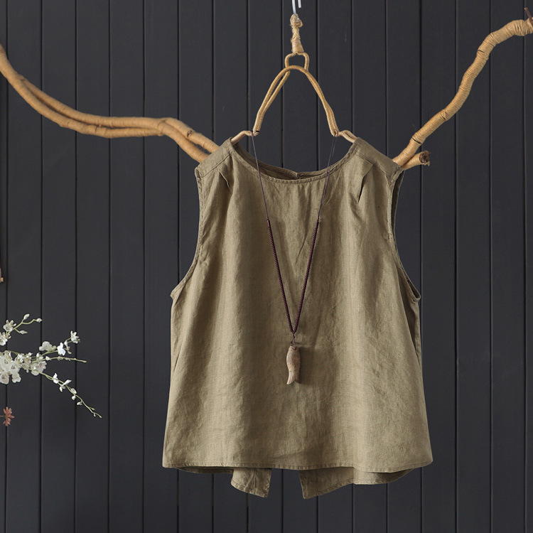 예술적 올매치 도브테일 라운드 넥 풀오버 조끼 여자 여름 쿨 100% 리넨 솔리드 컬러베이스 셔츠
