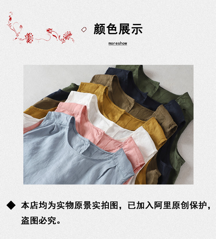 예술적 올매치 도브테일 라운드 넥 풀오버 조끼 여자 여름 쿨 100% 리넨 솔리드 컬러베이스 셔츠스토어 가기