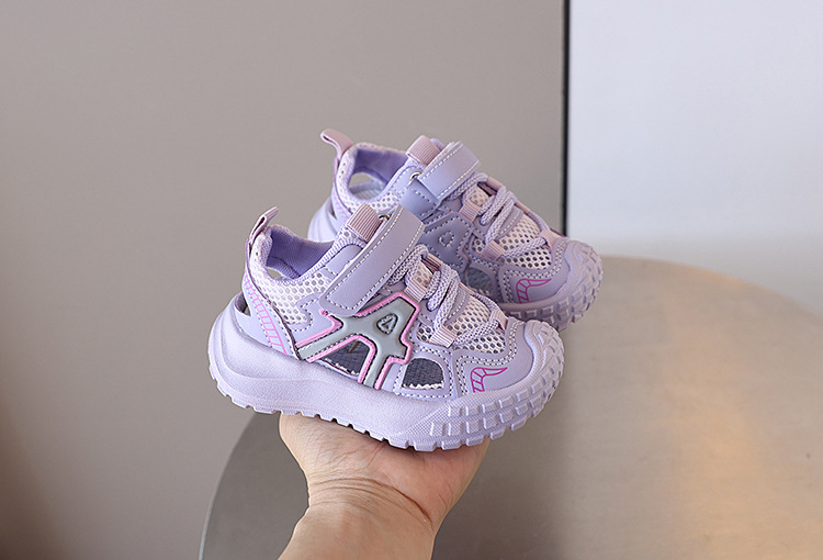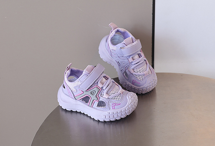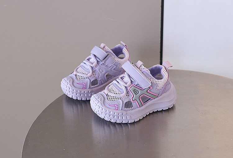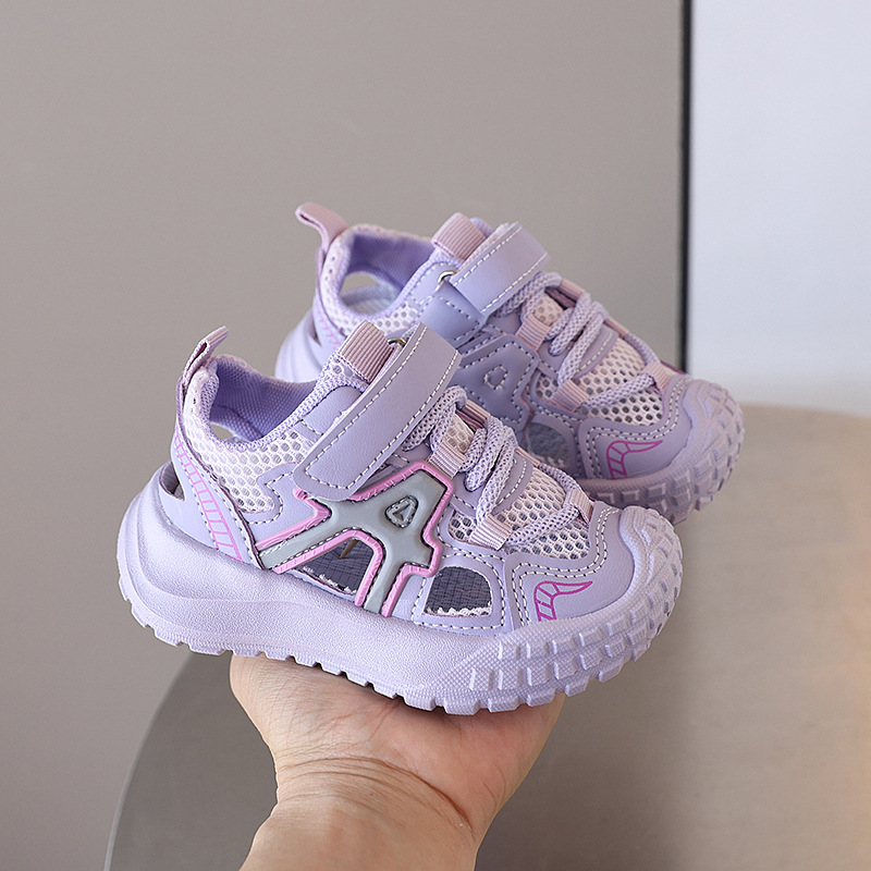여자 스포츠 샌들 2025 여름 새 소년 바오터우 비치 슈즈 어린이 메쉬 할로우 베이비 프레임 슈즈