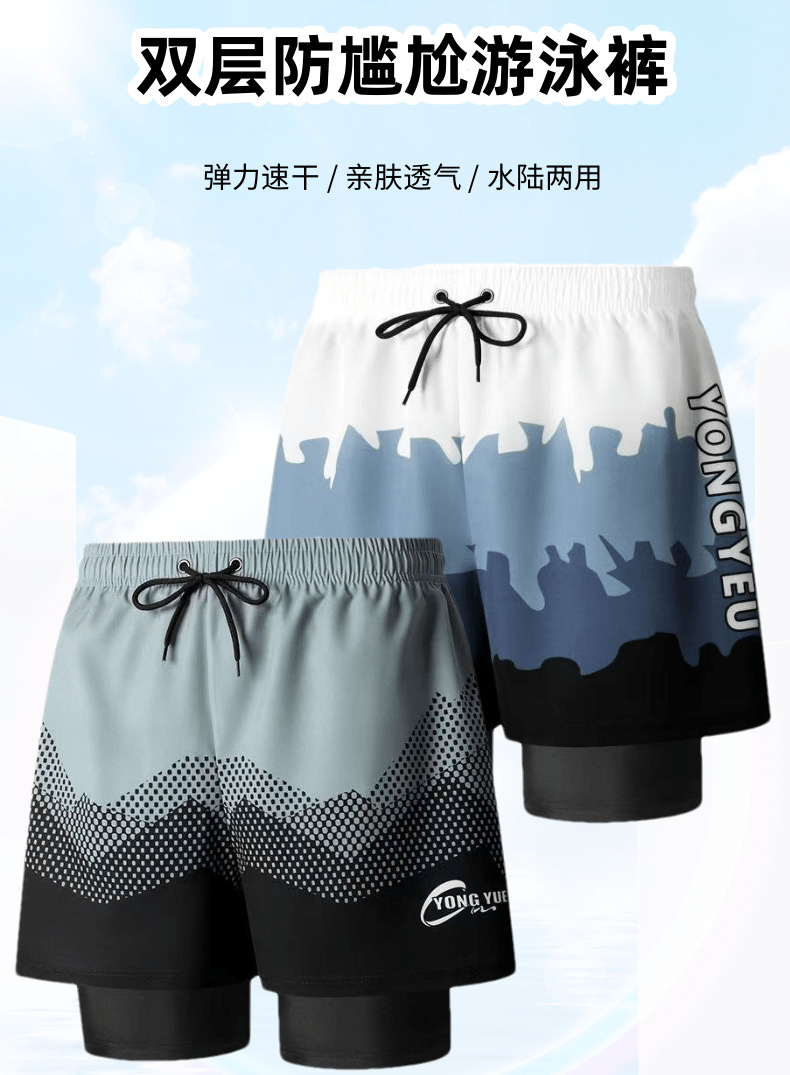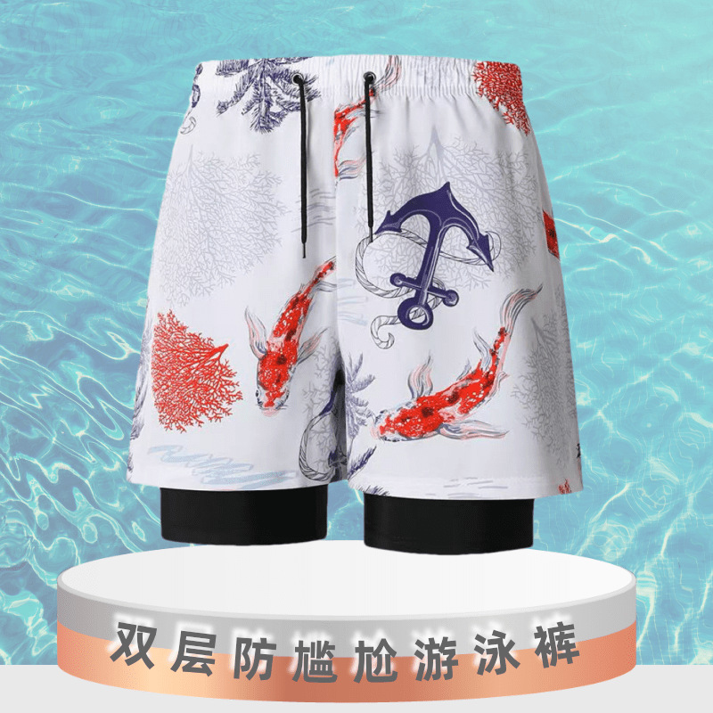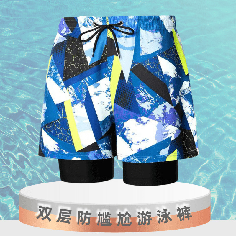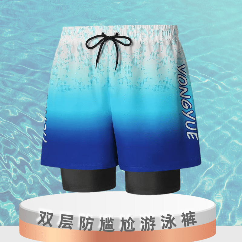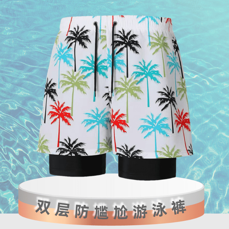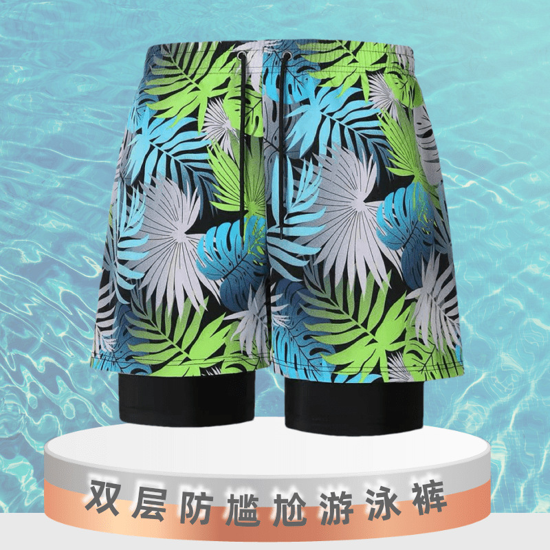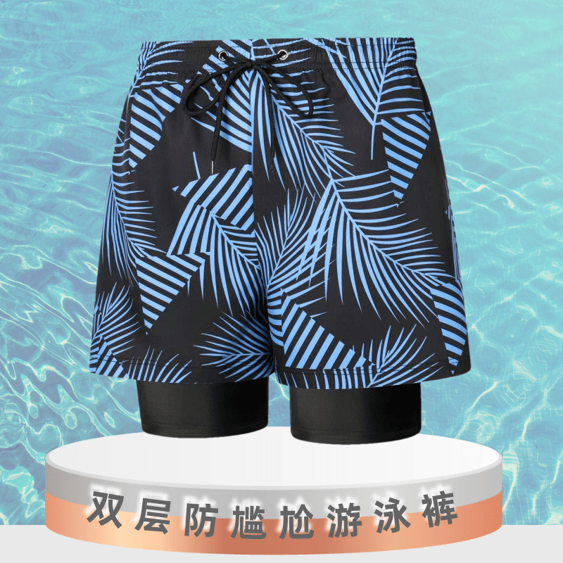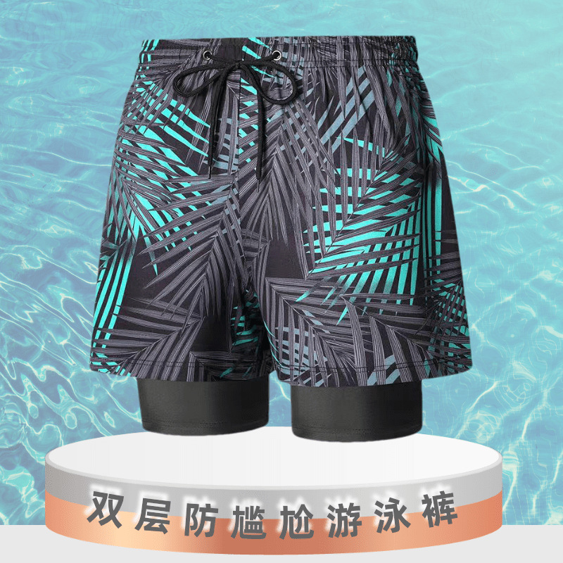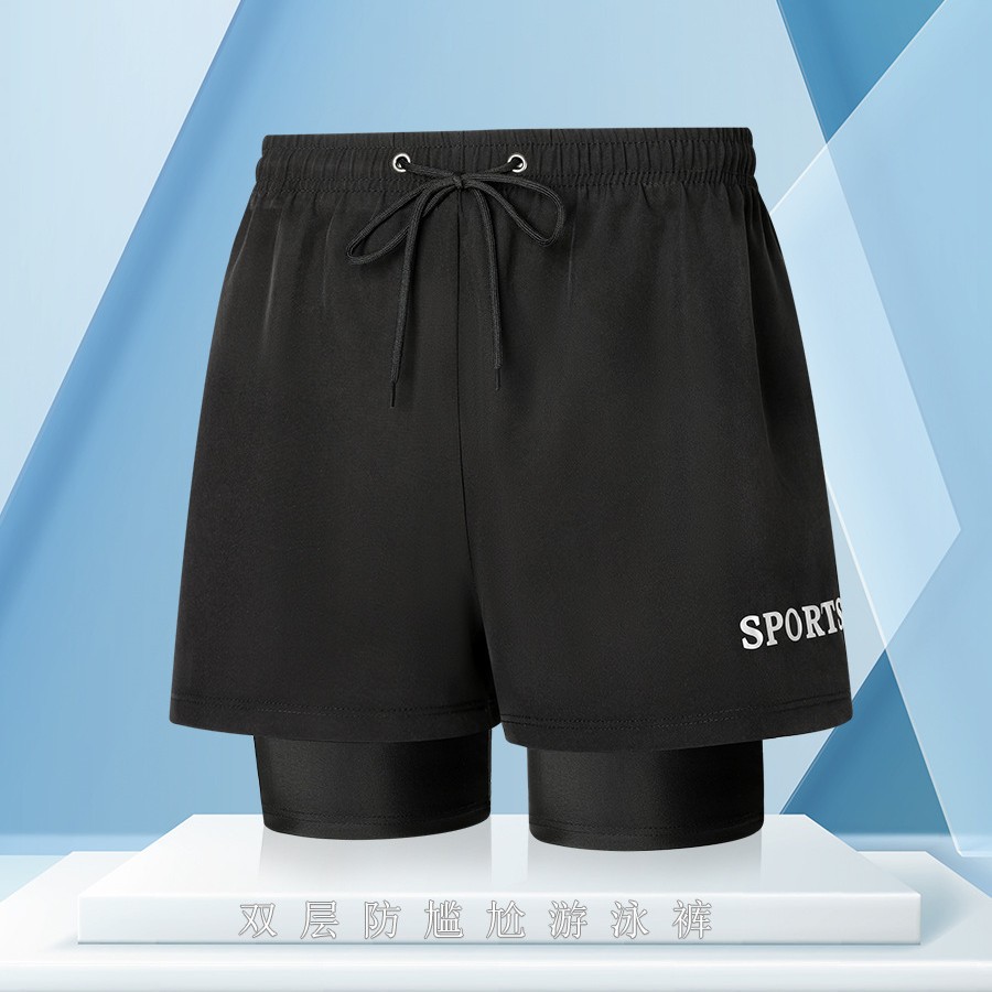 새로운 수영 트렁크 남자 더블 레이어 느슨한 안티 당혹감 수영 트렁크 탄성 빠른 건조 피부 친화적 인 통기성 플러스 사이즈 수영 비치 바지스토어 가기