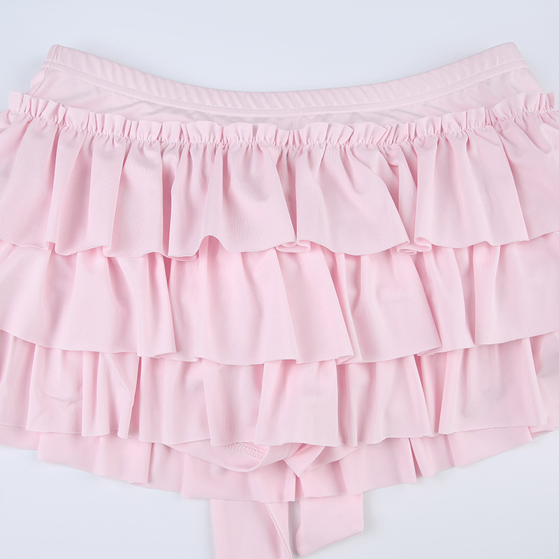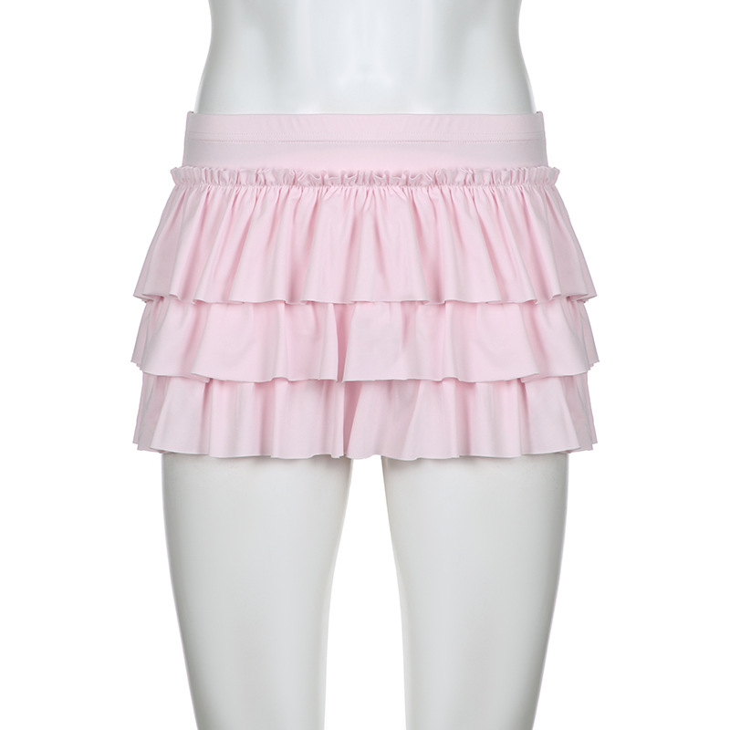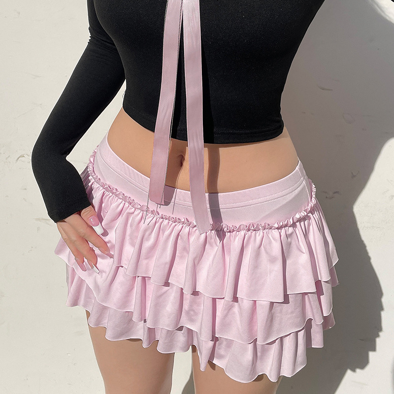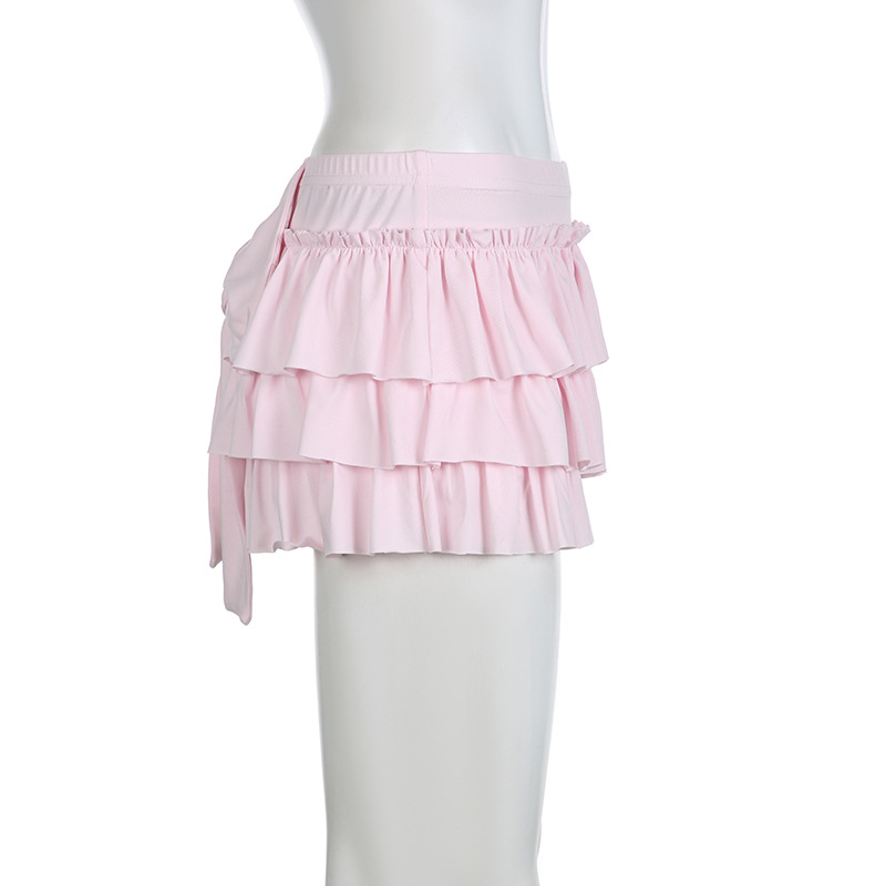 아메리칸 스윗하트 걸리 백 보우 스플라이스 솔리드 컬러 미니 케이크 스커트 2024 봄 여름 신상 로우 웨이스트 스커트 트렌드