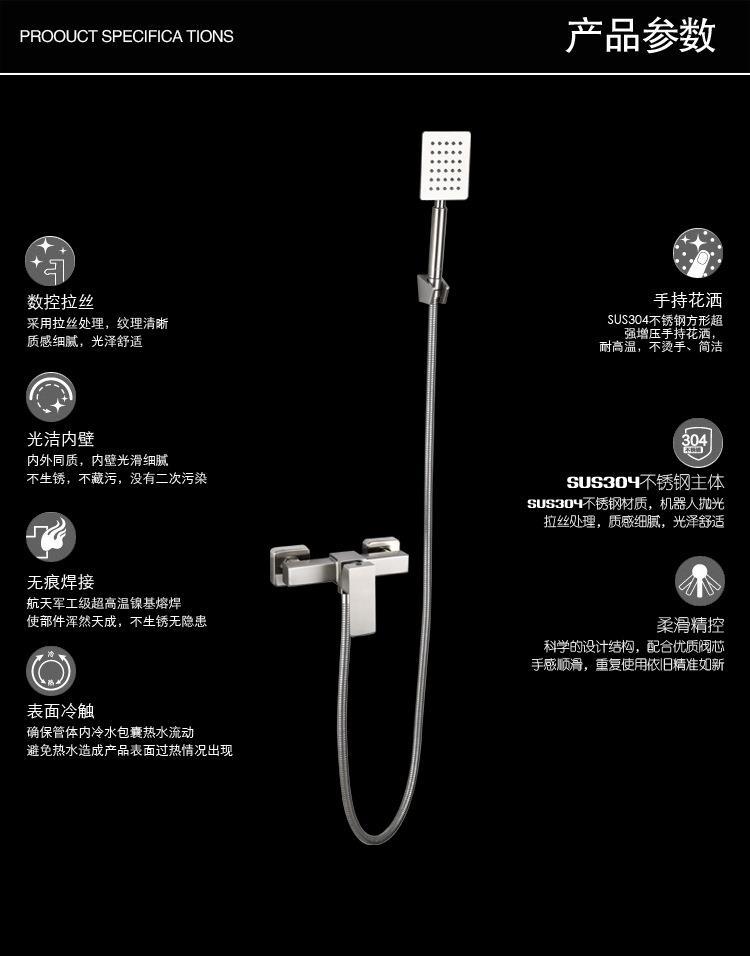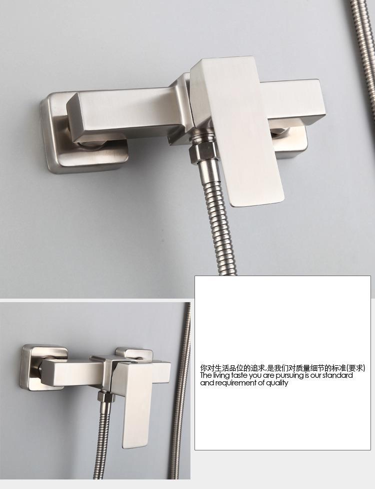 304 스테인레스 스틸 사각 샤워 수전 샤워 세트 뜨거운 및 차가운 브러시 워터 믹서 밸브 밝고 어두운 욕실 샤워 밸브