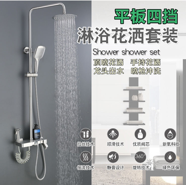 304 스테인레스 스틸 두꺼운 가압 샤워 세트 스프레이 건 피아노 대형 샤워 욕실 레인 샤워 수도꼭지가있는 4 단