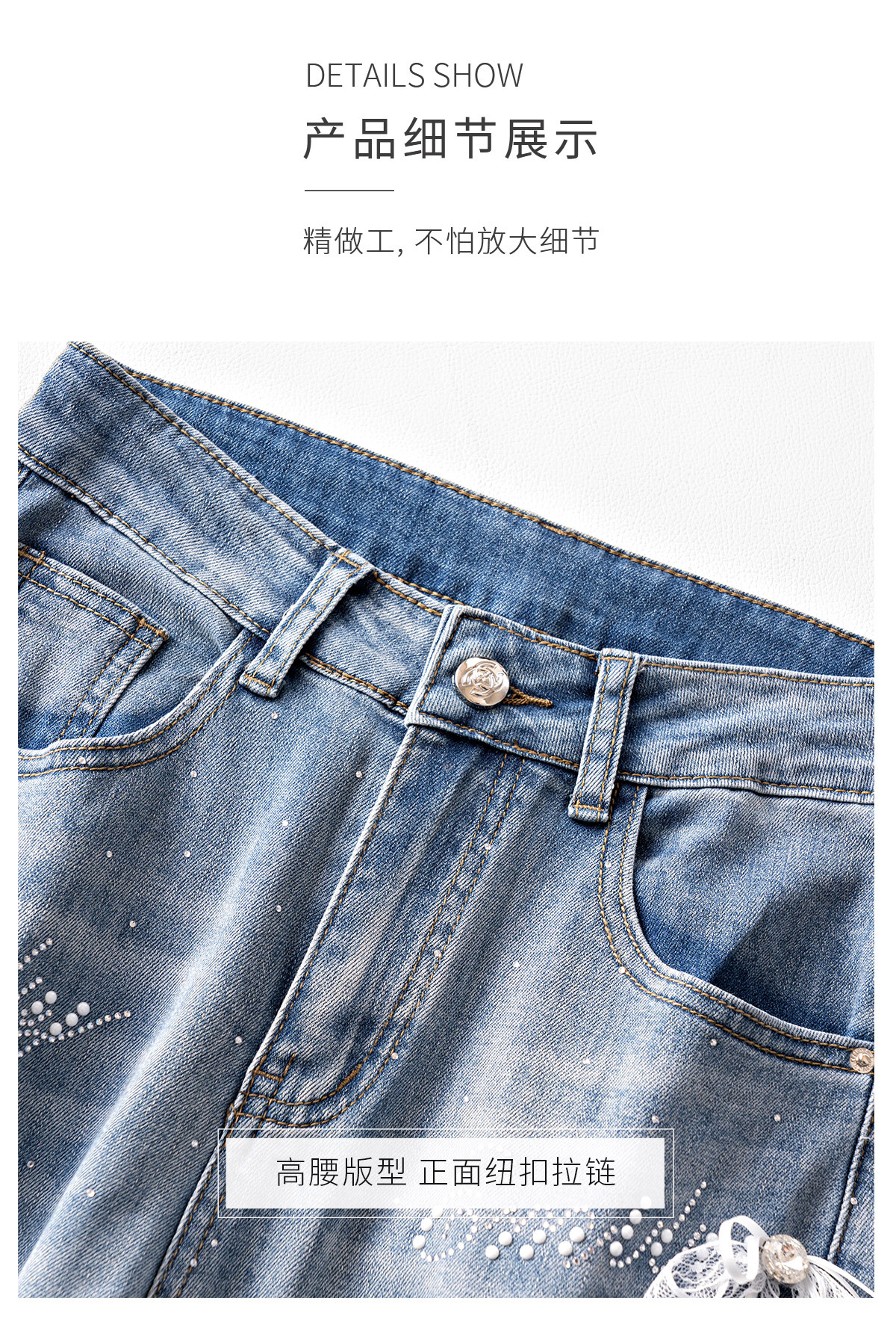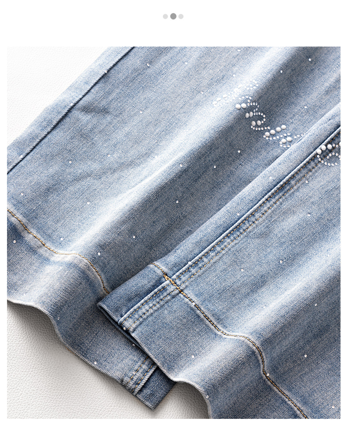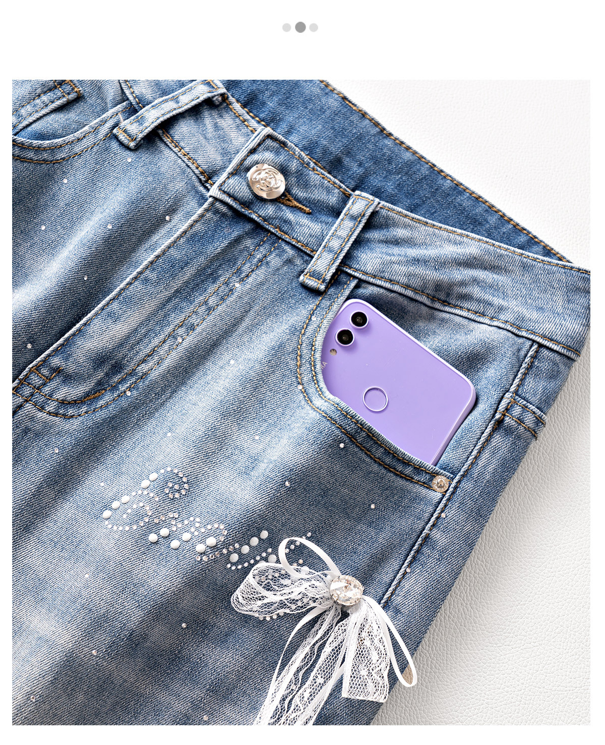 슈퍼 잘 생긴 넓은 다리 청바지 여성의 2025 새로운 여름 활 장식 디자인 센스 핫 드릴링 스트레이트 바지스토어 가기