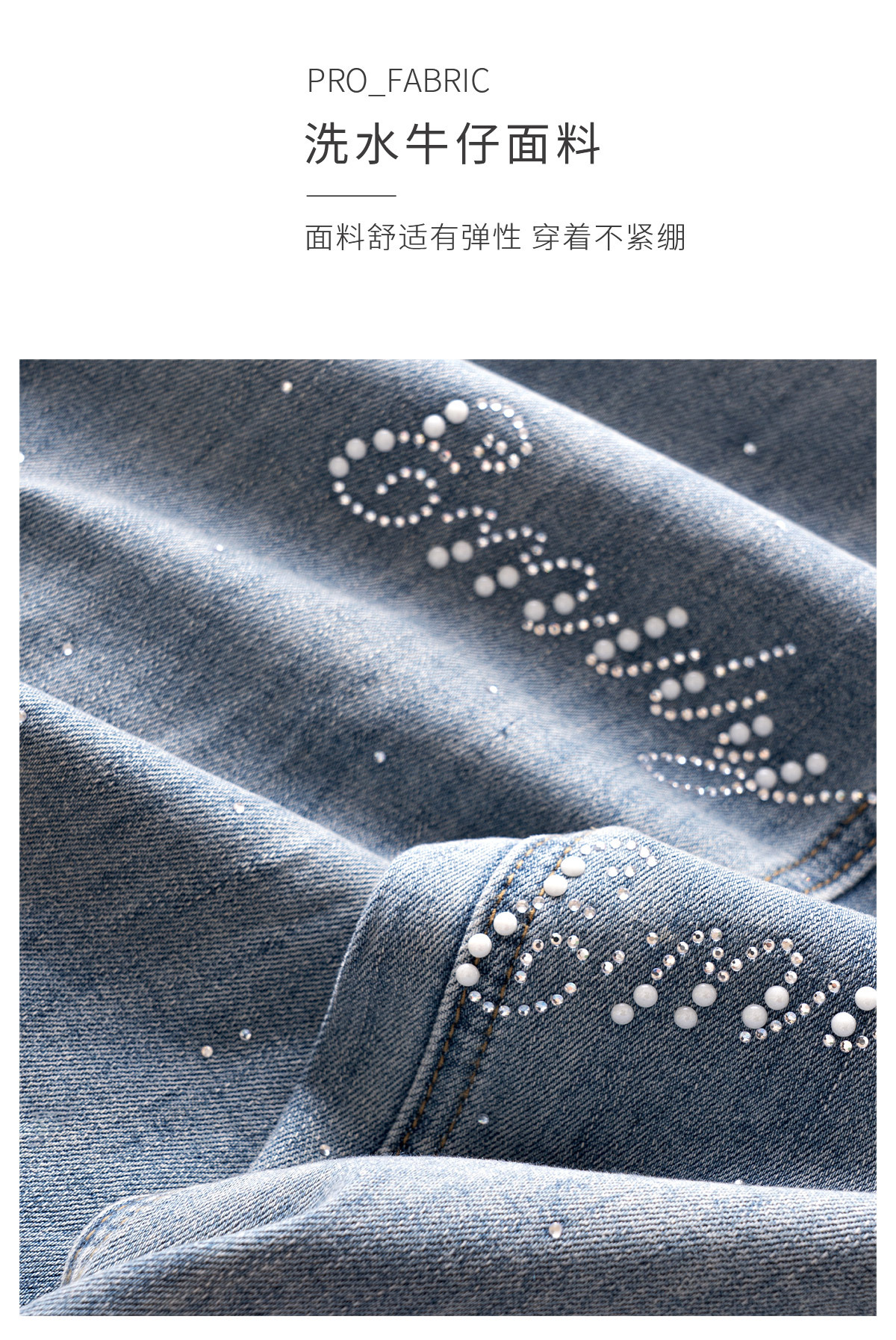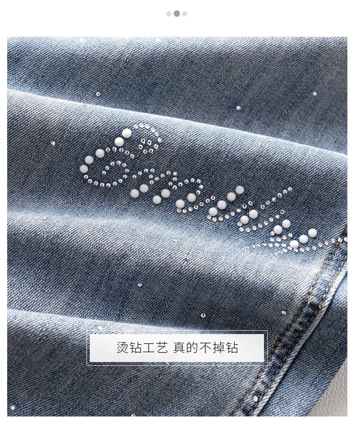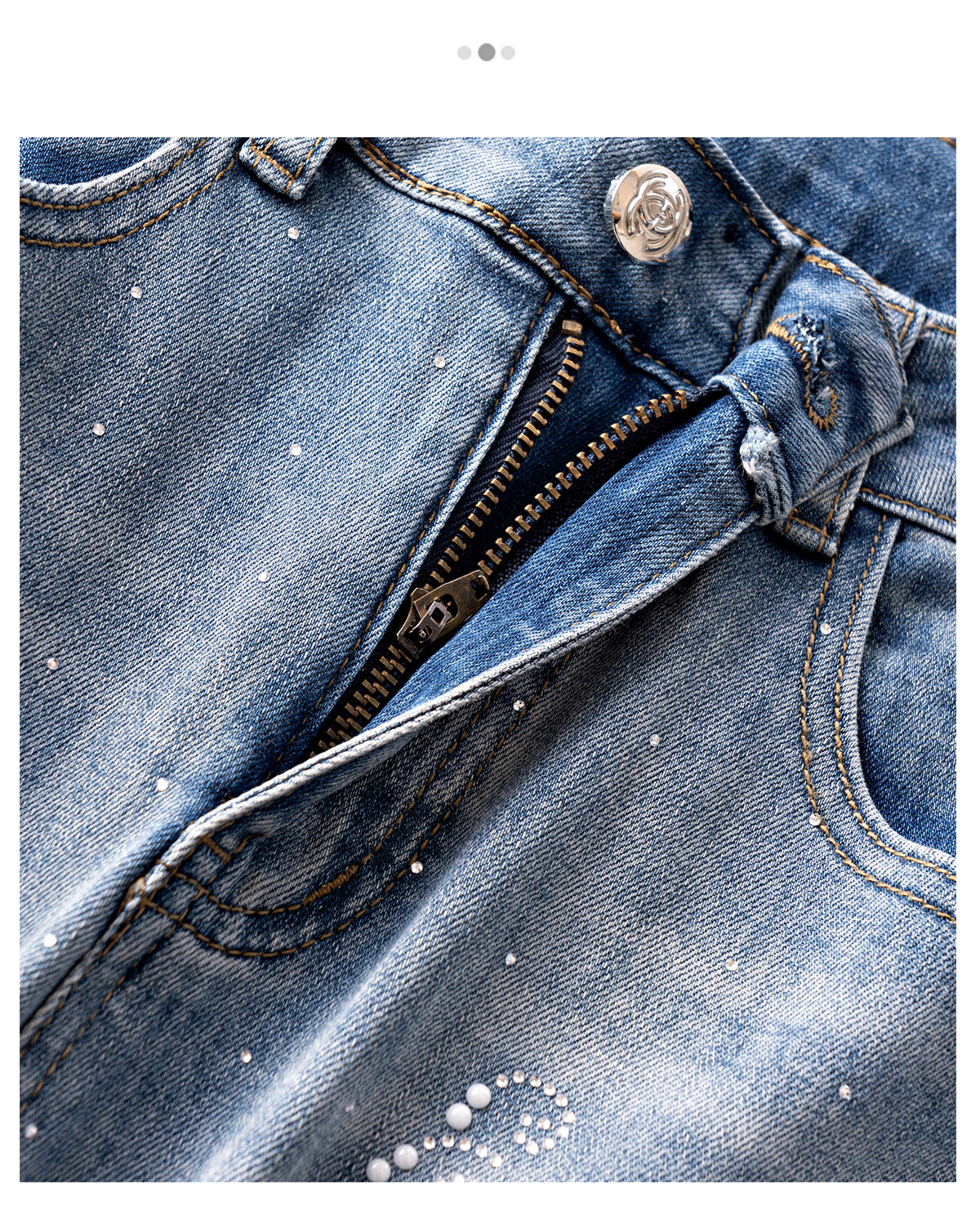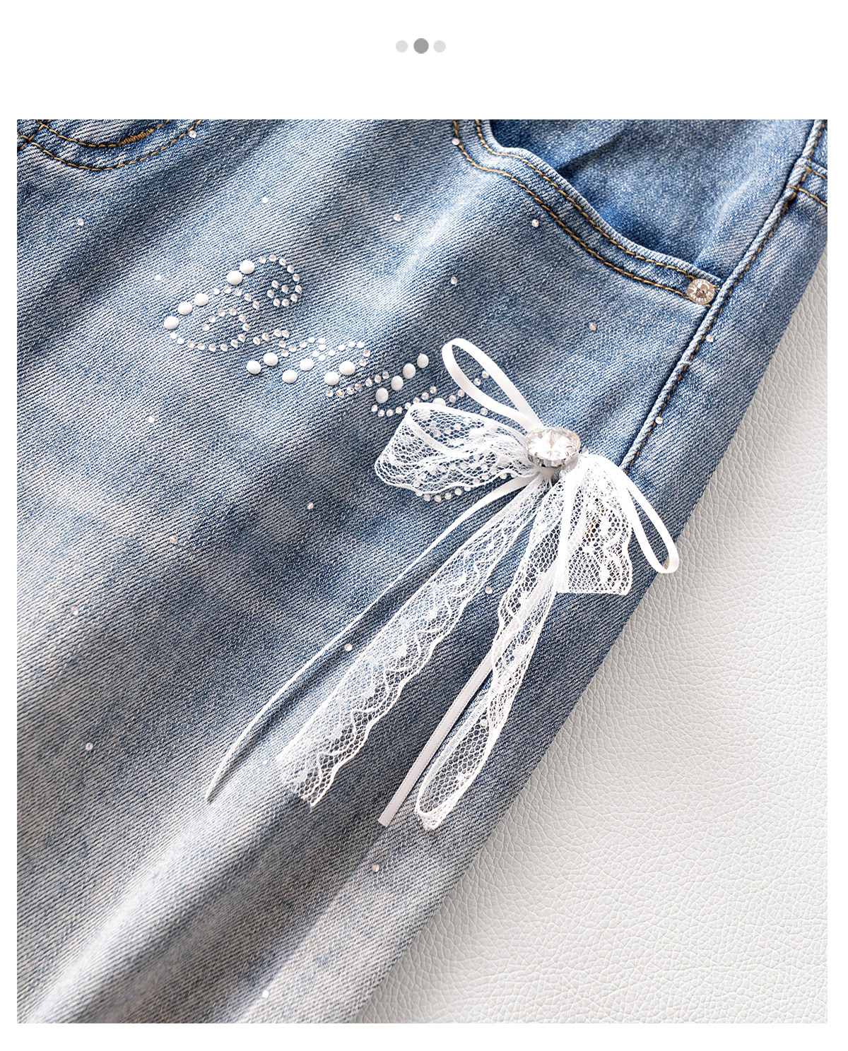 슈퍼 잘 생긴 넓은 다리 청바지 여성의 2025 새로운 여름 활 장식 디자인 센스 핫 드릴링 스트레이트 바지스토어 가기
