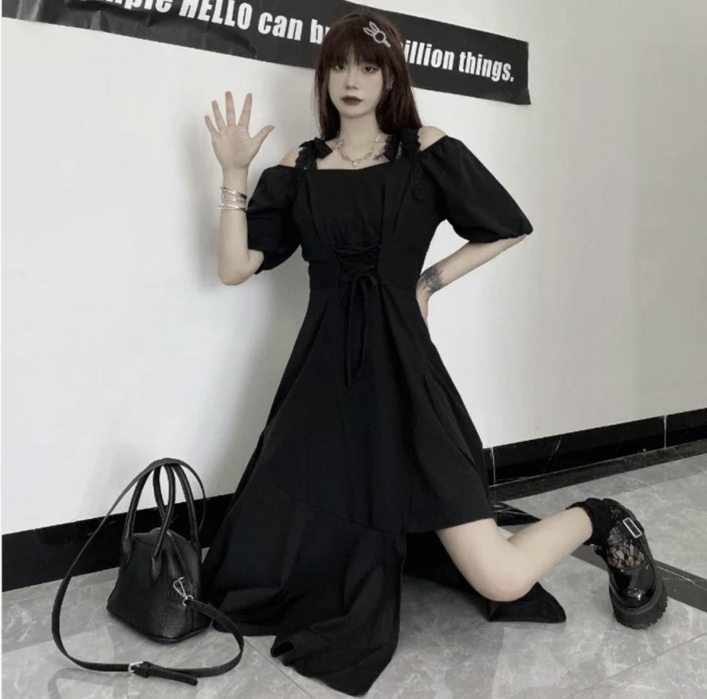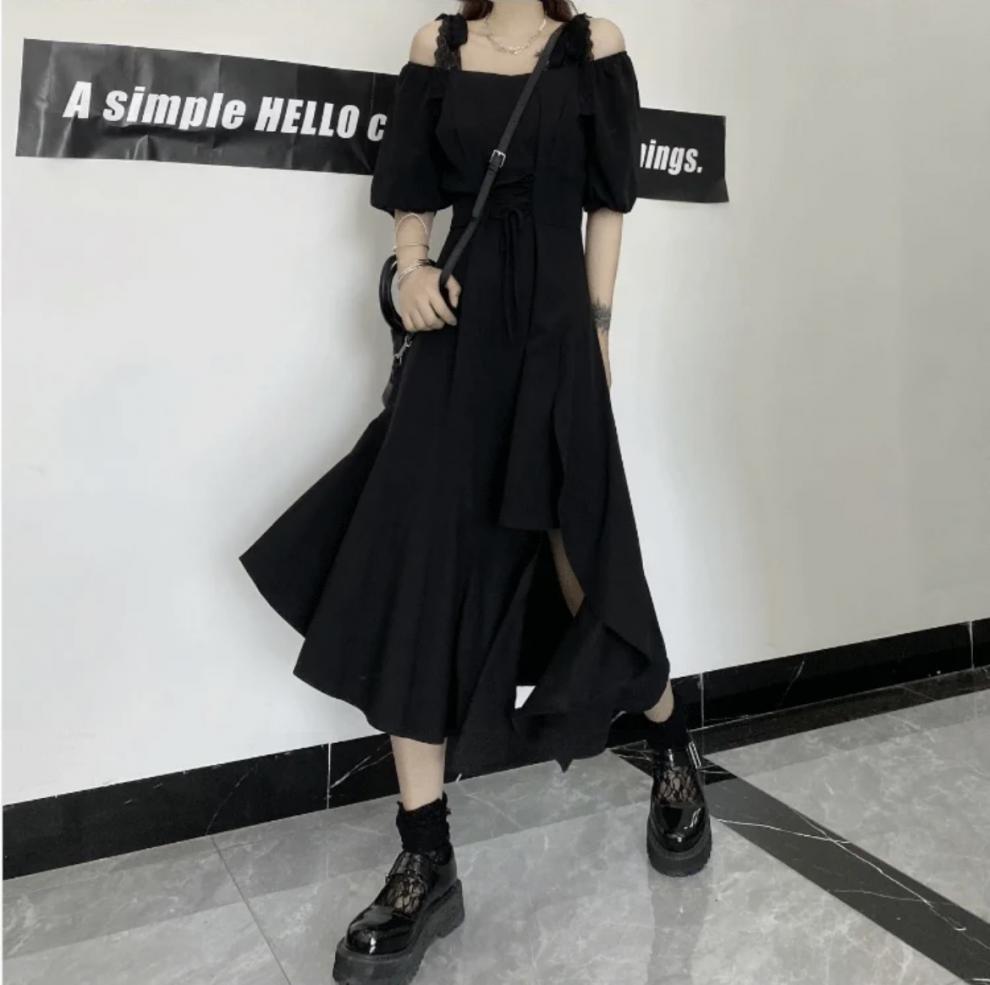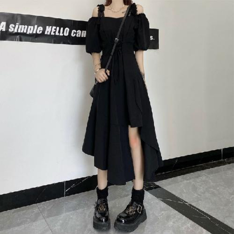 블랙 헵번 스타일 긴 원피스 여성 여름 새 스타일 벨리 커버하는 불규칙한 오버 무릎 슬리밍 슬링 원피스스토어 가기
