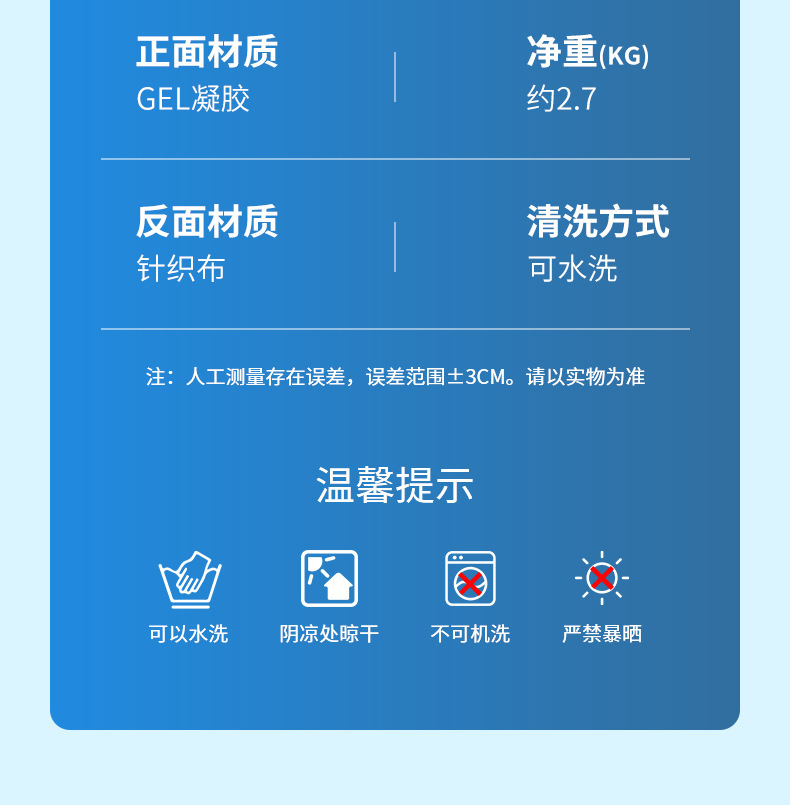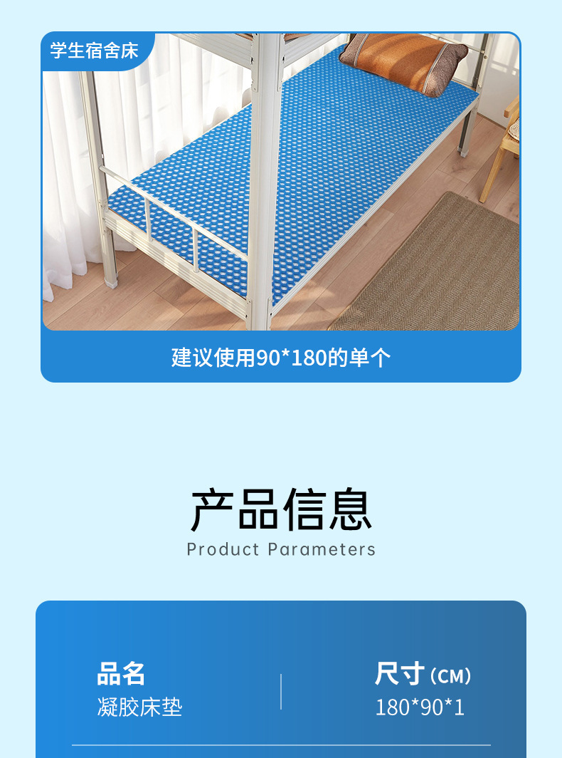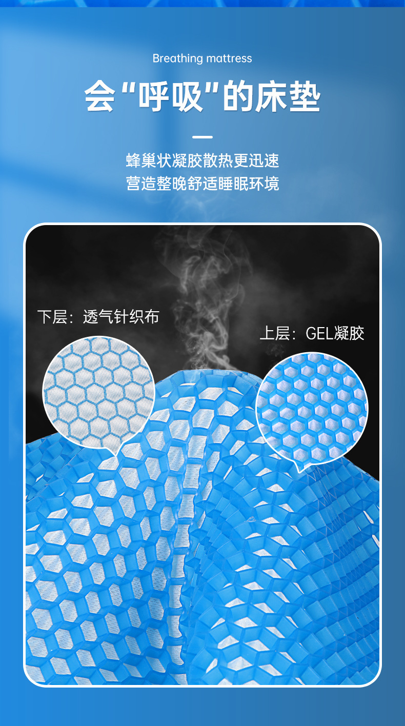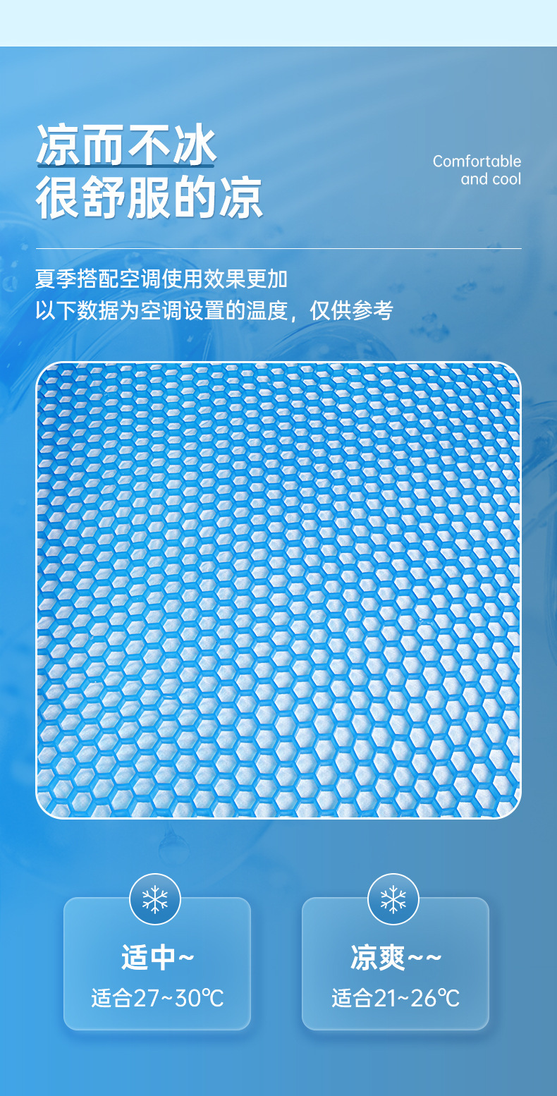这款凉垫双面可用,不敢吹空调和不能睡凉席的,怕冷怕凉的朋友们闭眼买我们这边蜂窝凝胶床垫,凉而不冰,柔软有弹性,清凉度夏。
