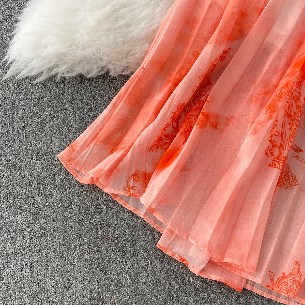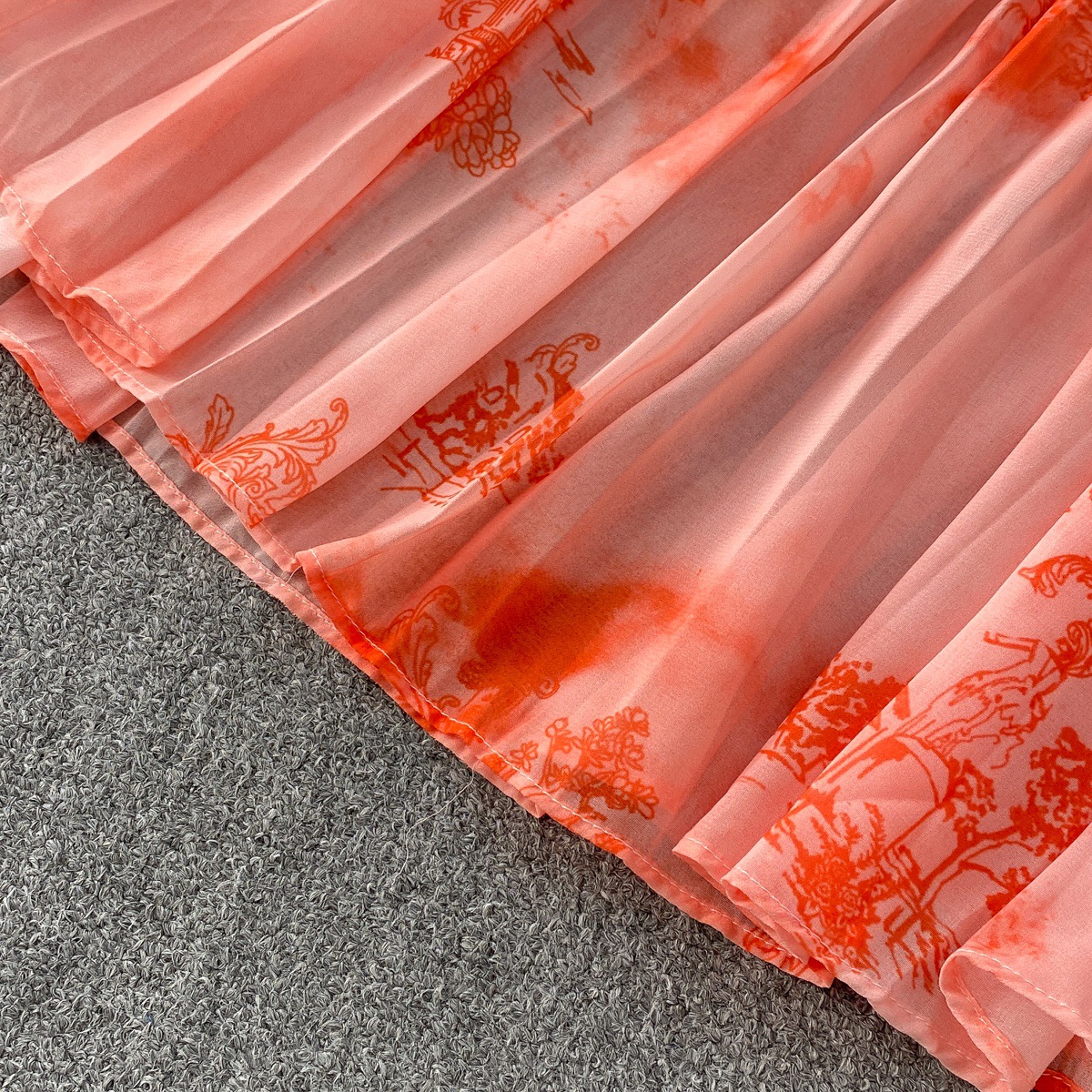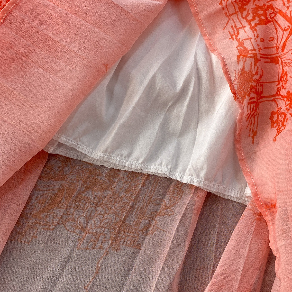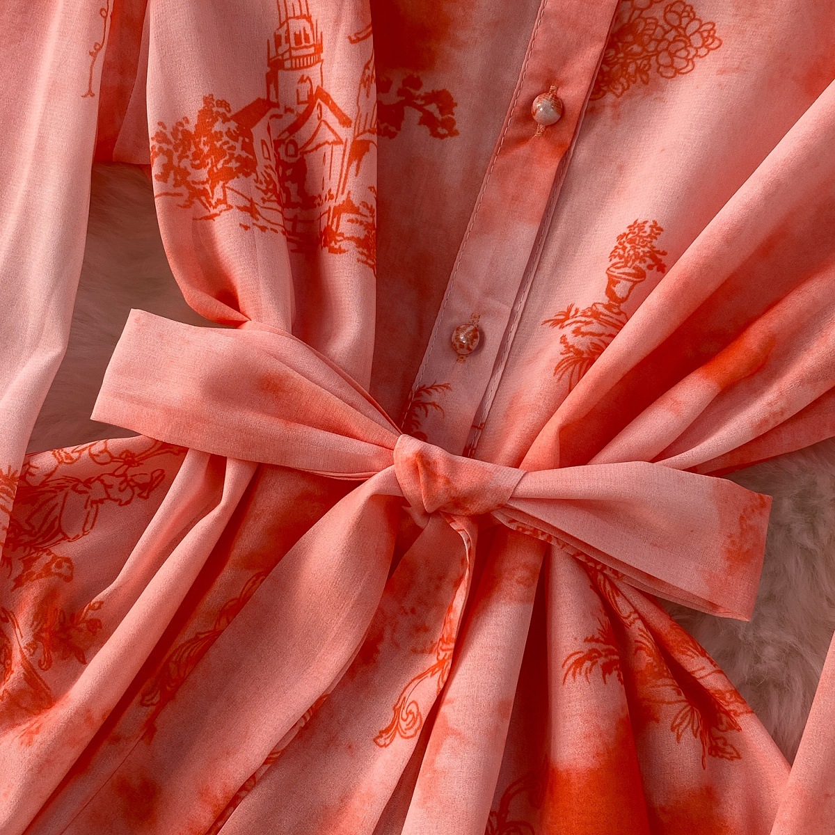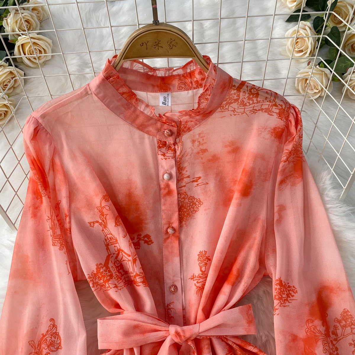 새로운 중국 스타일 인쇄 우아한 랜턴 소매 셔츠 여성의 여름 꽉 허리 슬리밍 탑 스커트 투피스 세트