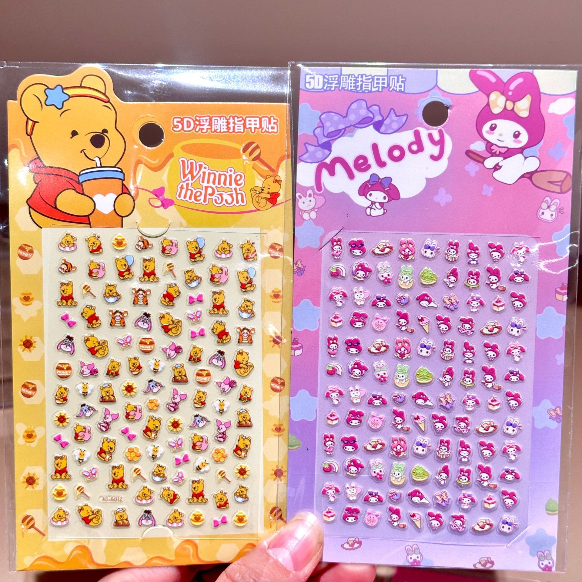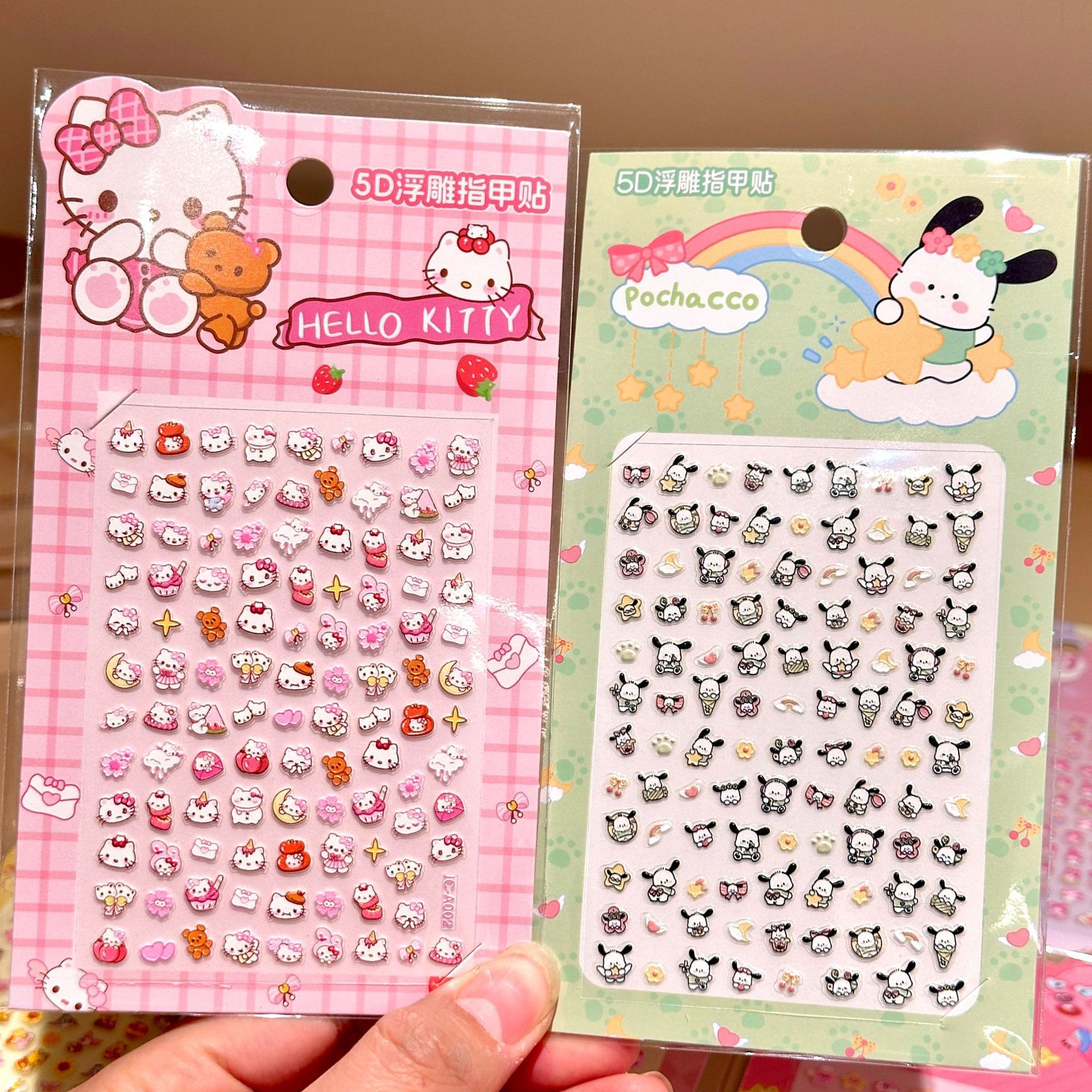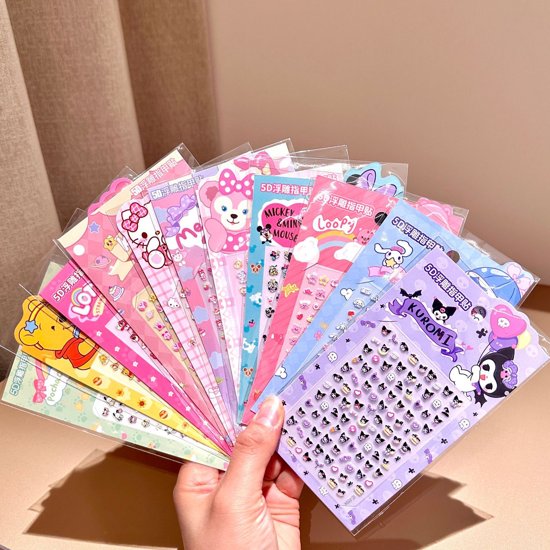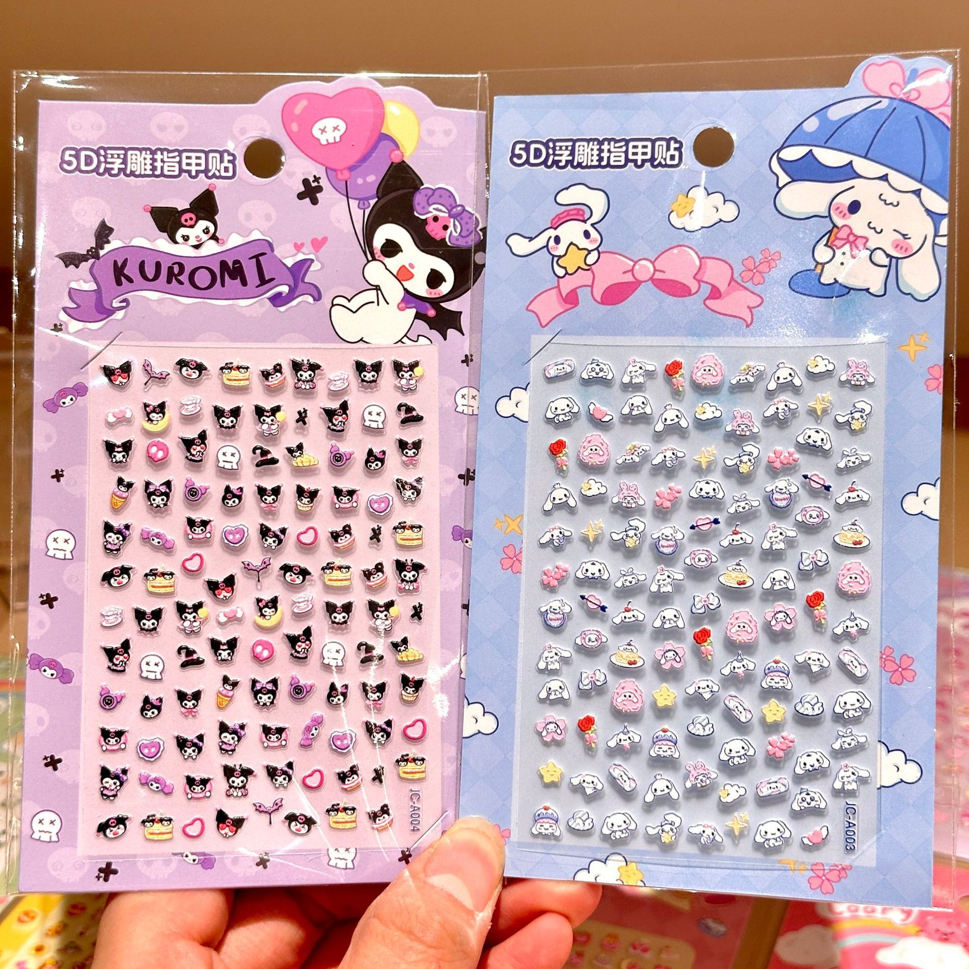 5D 양각 네일 스티커 어린이 Sanrio Kulomi 방수 네일 패치 Yugui 개 헬로 키티 네일 스티커스토어 가기
