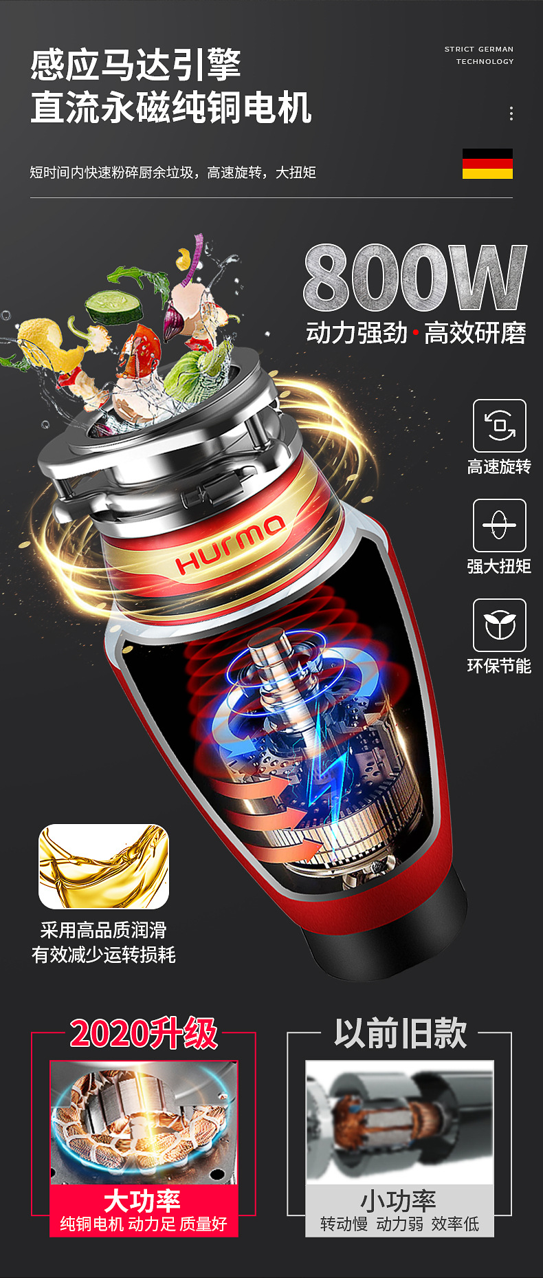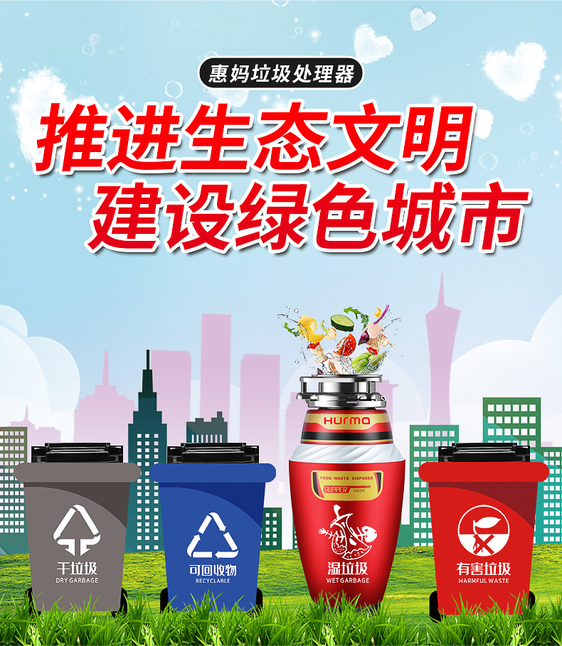 9 단계 연삭 주방 폐기물 프로세서 가정용 젖은 쓰레기 주방 음식 찌꺼기 그라인더 무선 스위치