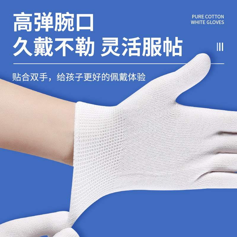 어린이 에티켓 장갑 흰색 순수한 흰색 얇은 성능 깃발 높은 탄성 통기성 보호 소프트 코튼 장갑